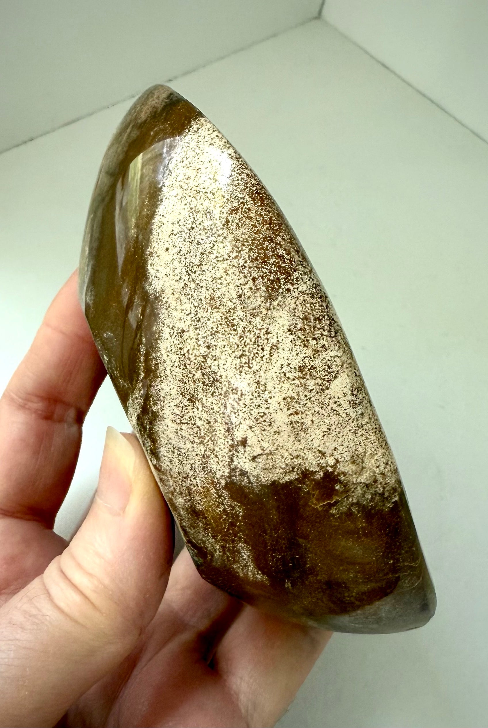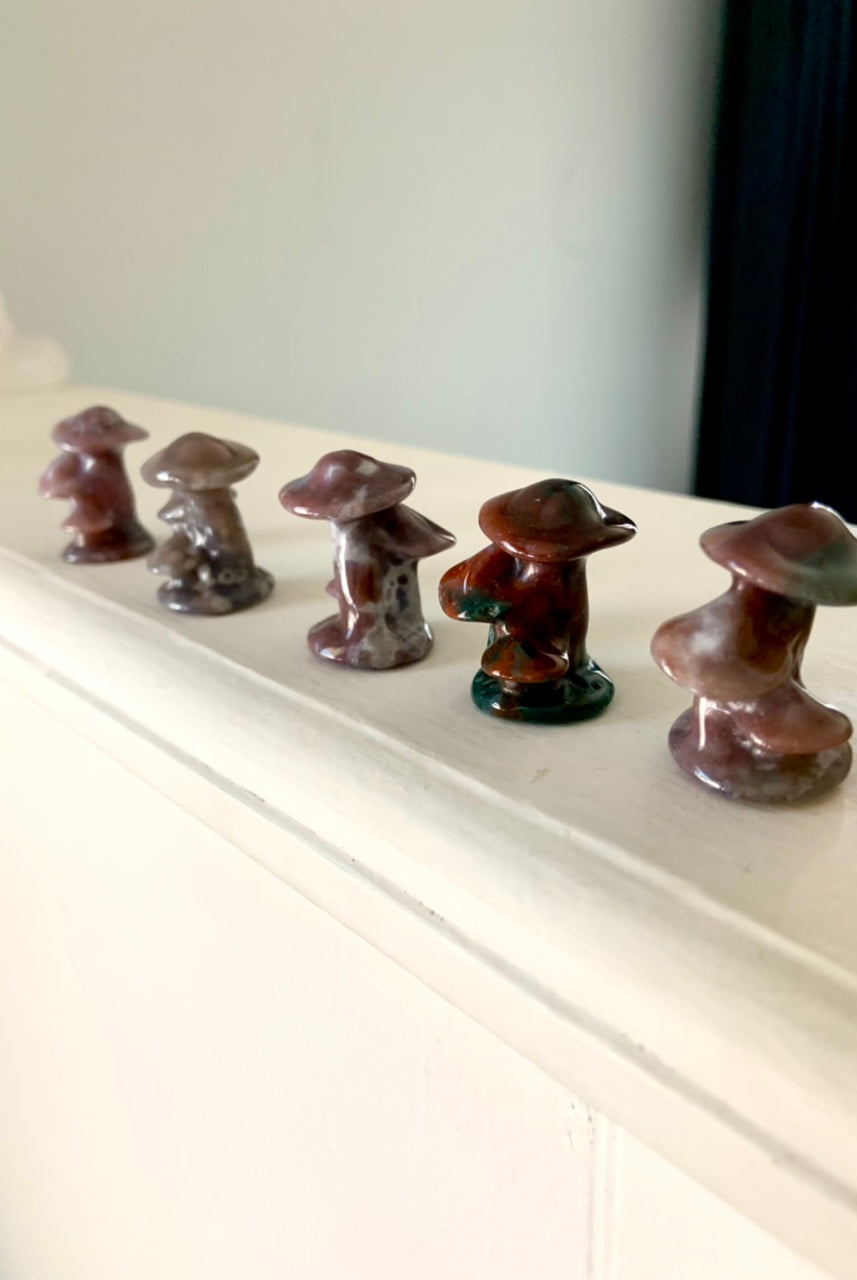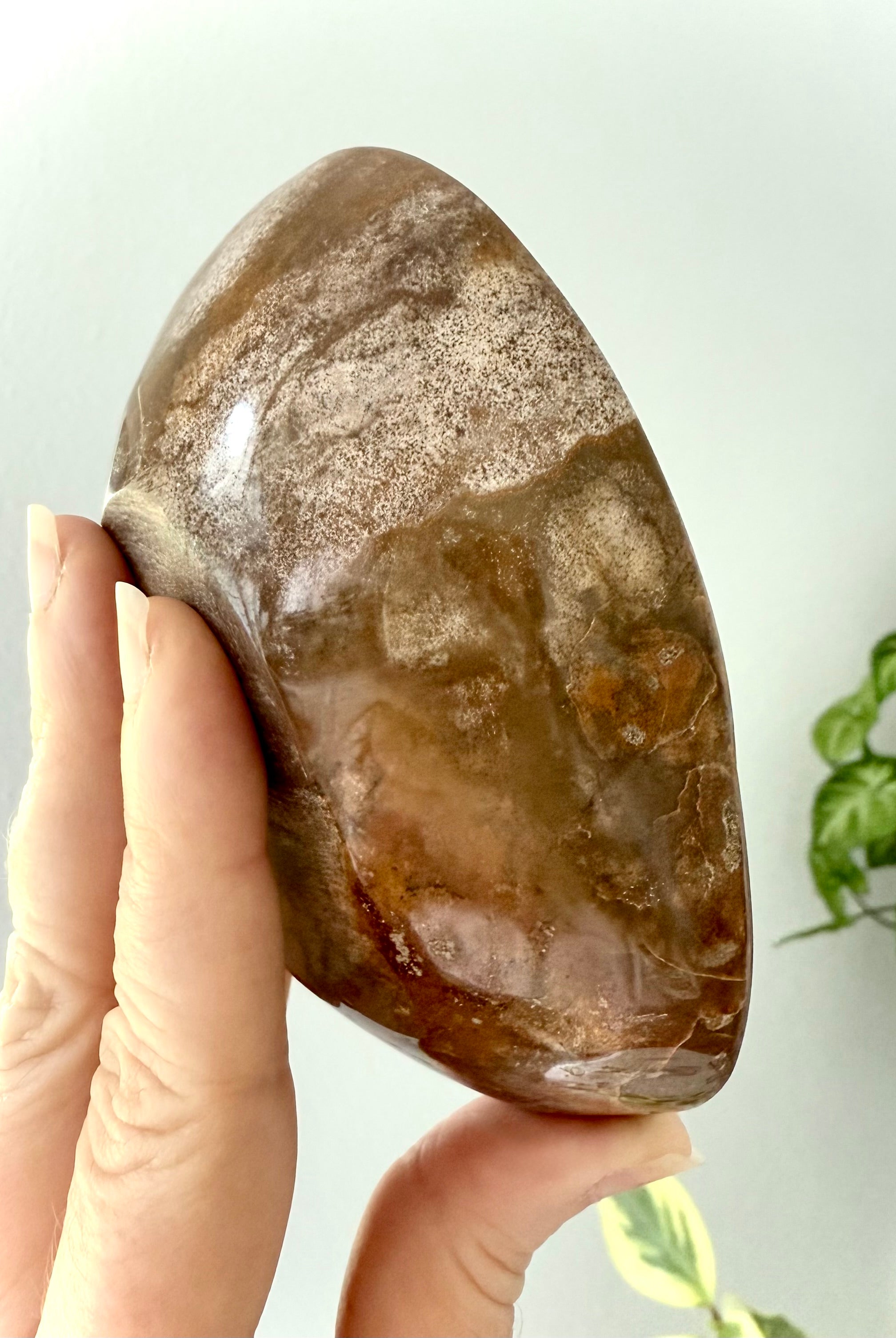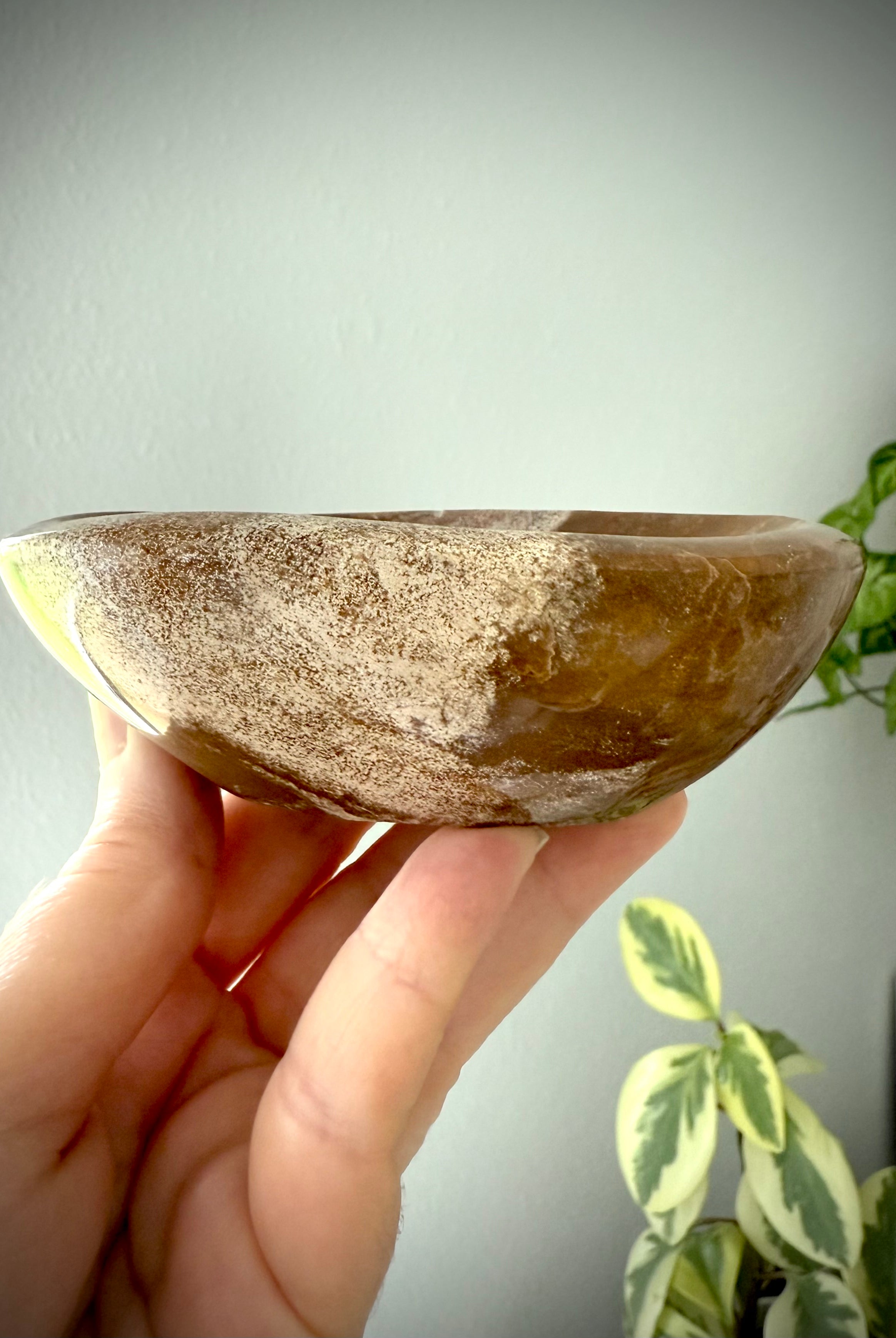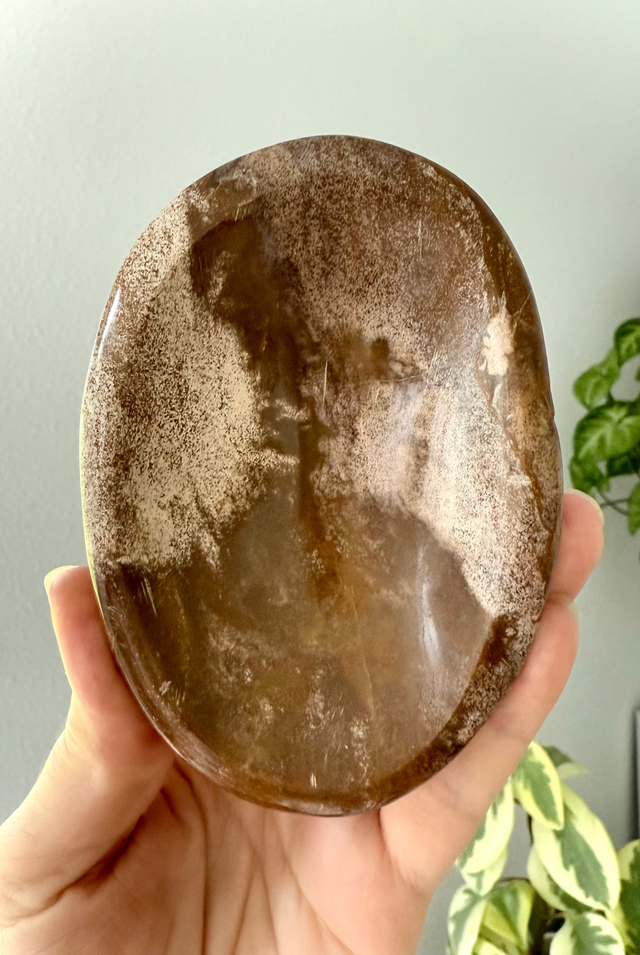 This collection features one-of-a-kind bowls, statement freeforms, hearts, moons, stars, palm stones, mushroom carvings, and bracelets—alongside a rotating selection of dragons, angels, spheres, towers, and unique carved treasures. Ocean Jasper supports Root and Heart Chakra healing, bringing balance, introspection, and grounded compassion to your journey of healing and remembrance.