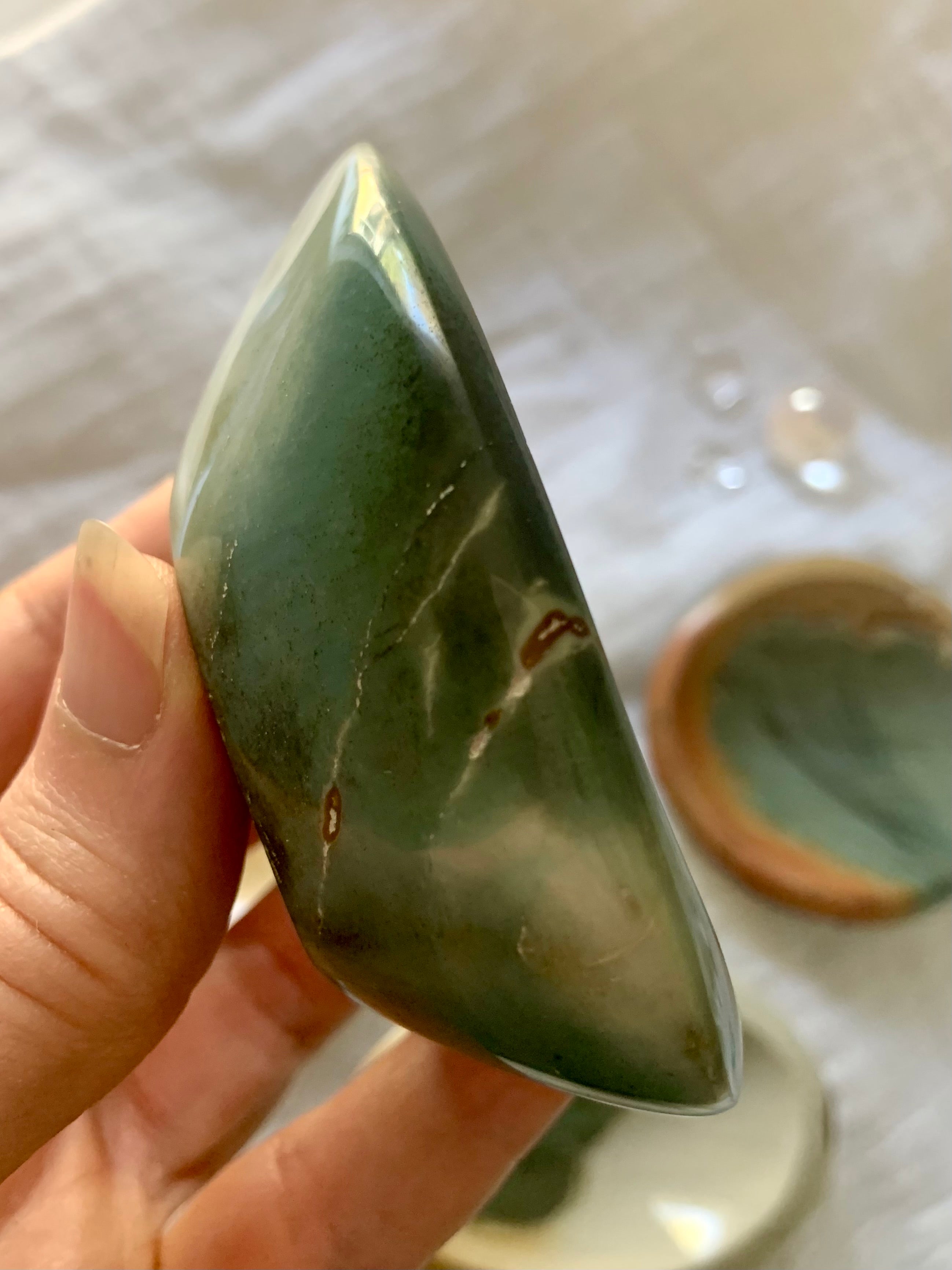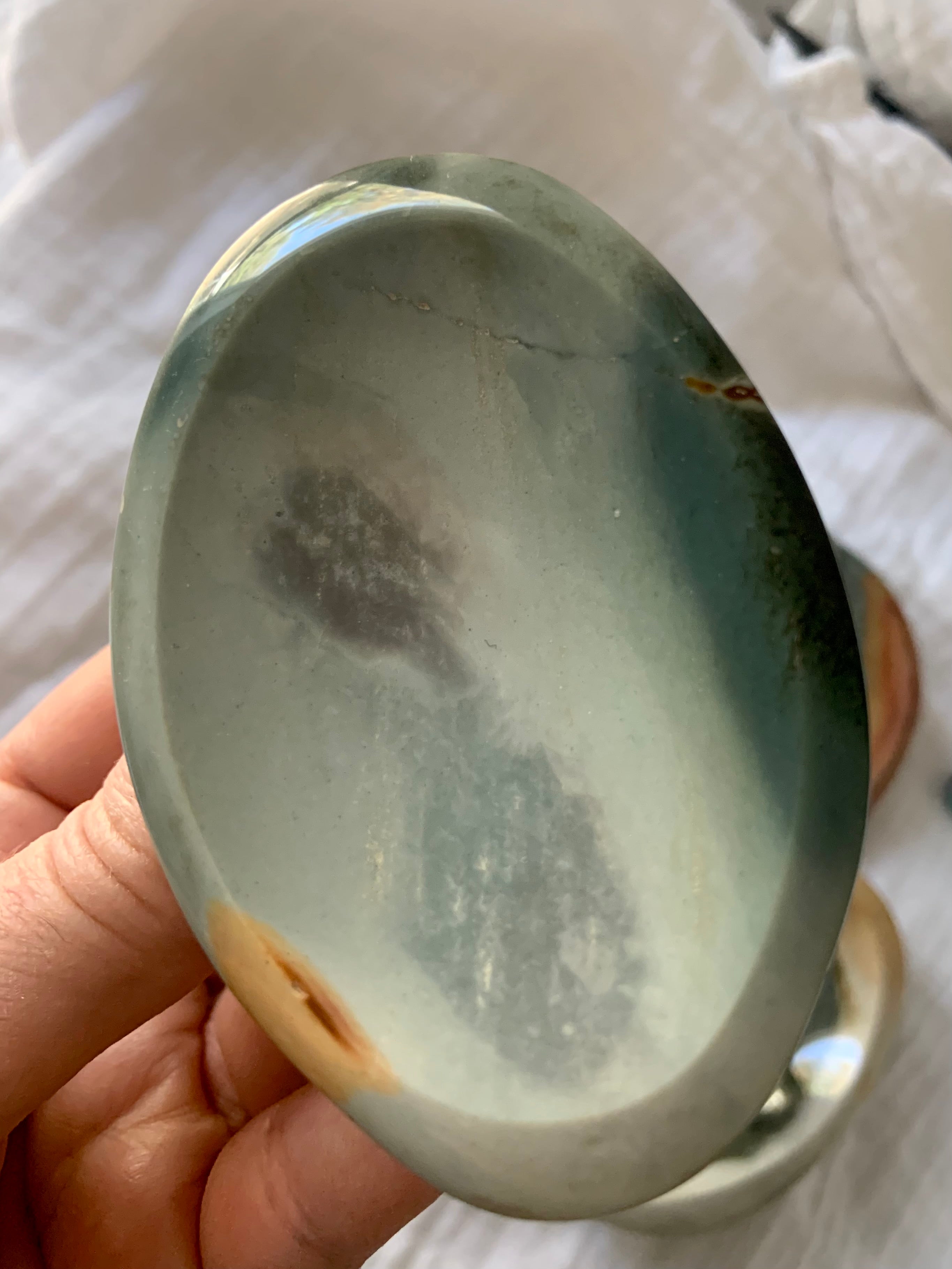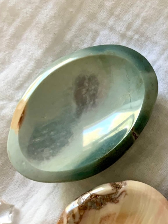 A beautiful Tiffany Blue Polychrome Jasper Bowl is a work of art that will make a beautiful addition to your crystal decor. These little one of a kind hand carved natural stone bowls are perfect for holding your special things, jewelry + crystals, or for using in sacred ceremony.