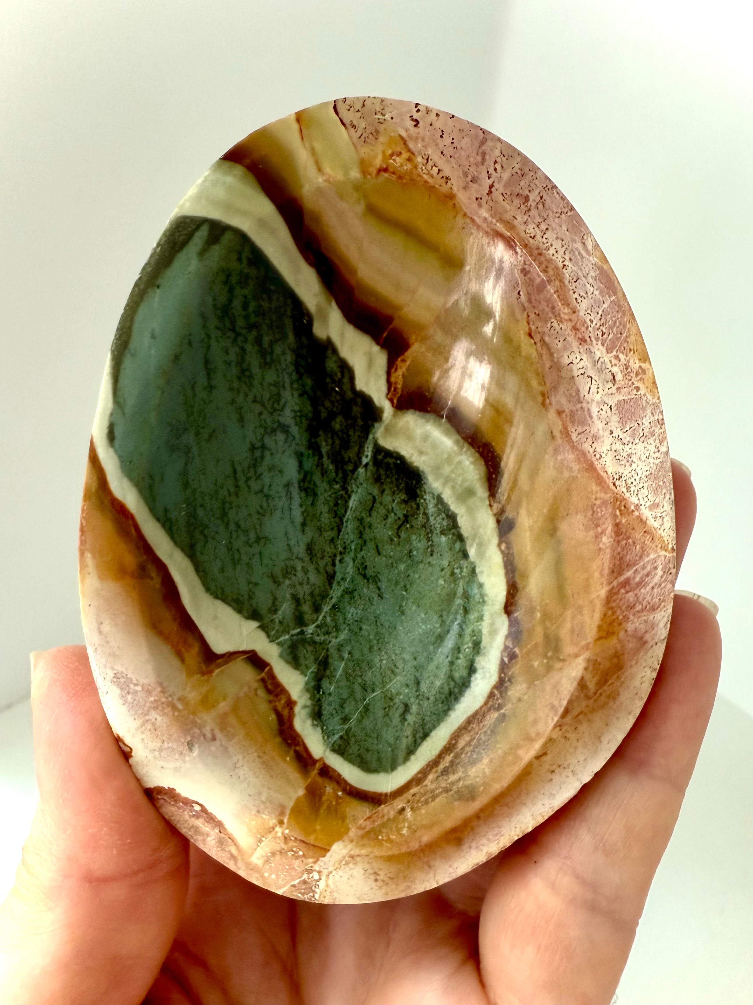 Consider this earthy multicolored Polychrome Jasper Bowl to elevate your sacred space. This one of a kind, hand carved stone bowl is a work of art + a beautiful addition to your crystal collection. A crystal bowl is perfect home decor accessory for holding your special things, jewelry + crystals, or for using in sacred ceremony.