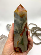 Polychrome Jasper's energy is potent + alive. It embodies passion, exuberance, vibrancy, vitality, action + creativity. Its healing energies can illuminate your path + give you a new outlook on how to manifest your dreams + embody your higher self.