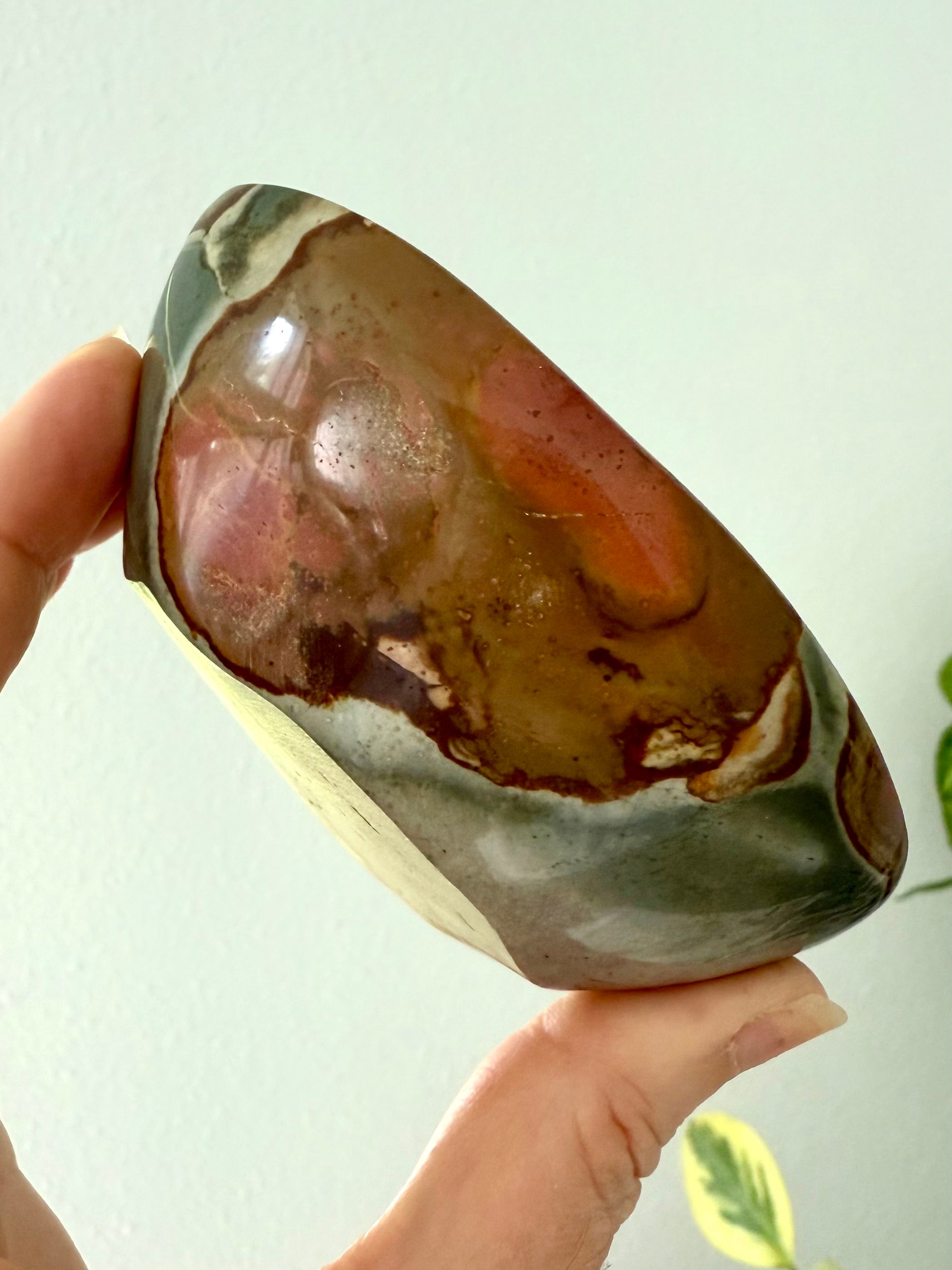 Consider this hand carved oval shaped Polychrome Jasper Bowl for your sacred space. One of a kind stone bowls are a work of art + a beautiful addition to your crystal decor. A crystal bowl is perfect for holding your special things, jewelry + crystals, or for using in sacred ceremony.