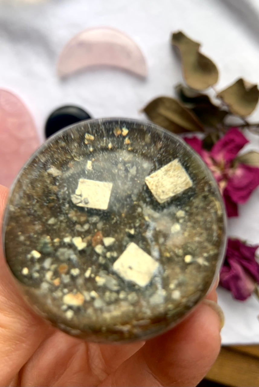 Golden Pyrite is a powerful Solar Plexus and Root Chakra stone that embodies vitality, confidence, and abundance. Resonating with both Earth and Fire energy, Pyrite activates your inner drive while keeping you grounded in your purpose.