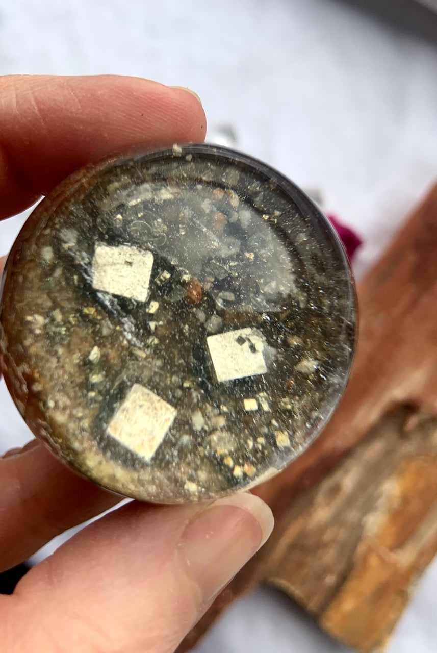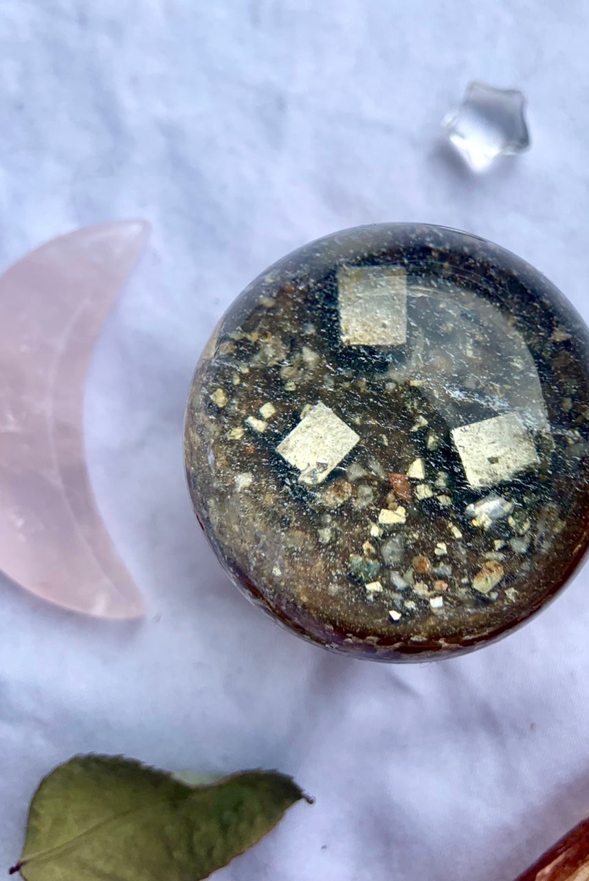 This shimmering, metallic-looking crystal helps align action with intention, supporting masculine energy balance, sharpening focus, and strengthening your will to achieve your goals. Use it to attract prosperity, protect your energy field, and energize your manifestation practices.