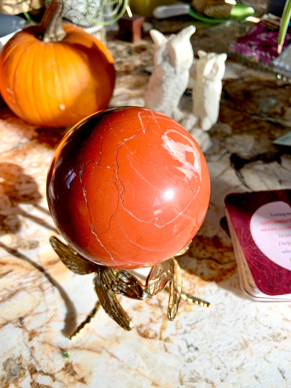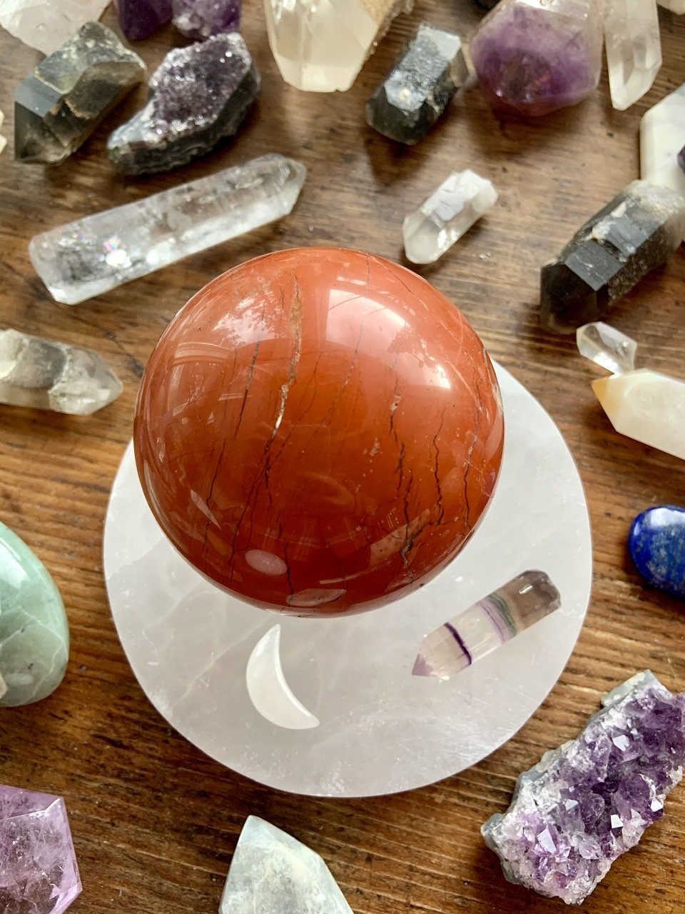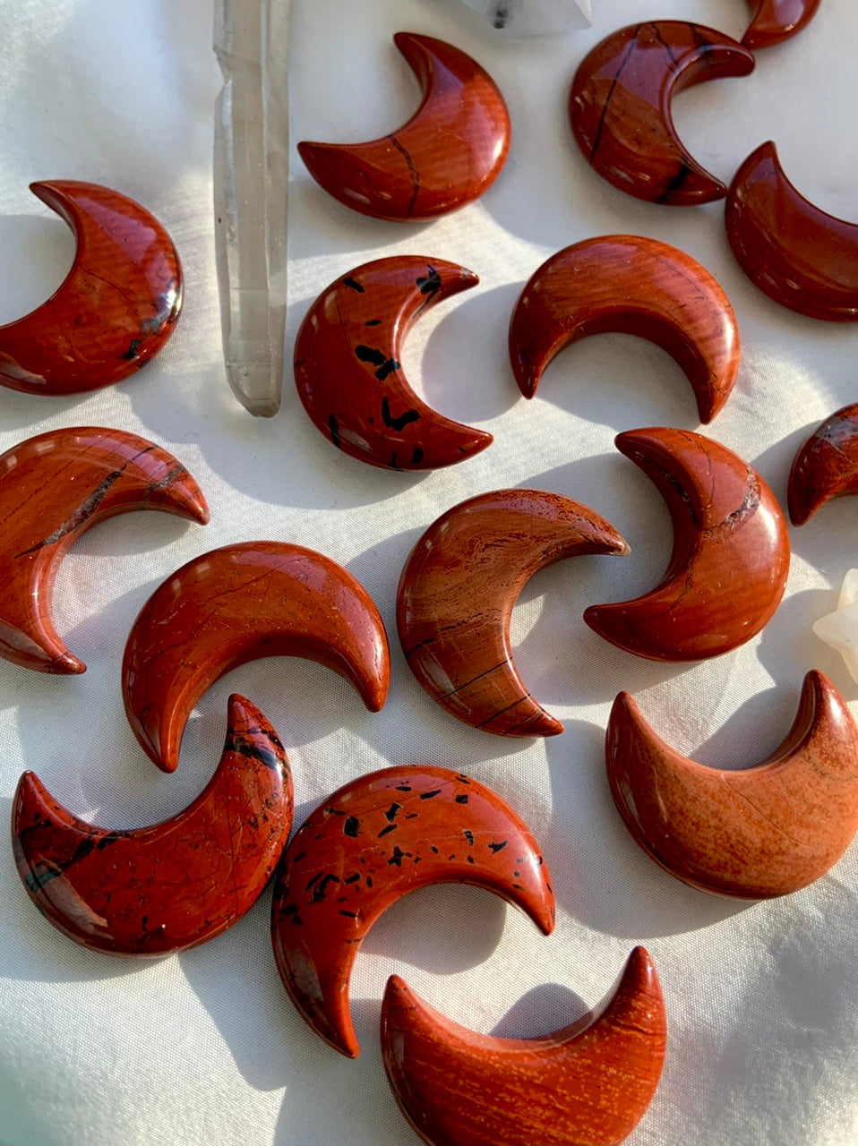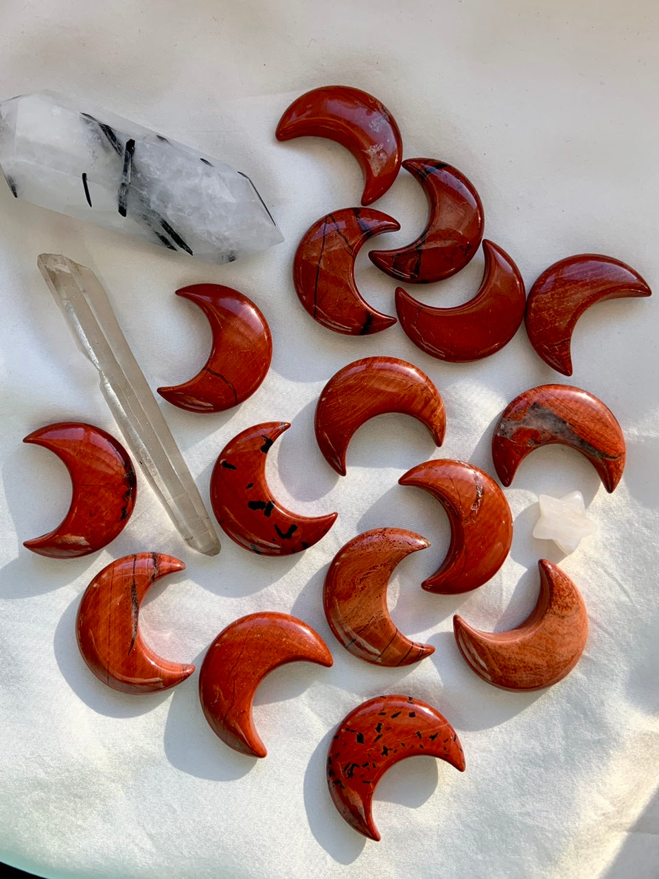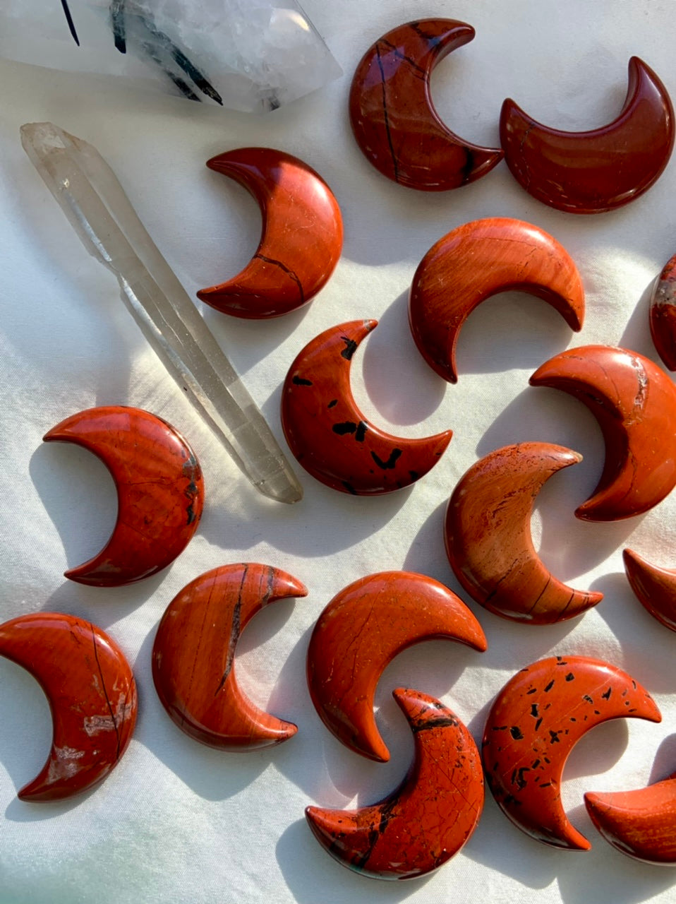 Our Red Jasper collection features radiant moon carvings and a rotating selection of one-of-a-kind spheres, towers, and sacred shapes—each chosen to help you anchor your energy, clear emotional blocks, and reconnect with your inner strength. Whether you're building a Root Chakra toolkit or seeking a talisman for grounded transformation, these earthy allies offer support for body, mind, and spirit.