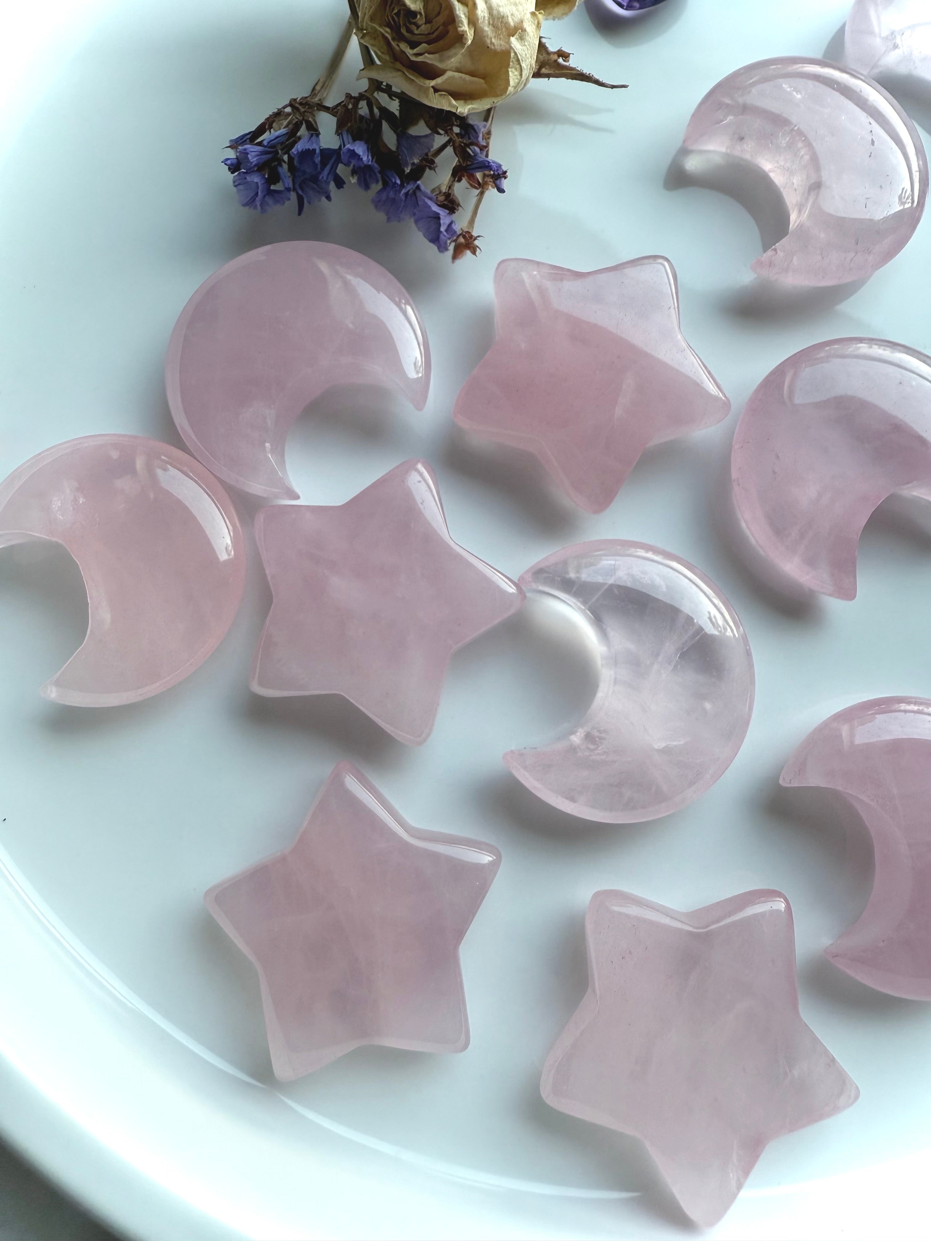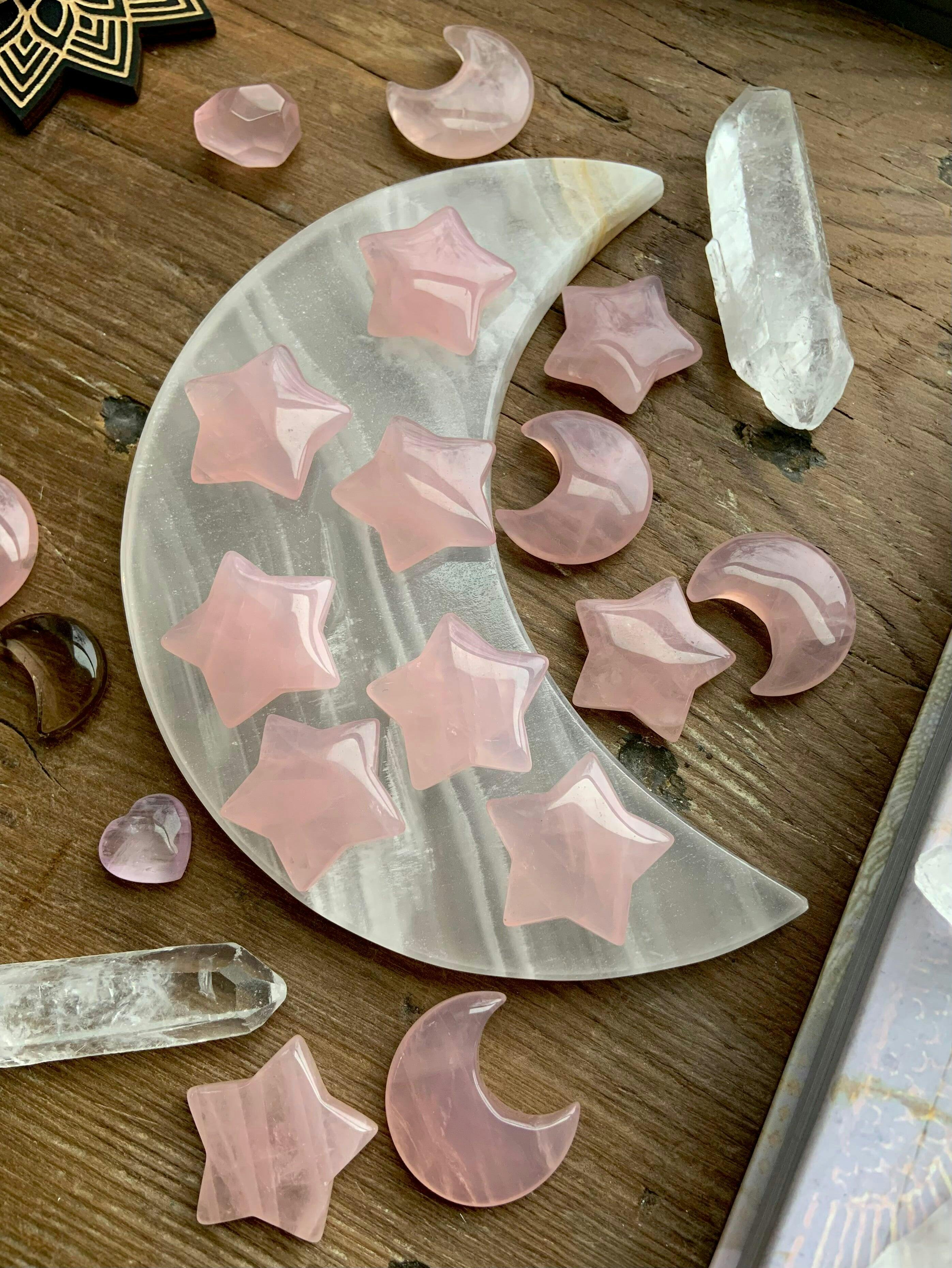 Rose Quartz Moons + Stars – Heart Chakra Crystals for Unconditional Love