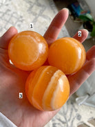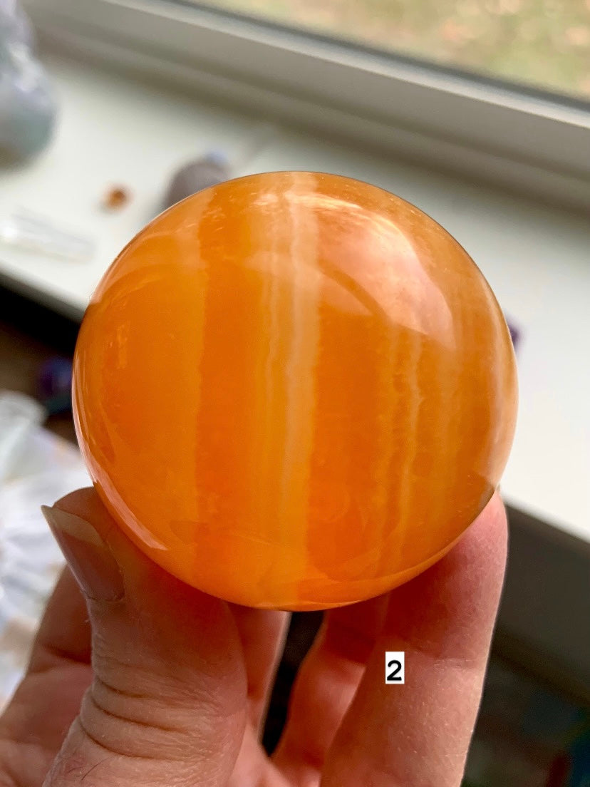 You will receive the exact orange calcite crystal sphere that you choose from the pictures. They are natural stones + may have inherent marks or slight imperfections. Weights + measures are approximate.