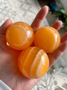 Crystal Spheres radiate energy in all directions + Orange Calcite brings healing + balance to your Sacral Chakra. A healthy Sacral Chakra freely circulates creative energy, aligned manifestation + self-confidence. The sparkly juicy translucence + saturated orange color with the contrasting banded patterns make these crystal balls quite special + stunningly beautiful.