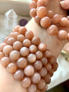Wear your pearly Peach Moonstone Bracelets to help you heighten your intuition, access inner wisdom + receive divine inspiration. Peach Moonstone evokes the Goddess + the divine feminine energy of the Moon.