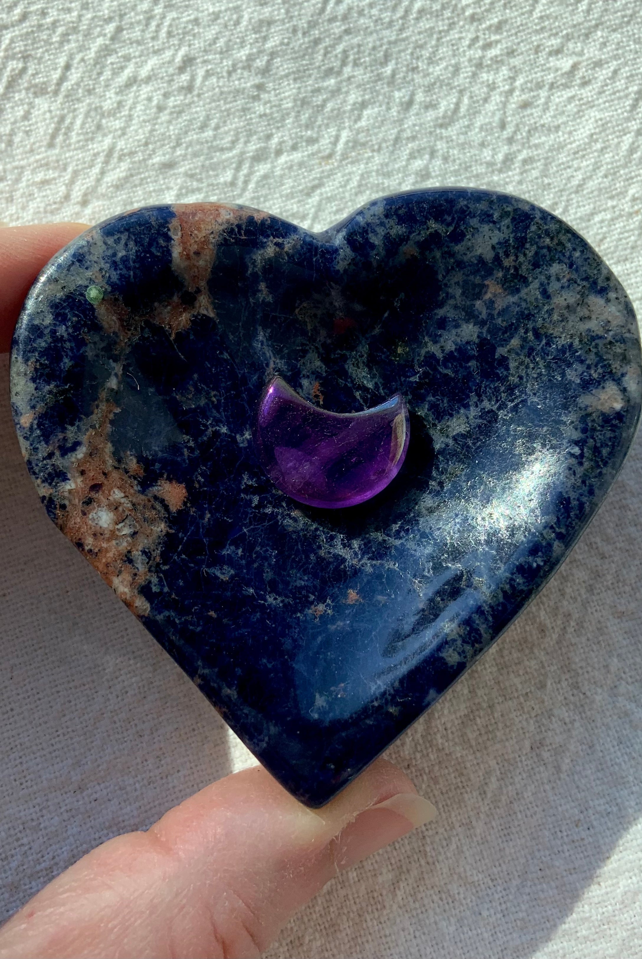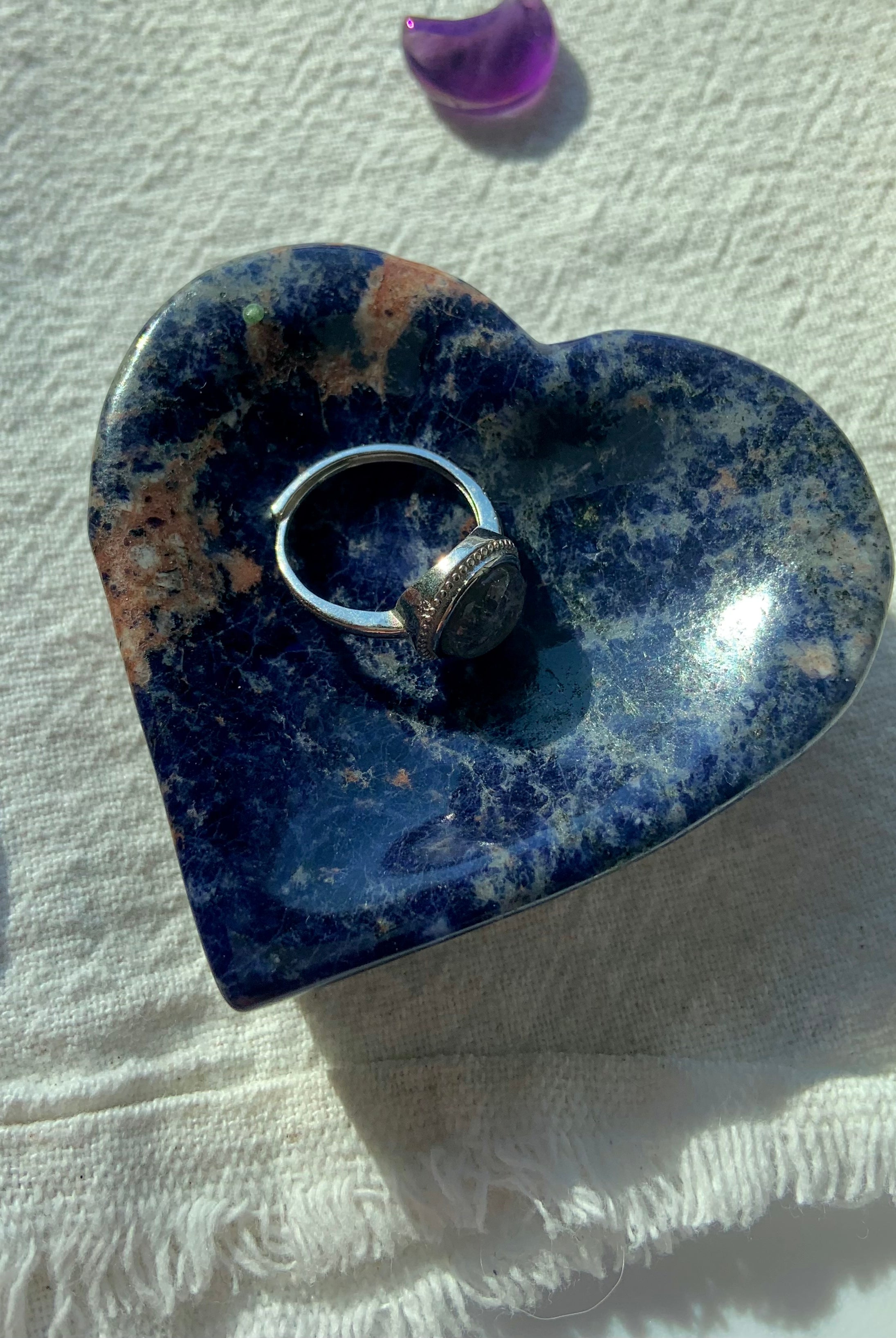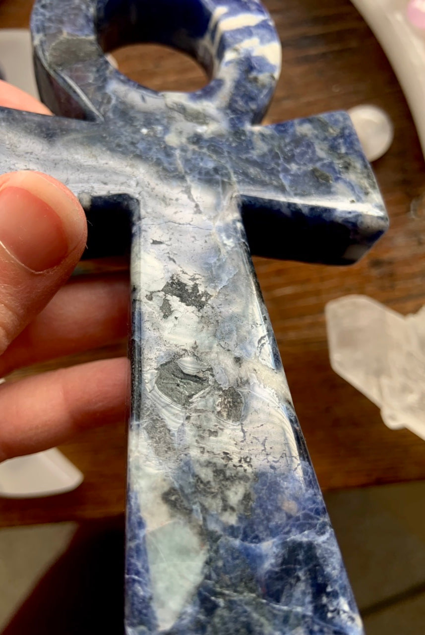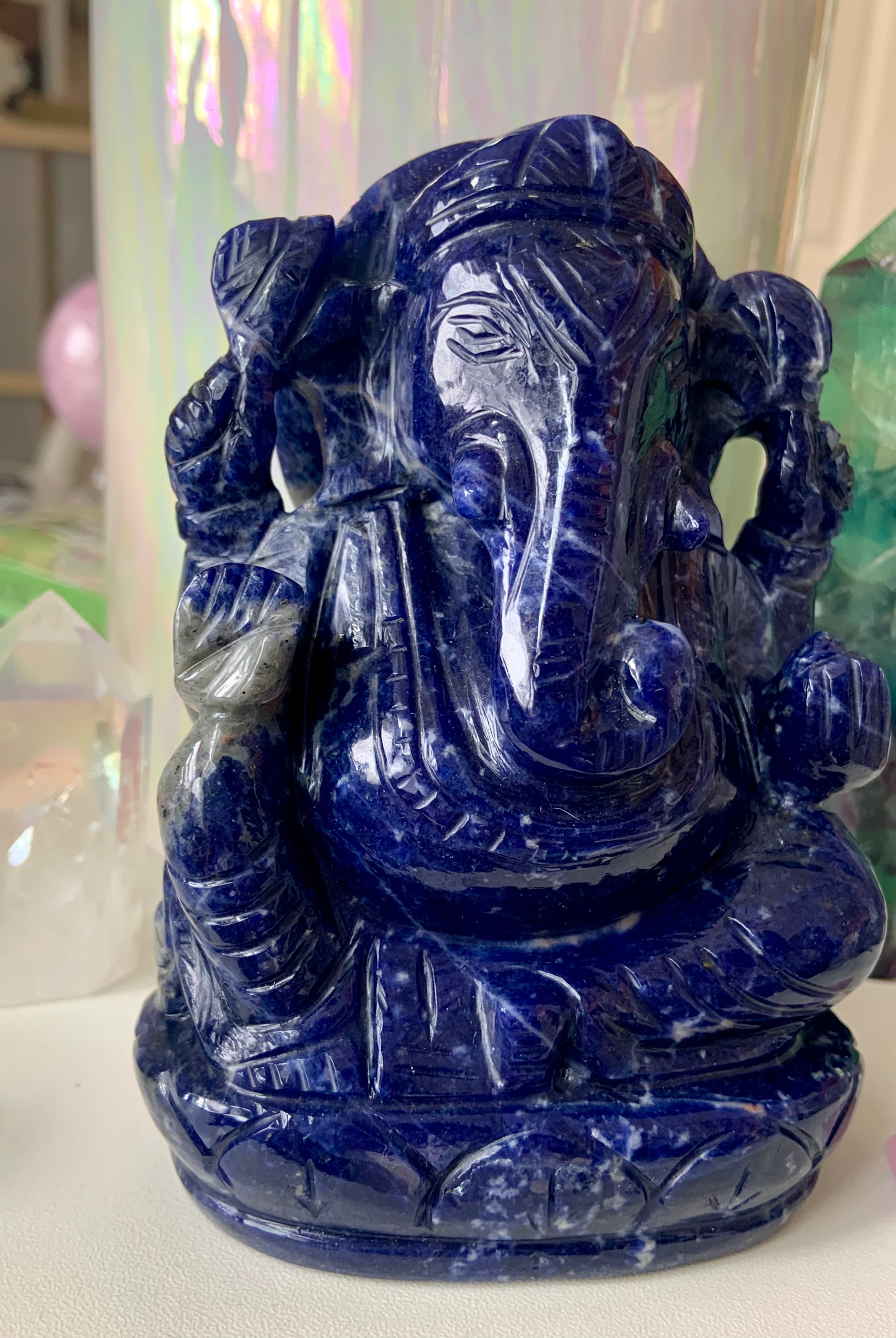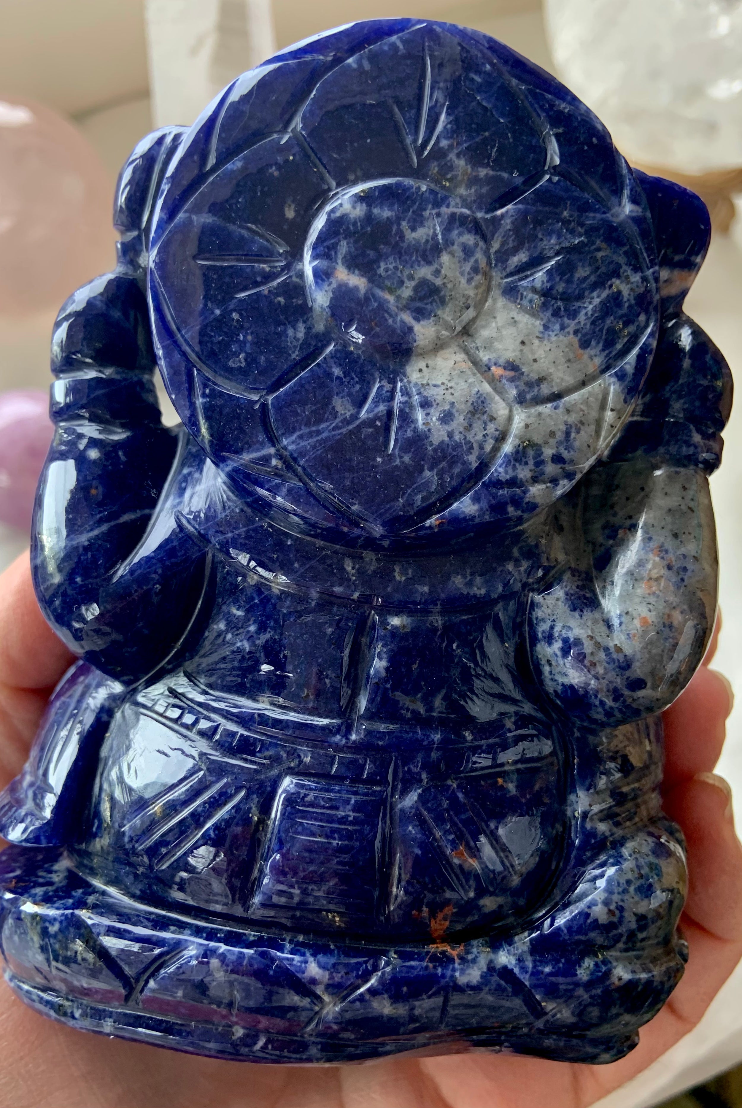 This collection features UV reactive Sodalite palm stones, with a rotating selection of one-of-a-kind carvings—like skulls, ankhs, and Ganesha—alongside bowls, towers, spheres, and handcrafted jewelry. Raw and part-polished pieces are coming soon, as well as a featured spot in our upcoming Throat Chakra crystal set. Whether you’re working with dreams, expression, or inner clarity, Sodalite offers a steady and sacred presence.