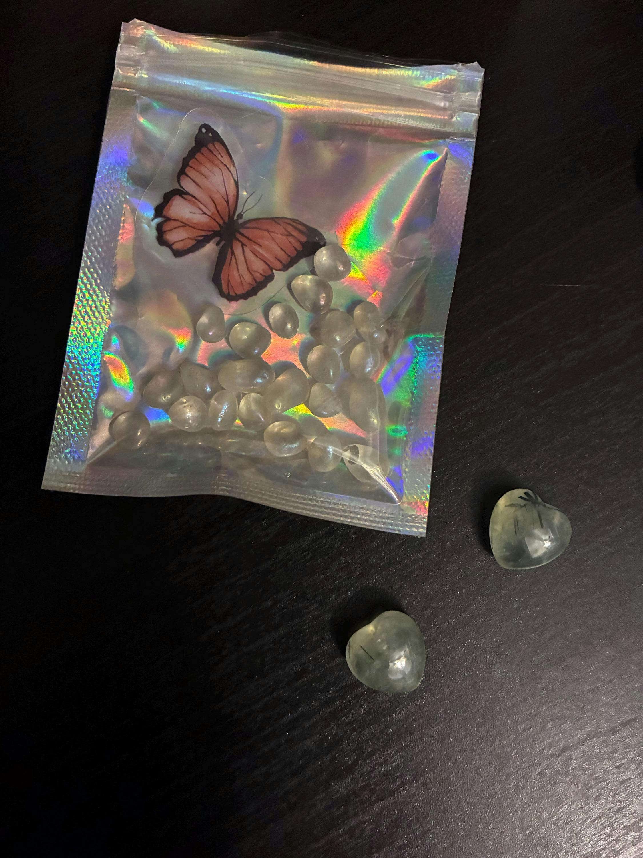 - Each side reveals its own distinct mix of translucence, color, and inclusions — highlighting the natural beauty and individuality of every heart
