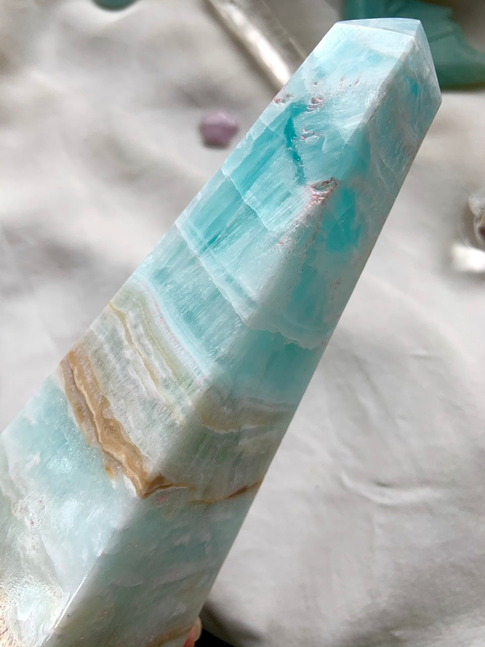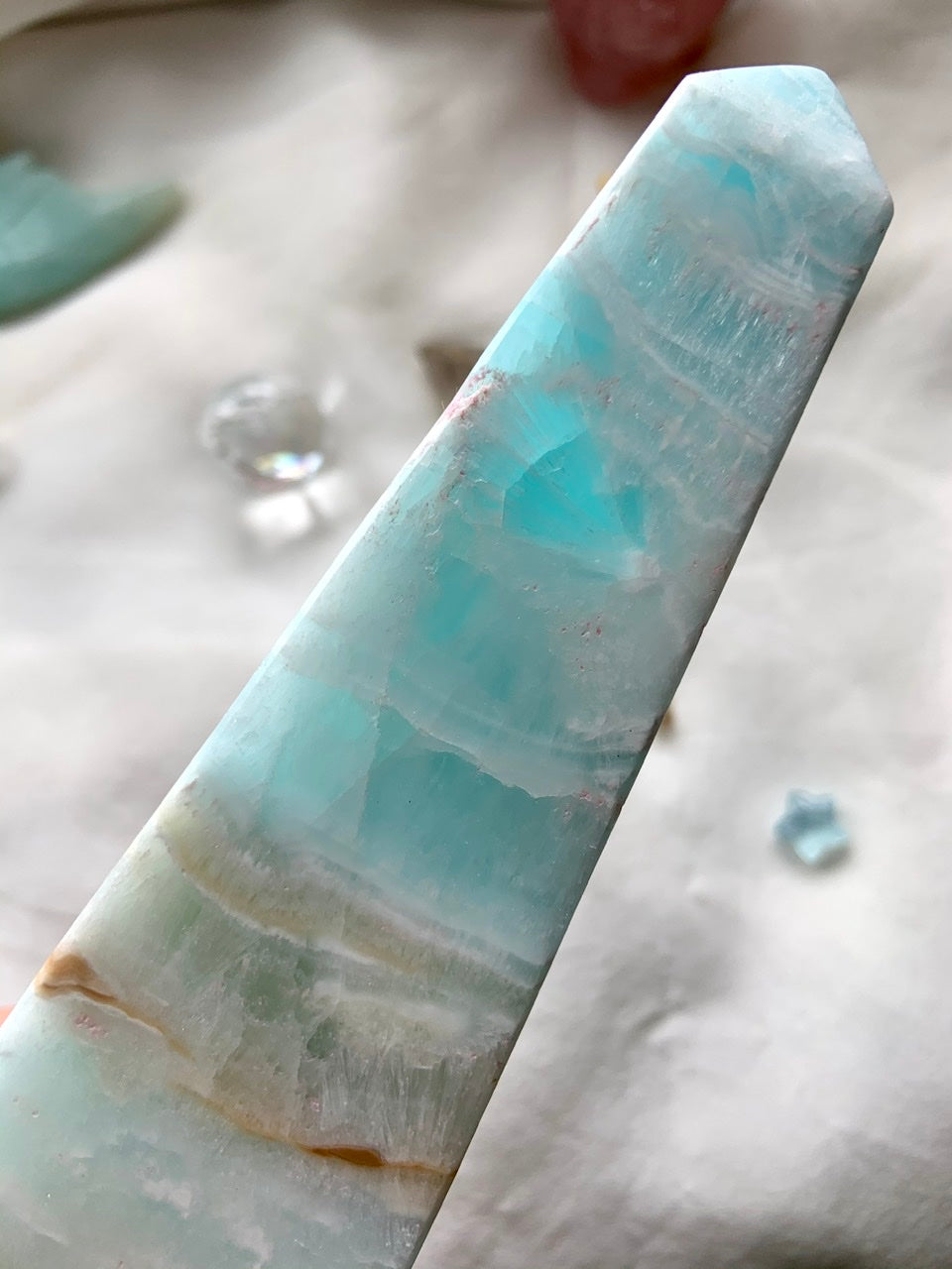 Caribbean Calcite soothes + opens the throat so that you can clearly express deeper feelings + emotions from your heart.