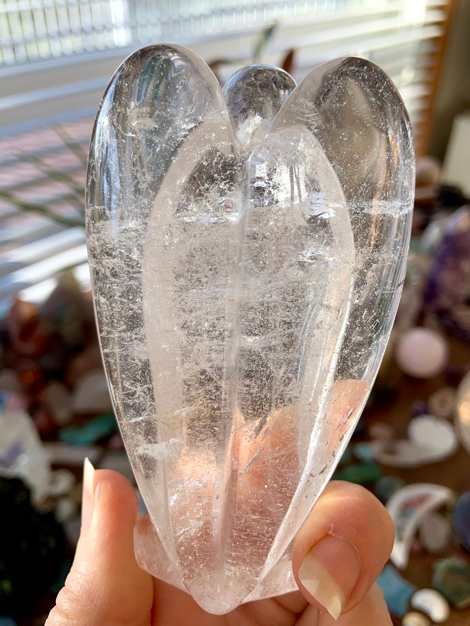 This sweet hand carved Clear Quartz Angel is a unique, truly gorgeous piece for your sacred space.
