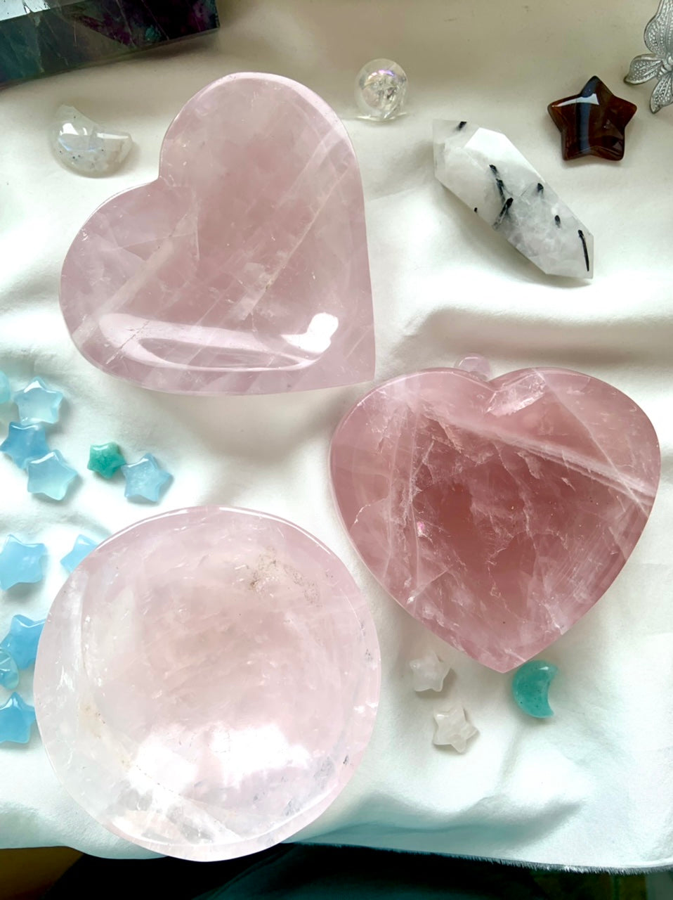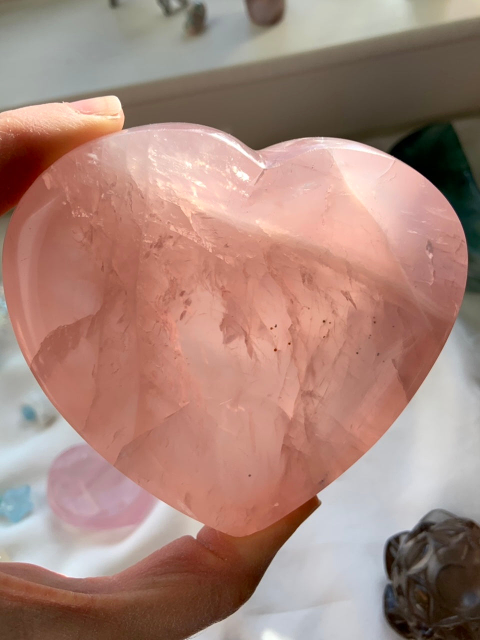 All varieties of Rose Quartz hold the energies of Unconditional Love + Compassion. It infuses your environment with heart-warming, heart-centered energy. Rose Quartz radiates love.