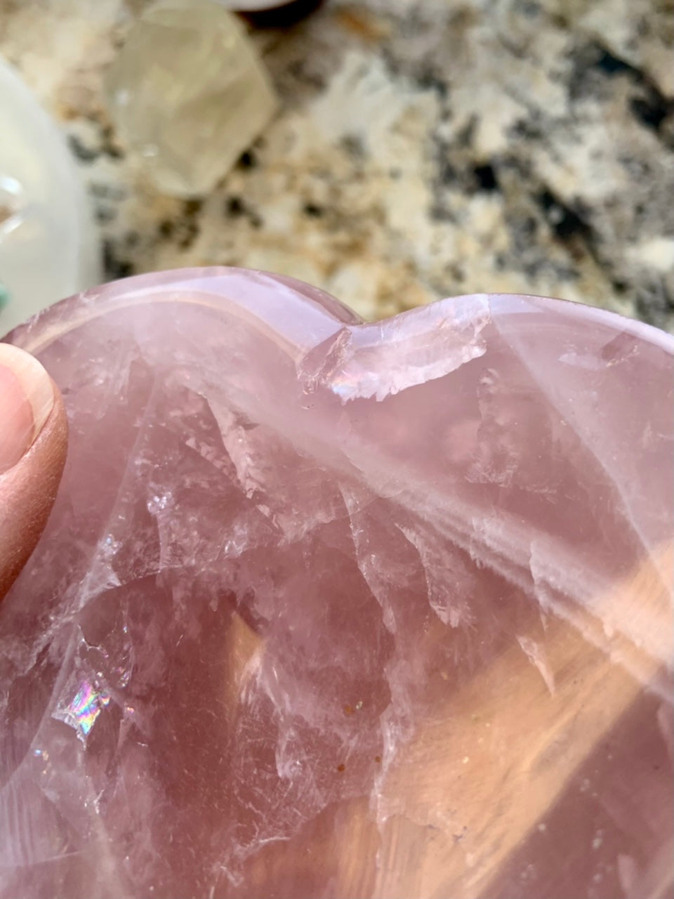 Lavender Rose Quartz Crystal Heart Bowl with Rainbows
