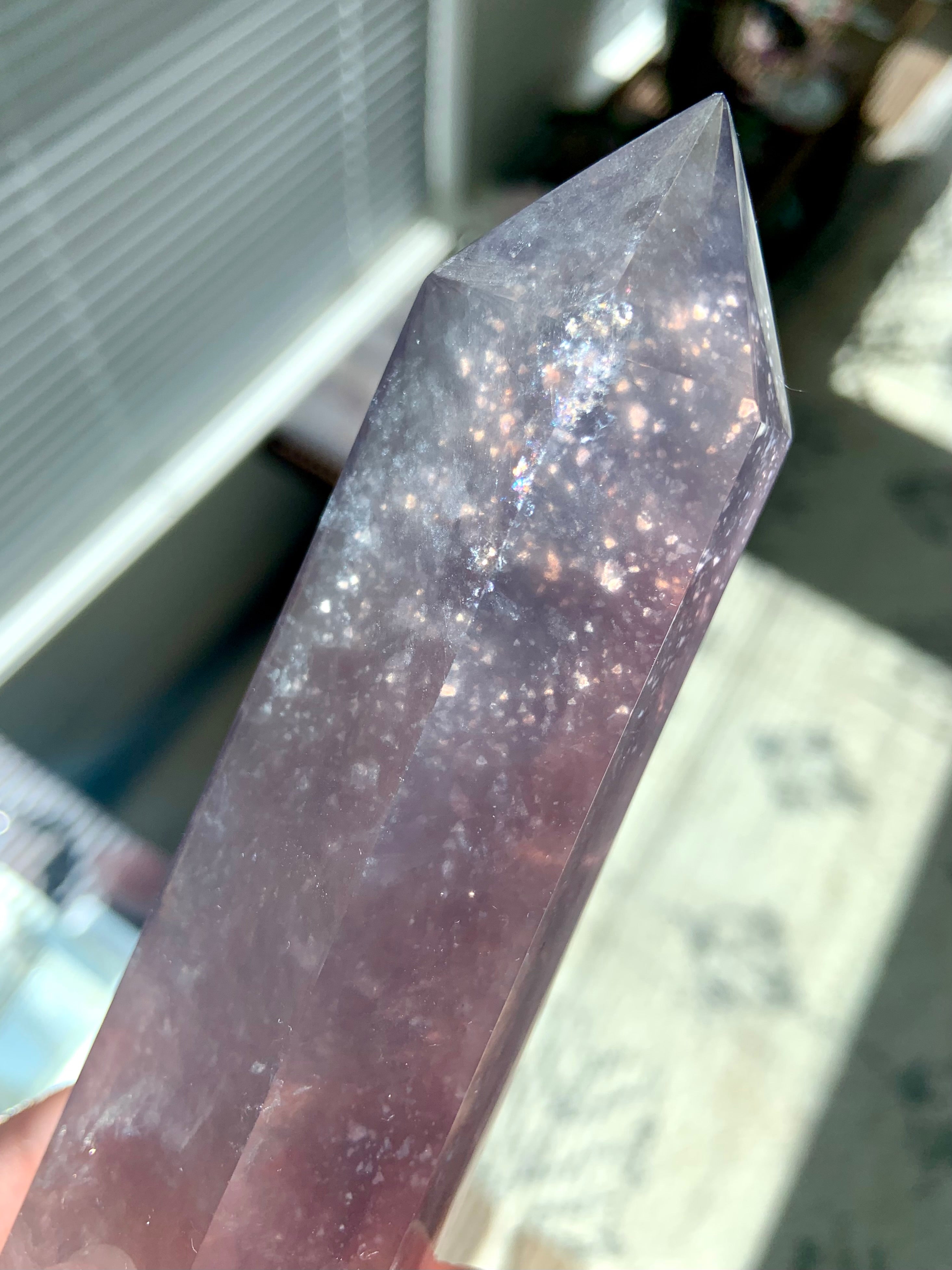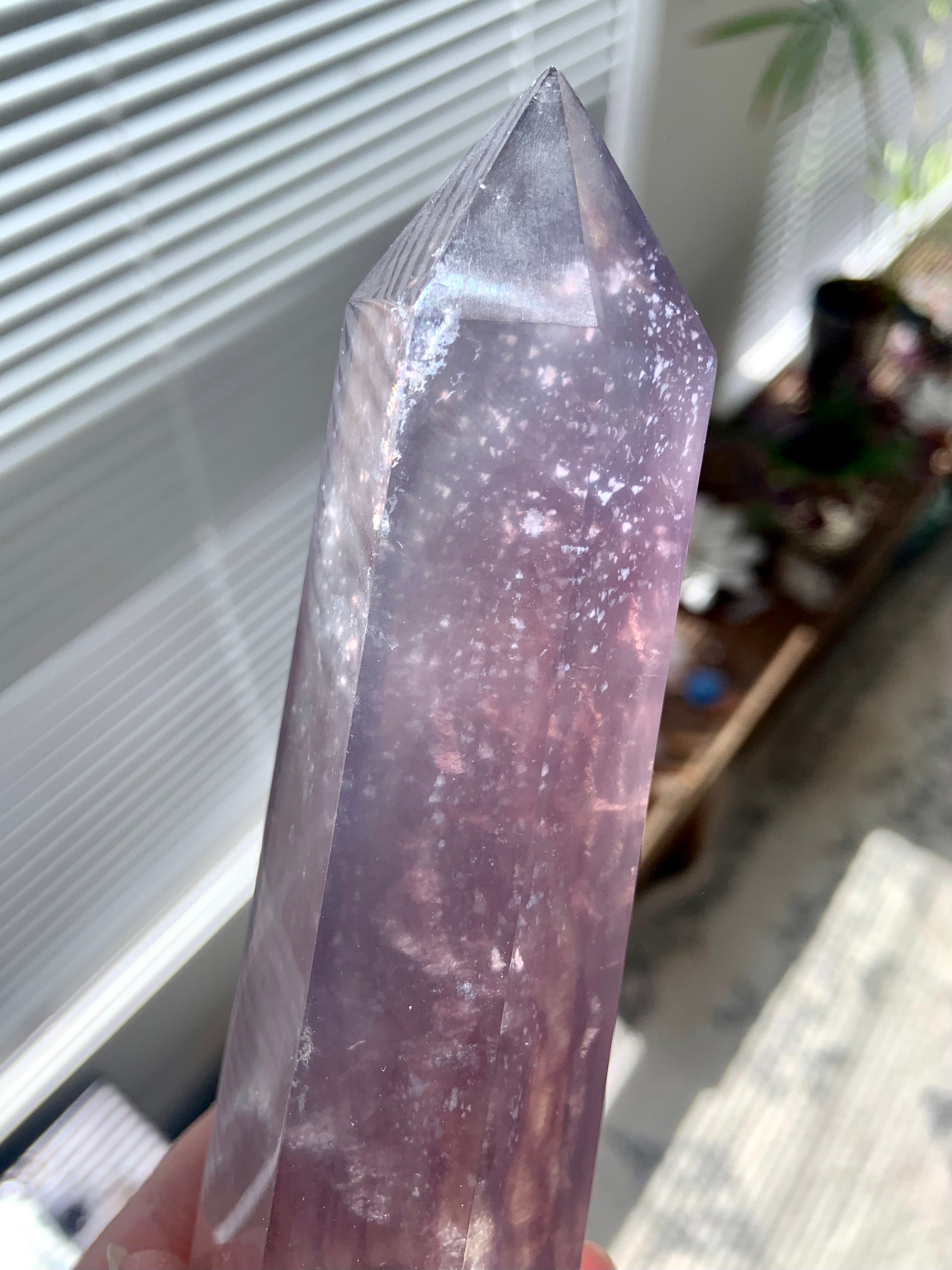 A gorgeous specimen of purple fluorite with such a dreamy, luminous quality that will bring cosmic magic to your crystal home decor + elevate your sacred space.