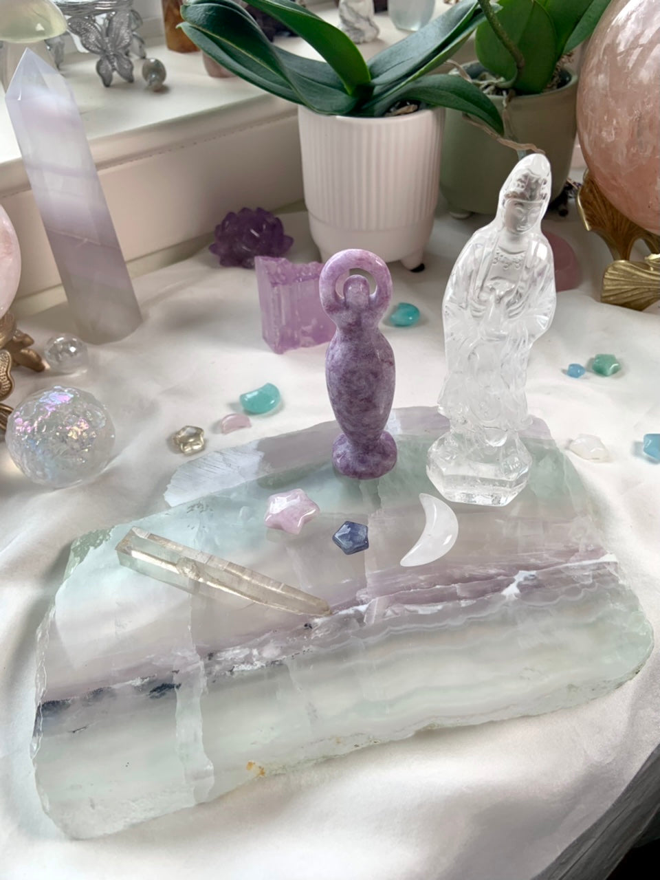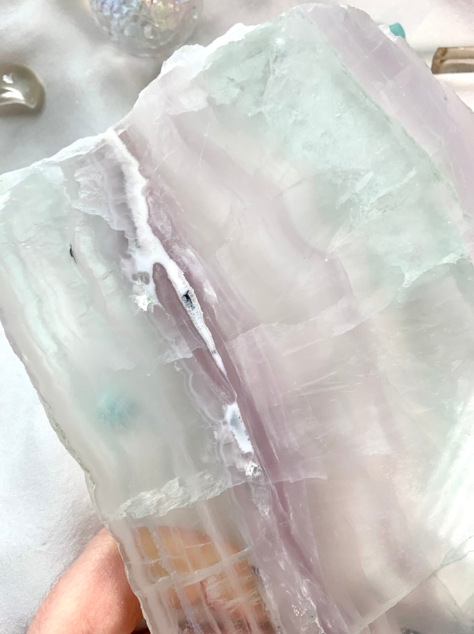 This luminous pastel fluorite with sweet crystalline energy that just glows, bringing a nurturing, protective energy to your space.