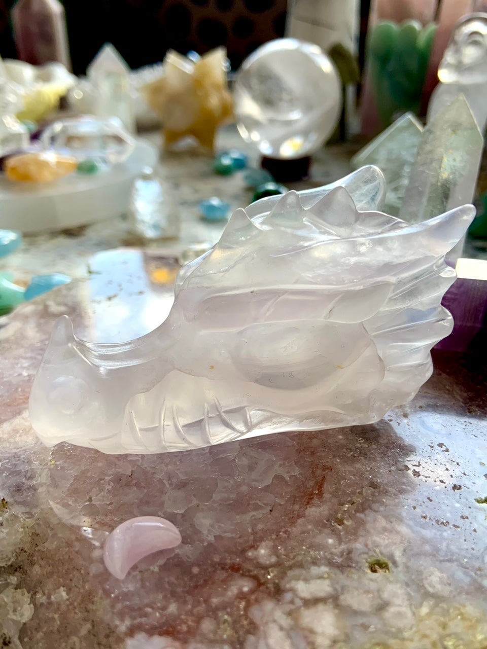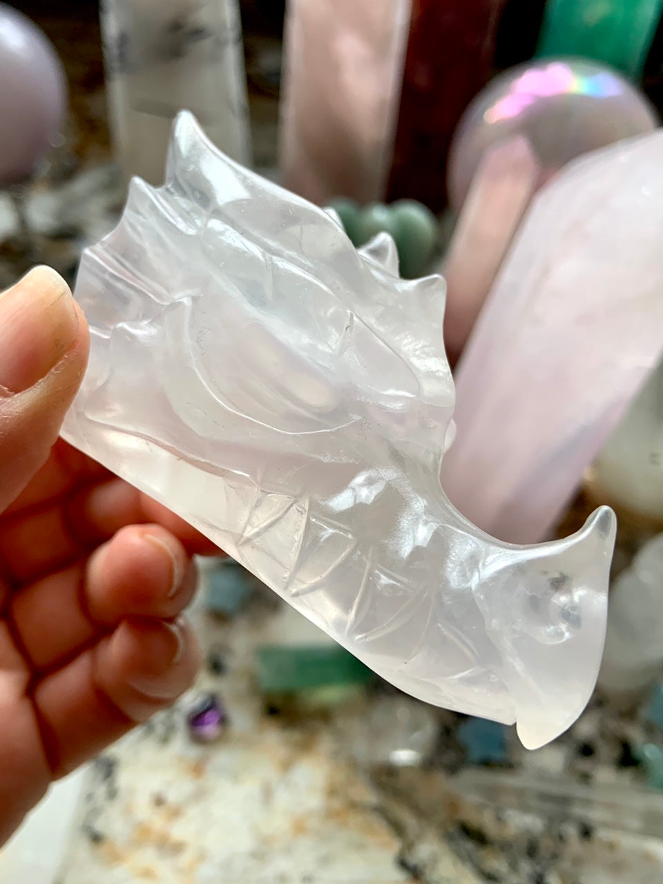 The extra special crystals sell out fast! Dragon inclusions, angel inclusions, mega rainbows, super rare formations, exquisite mineral combinations, masterful carvings, exceptional colors, majestic phantoms, palpable healing energy, or those rare + beautiful crystals with that extra something magical about them. Sometimes they're gone within a few hours of coming online, and others sit for a while, patiently waiting for their people to find them. If you see something you love in this collection, this might be your sign to check back often, get on our email list + follow us on social media where we often preview special crystals not yet in the shop. Or you can always send a message, I may have more from the same batch, or something similar + magical waiting just for you.