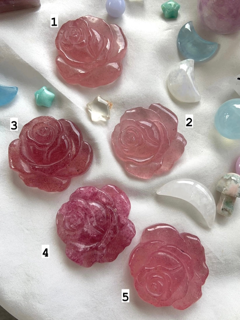 You will receive the exact Strawberry Quartz Rose that you choose from the numbered photos.