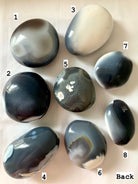 You will receive the palmstone you choose from the pics. These Orca Agate stones are shaped from high quality gemmy stone with a glossy polish, from Madagascar. Orca Agate is also called Ocean Agate + Black Carnelian.