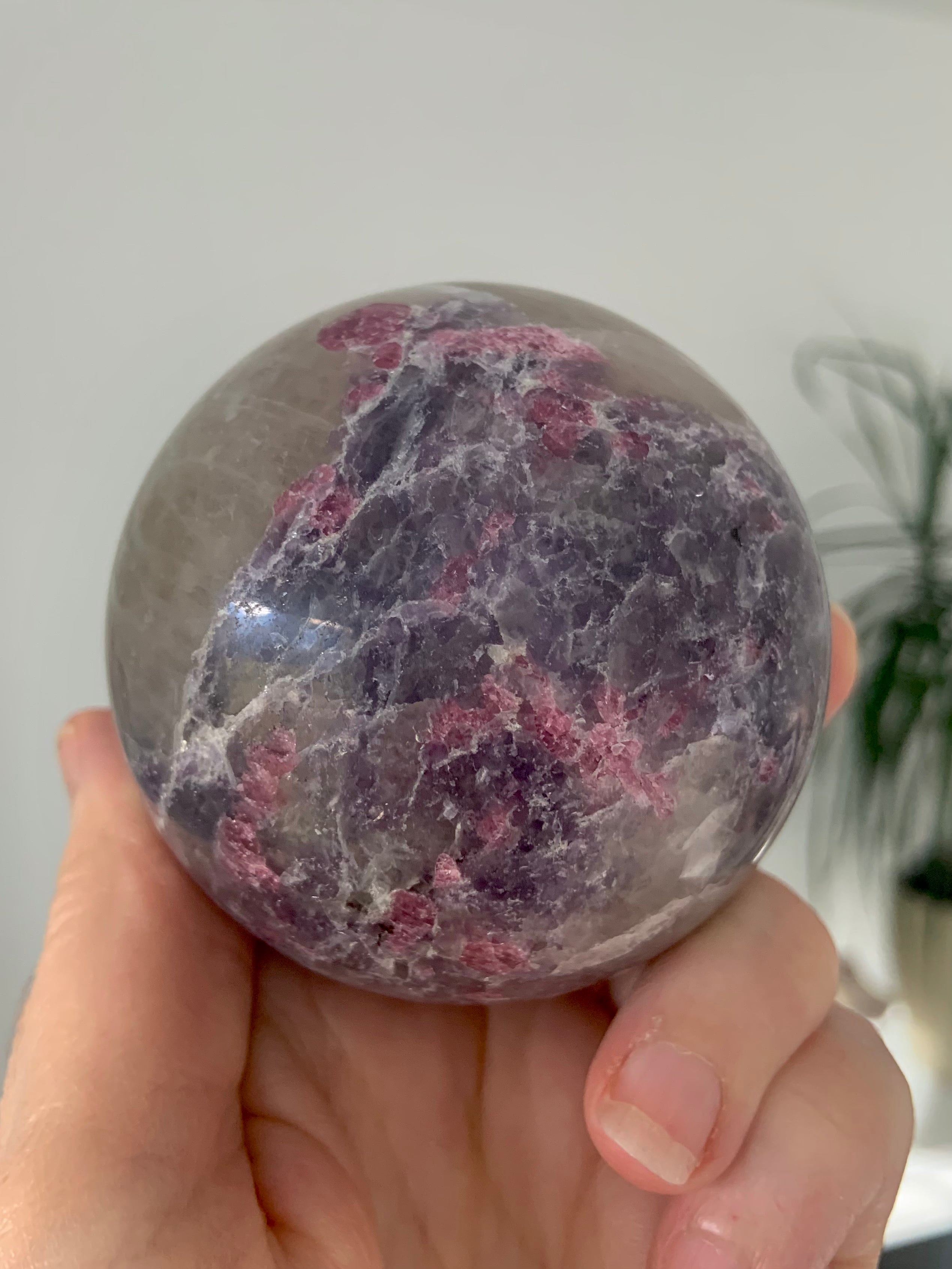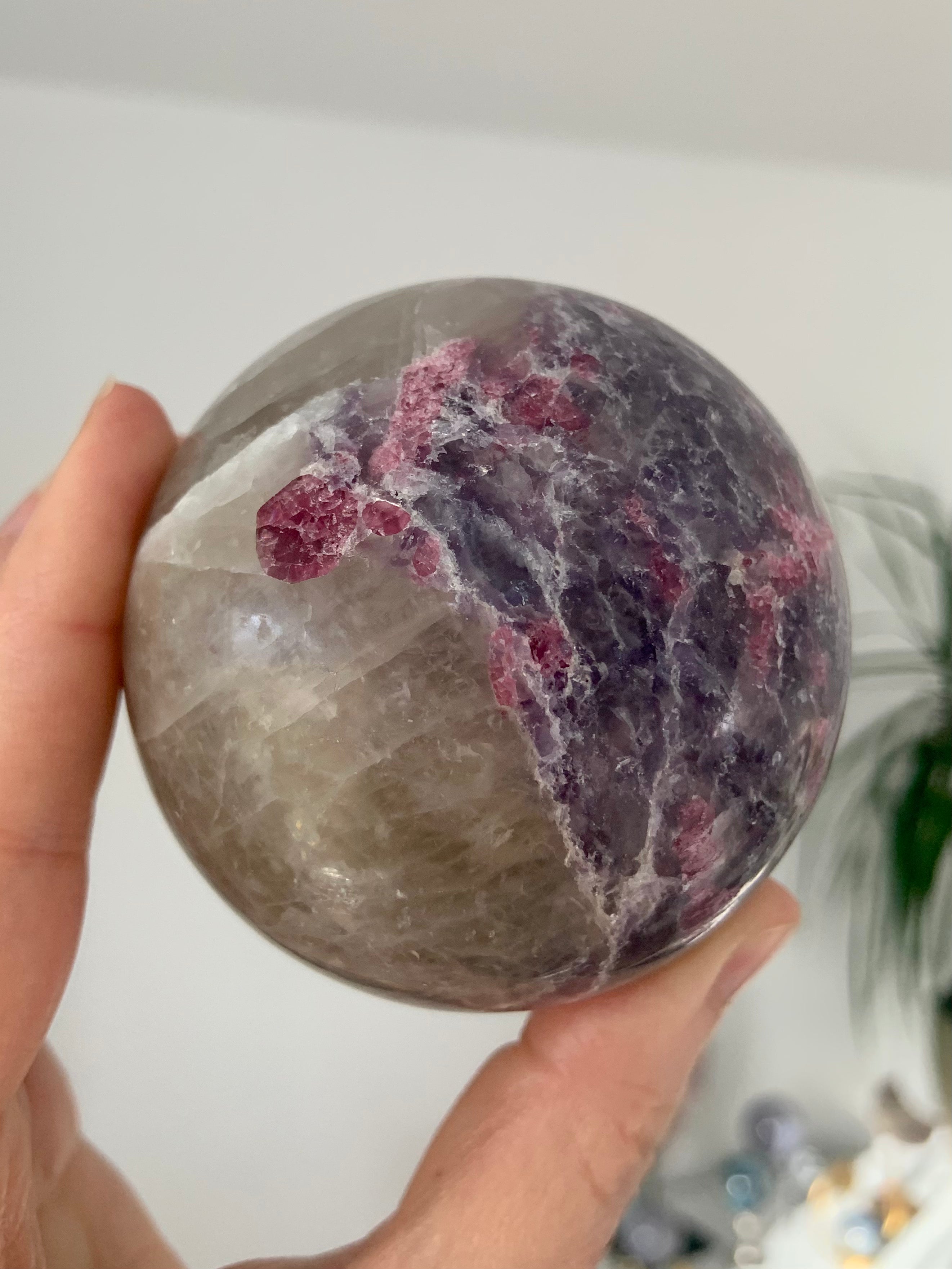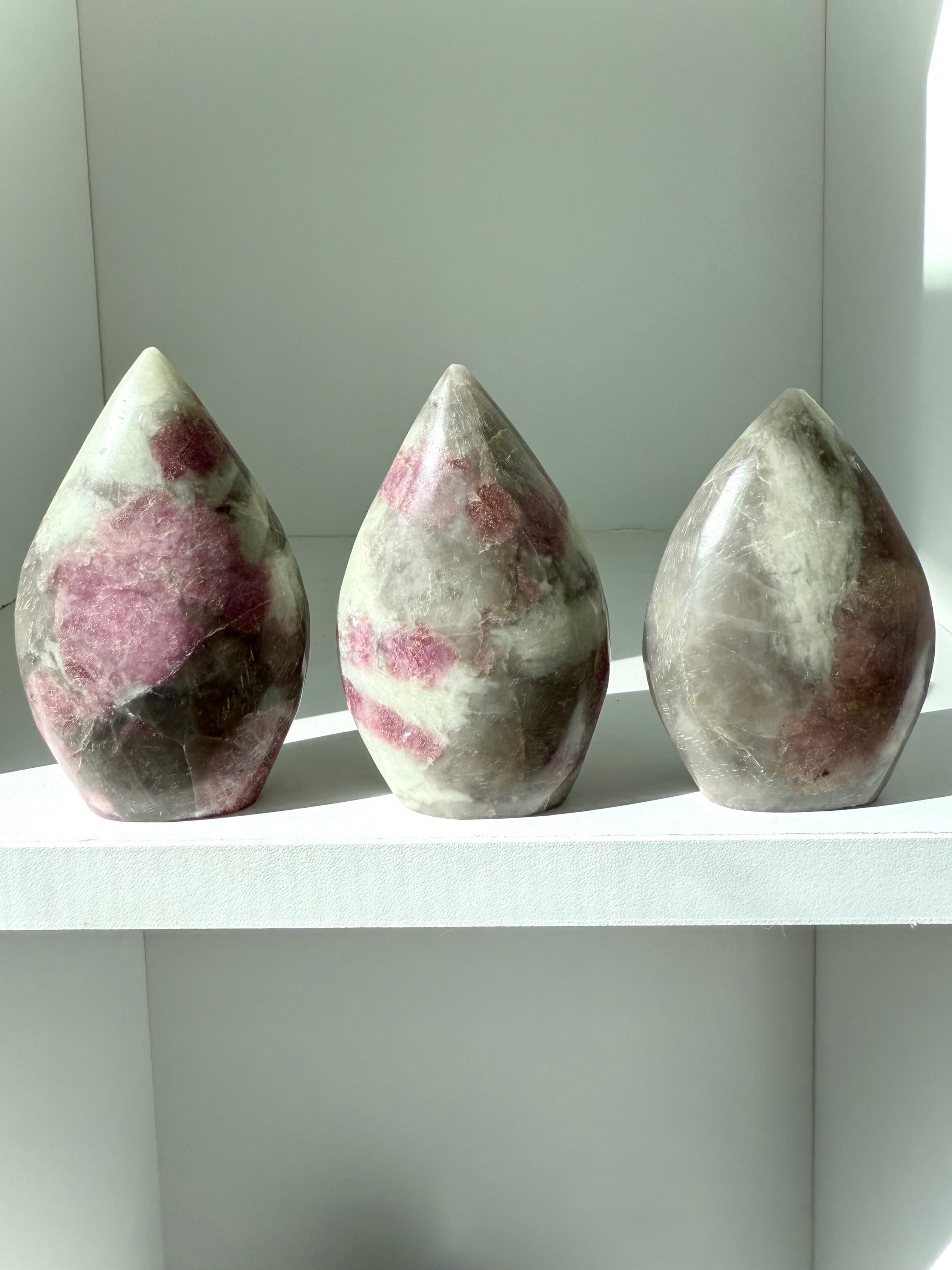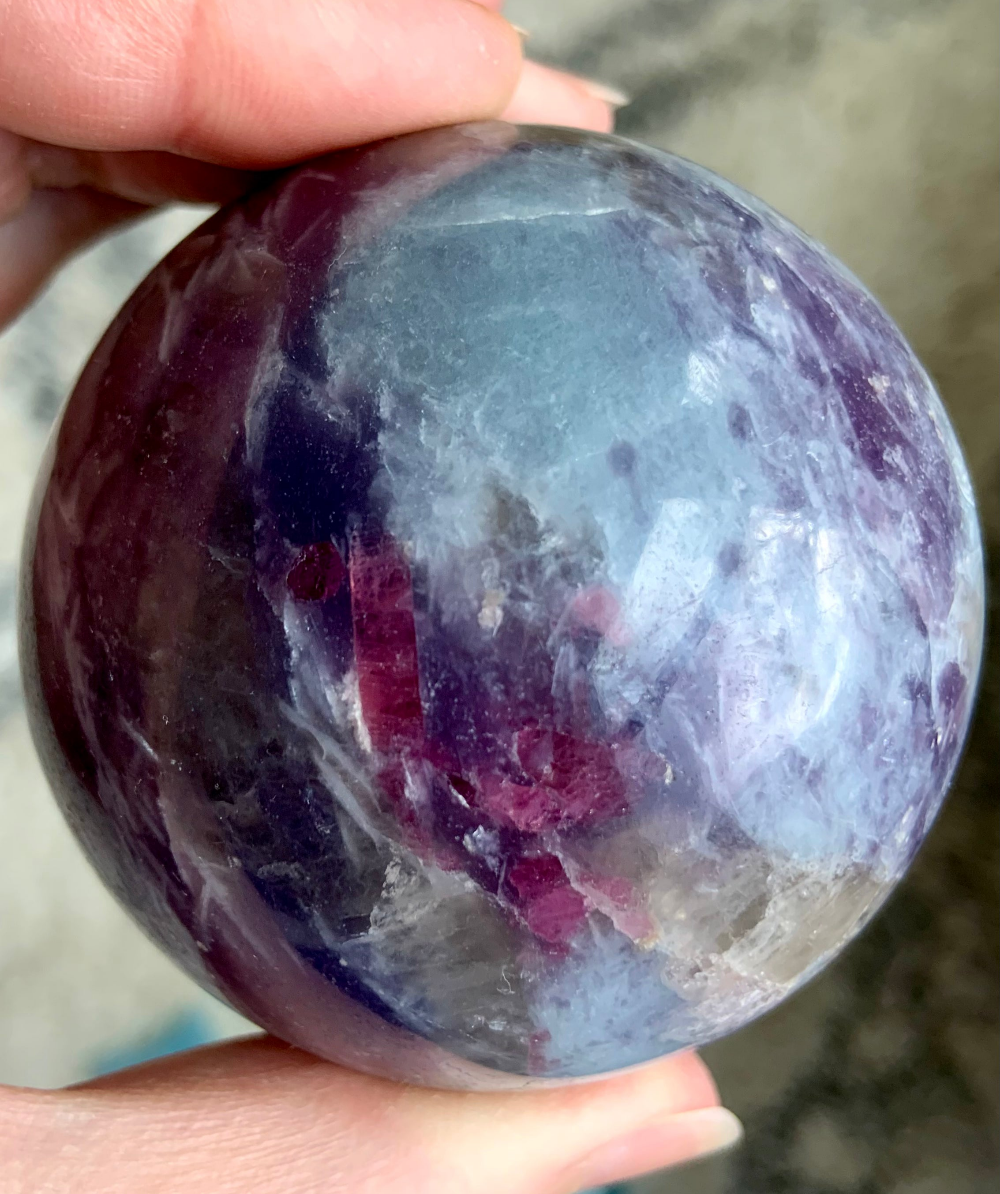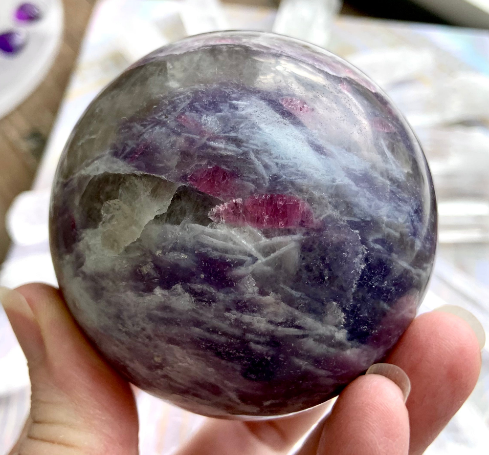 Unicorn Stone is a naturally occurring igneous pegmatite composed of Pink Tourmaline, Purple Lepidolite, Smokey Quartz, and Cleavelandite—each contributing to its nurturing, healing energy and gentle metaphysical benefits.