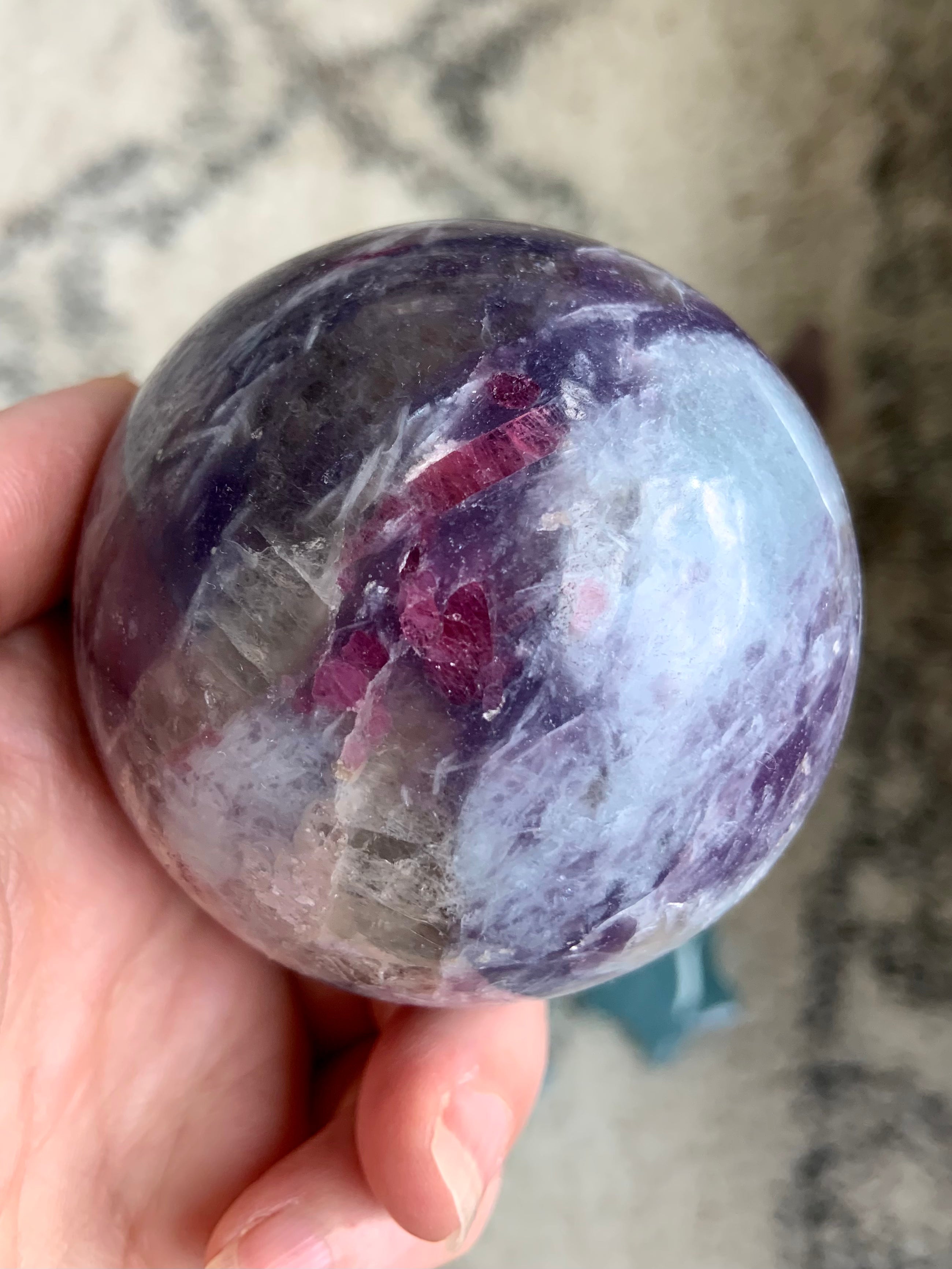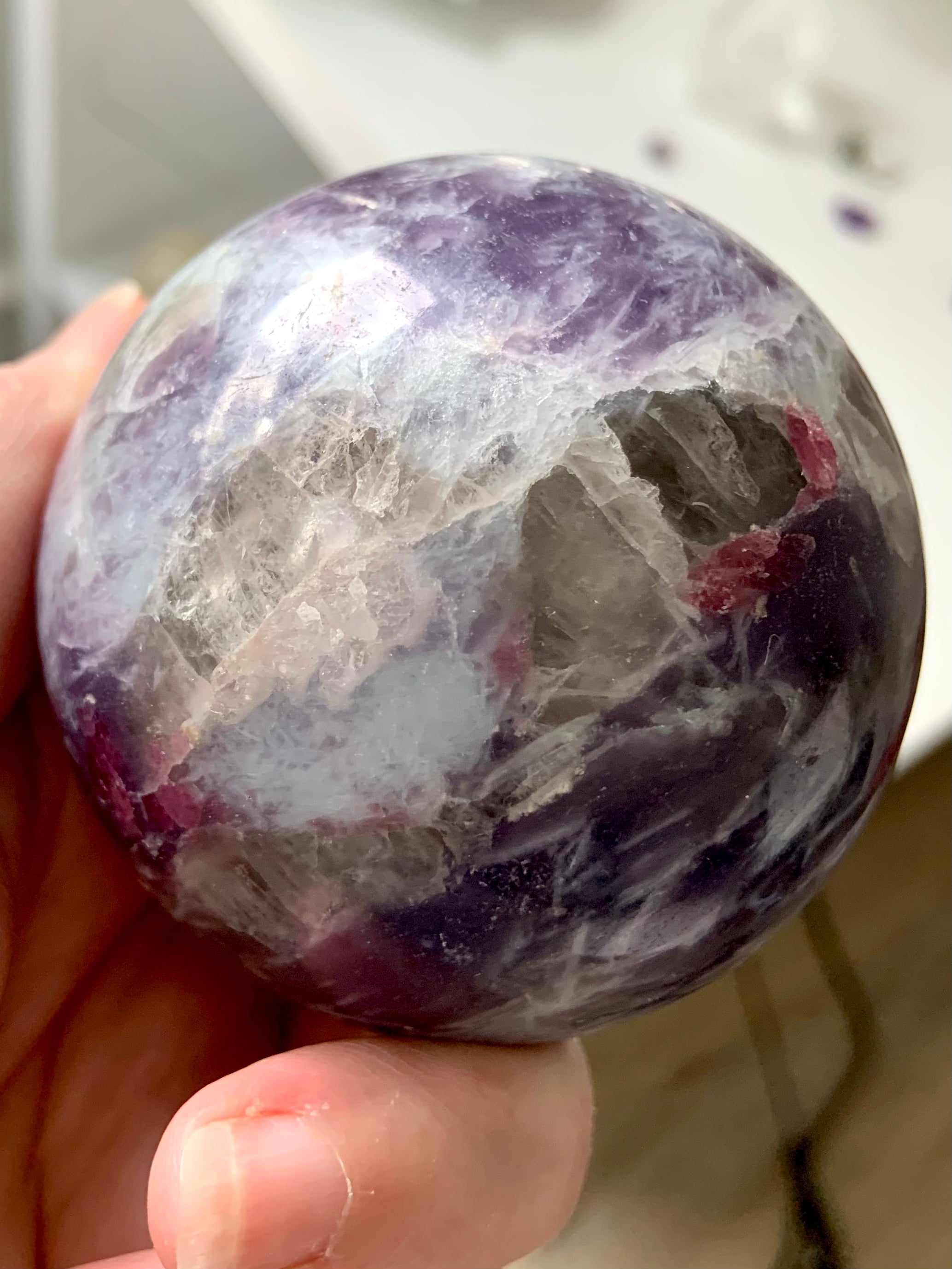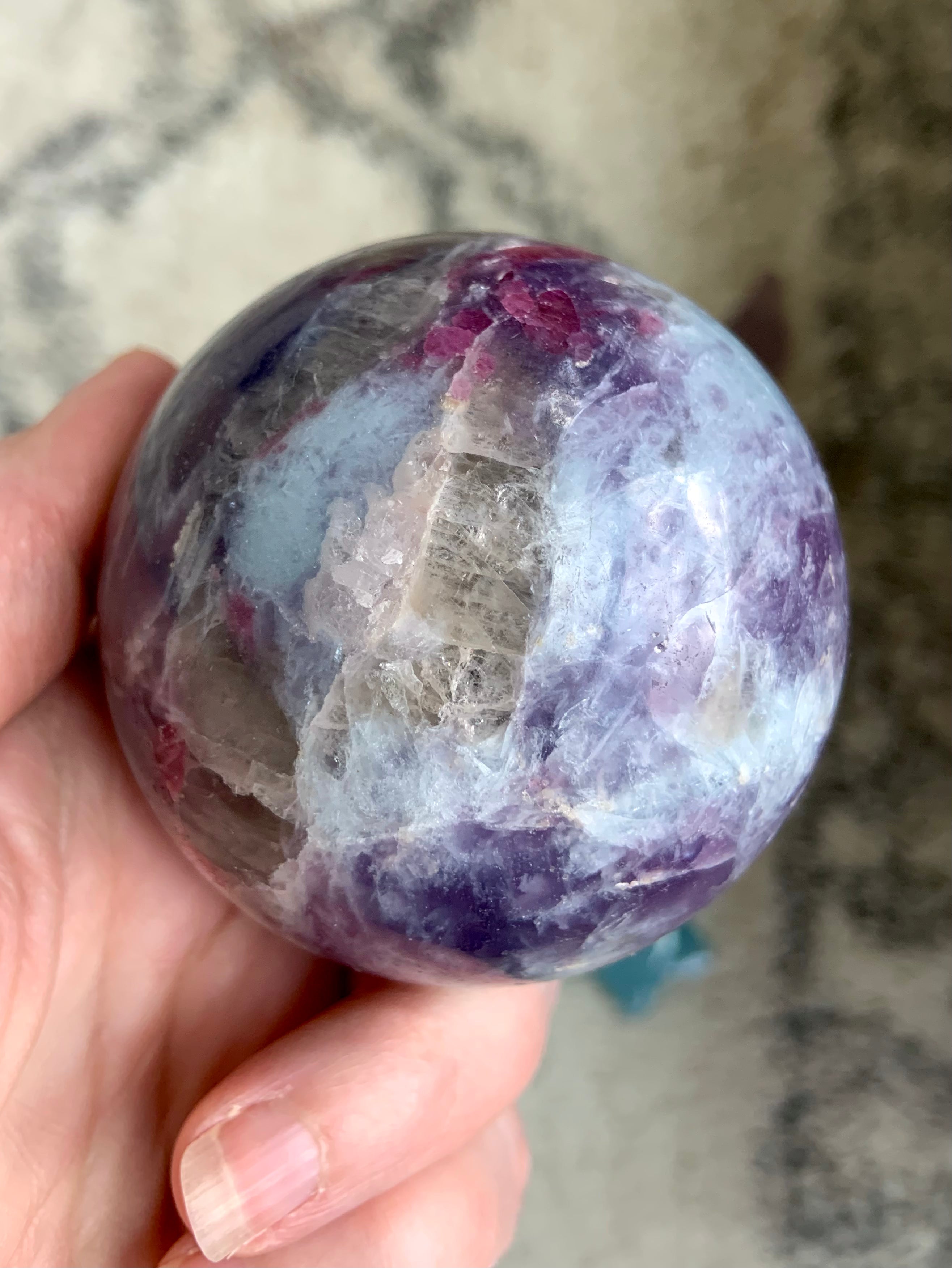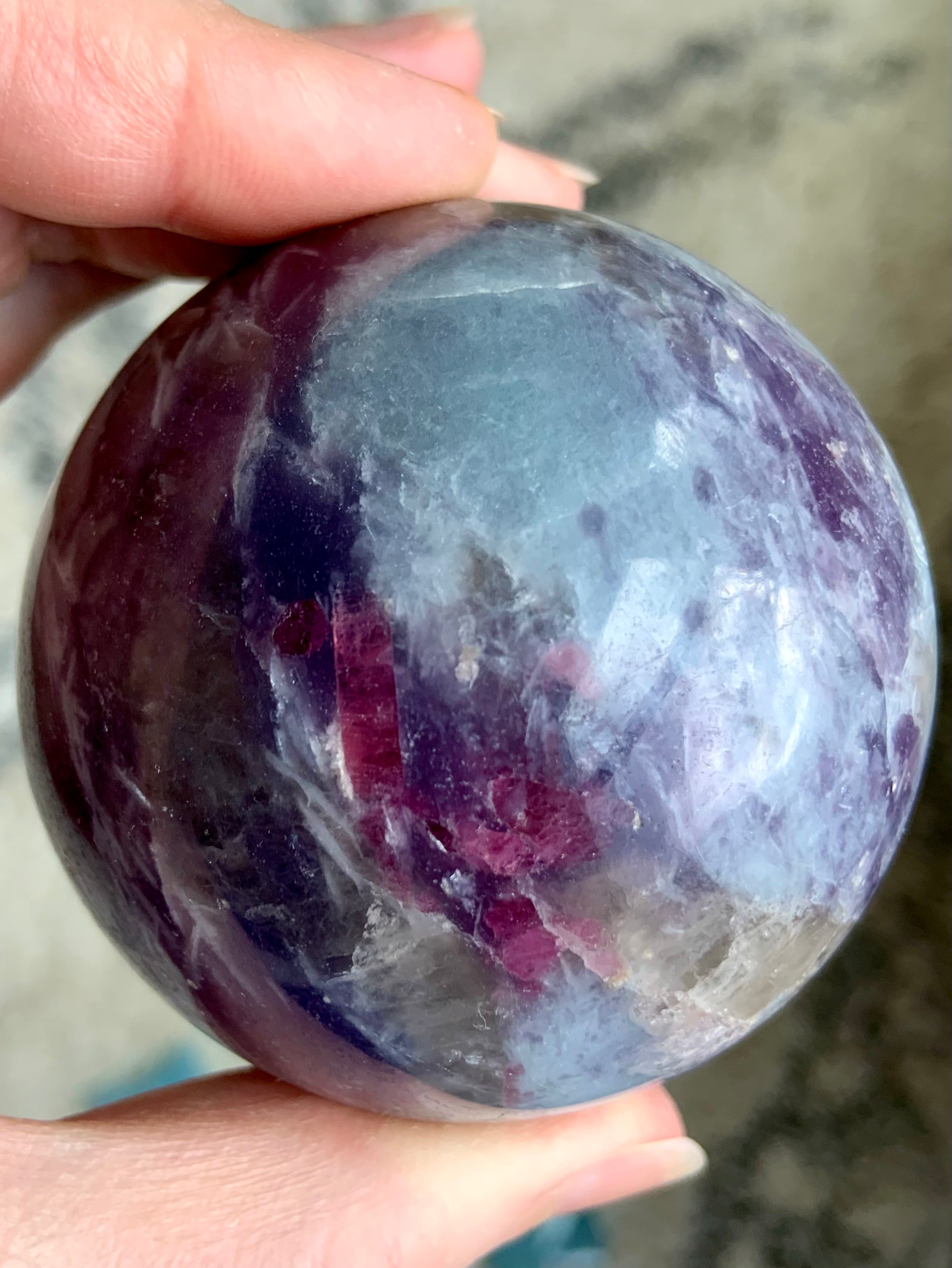 Unicorn Stone is a naturally occurring igneous pegmatite composed of Pink Tourmaline, Purple Lepidolite, Smokey Quartz, and Cleavelandite—each contributing to its nurturing, healing energy and gentle metaphysical benefits.