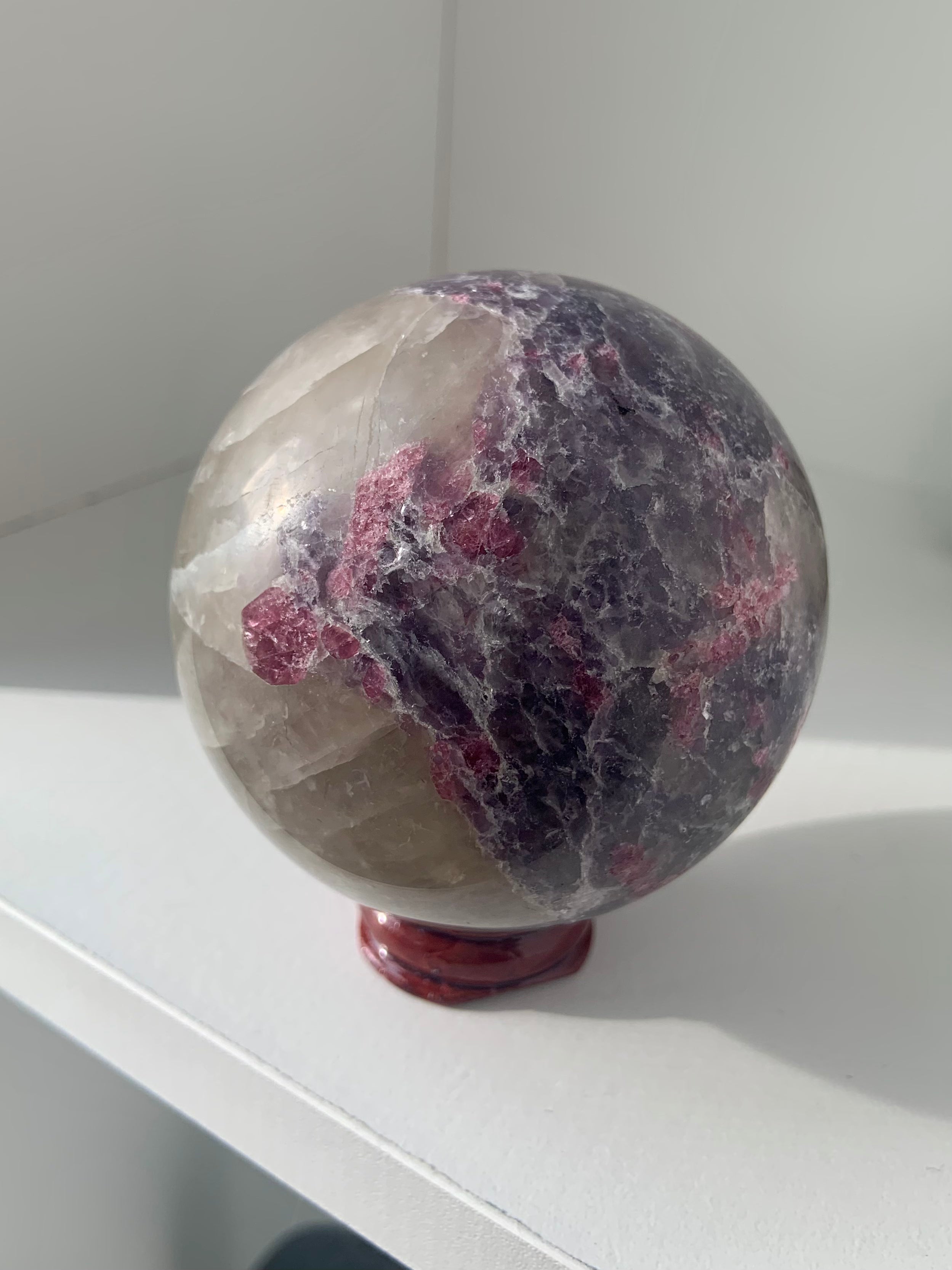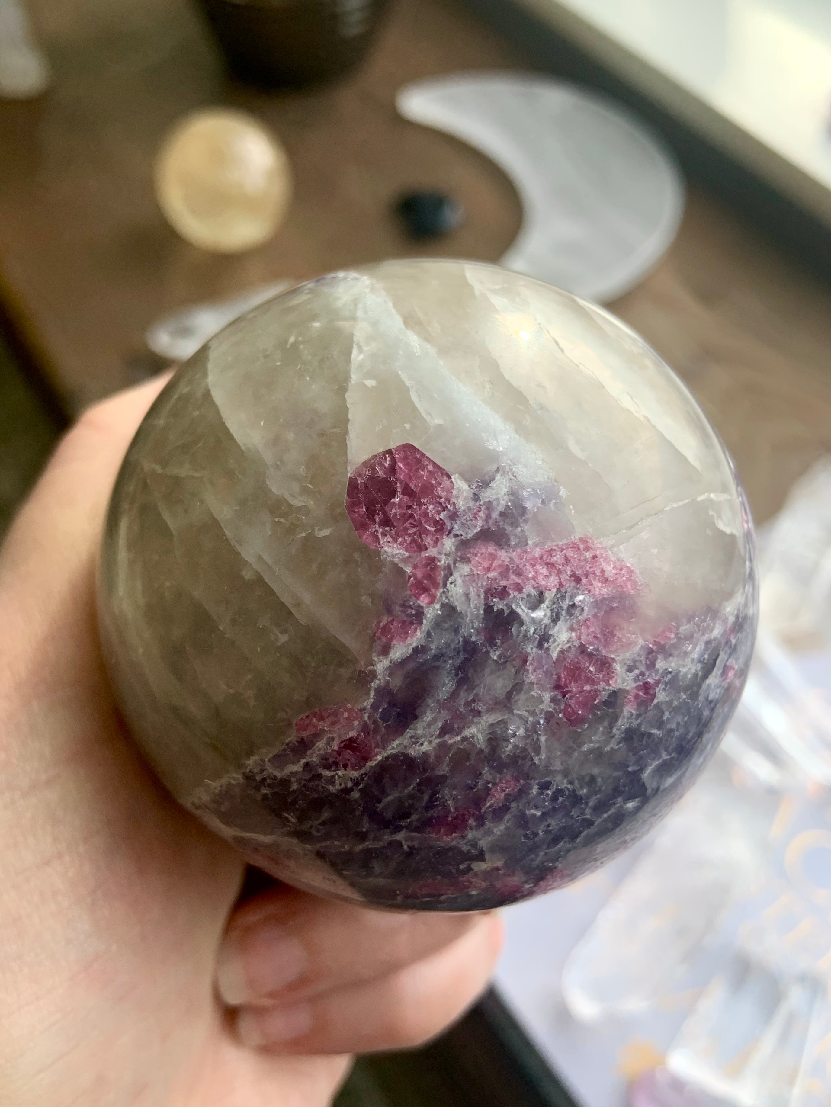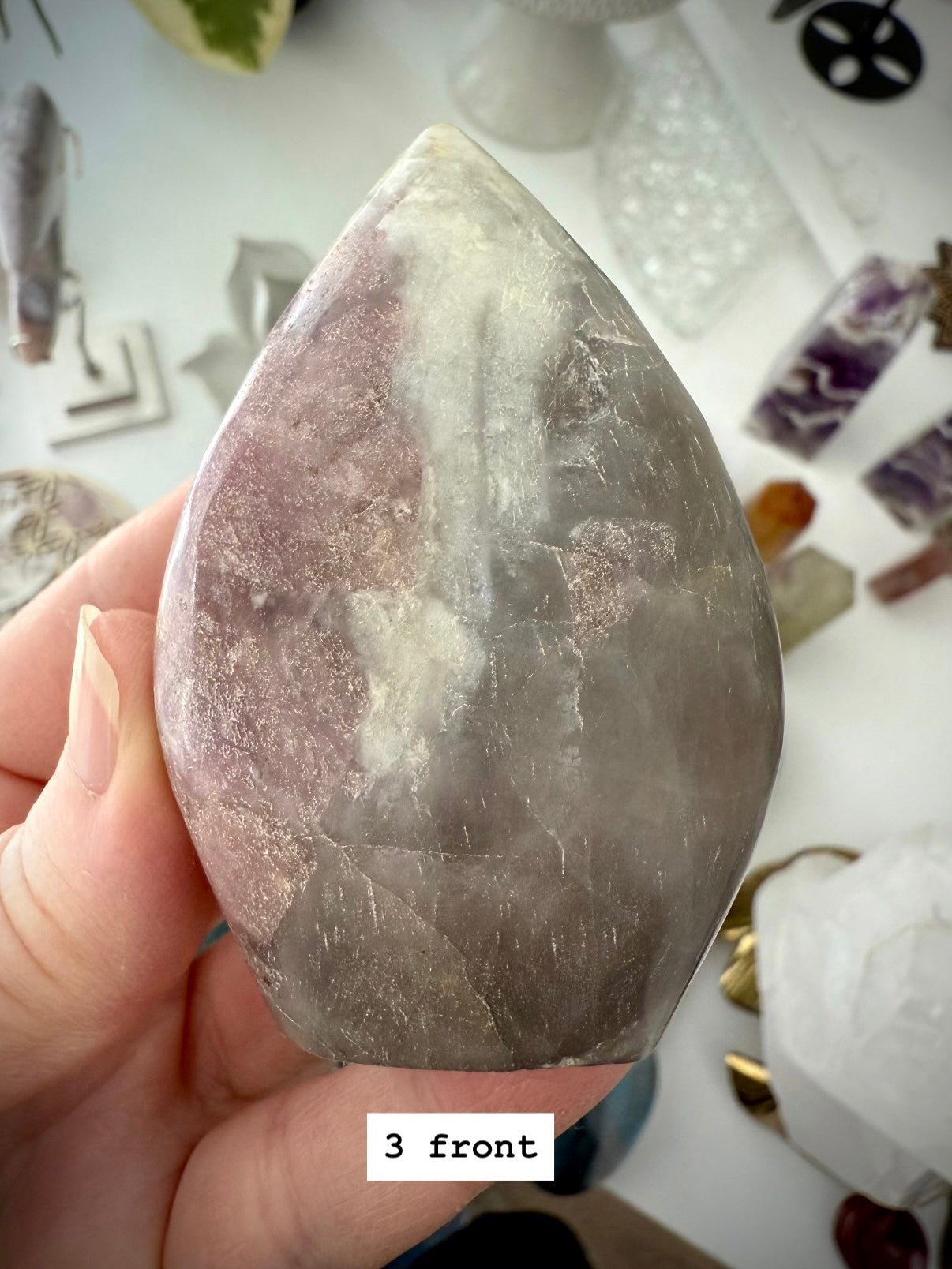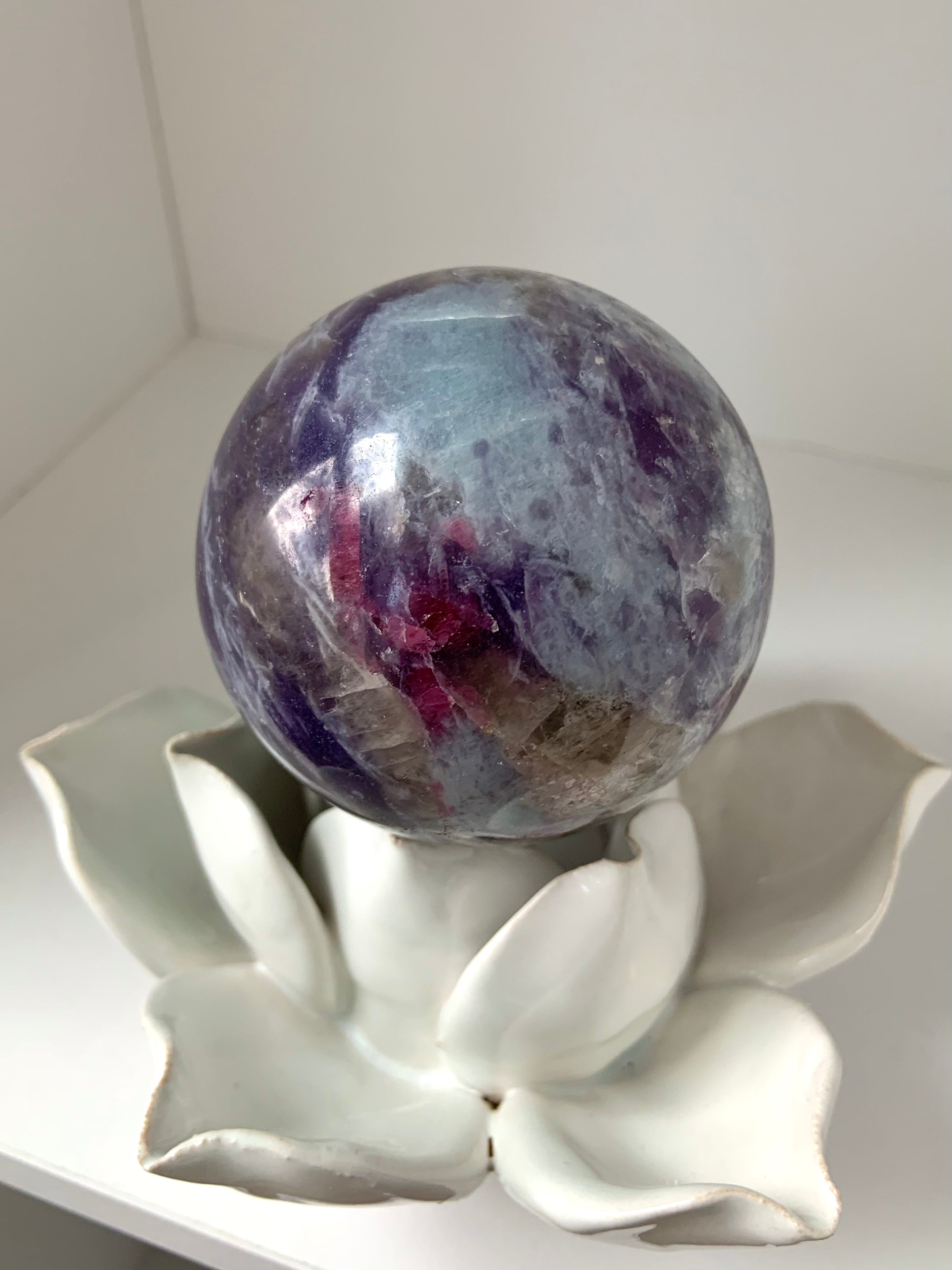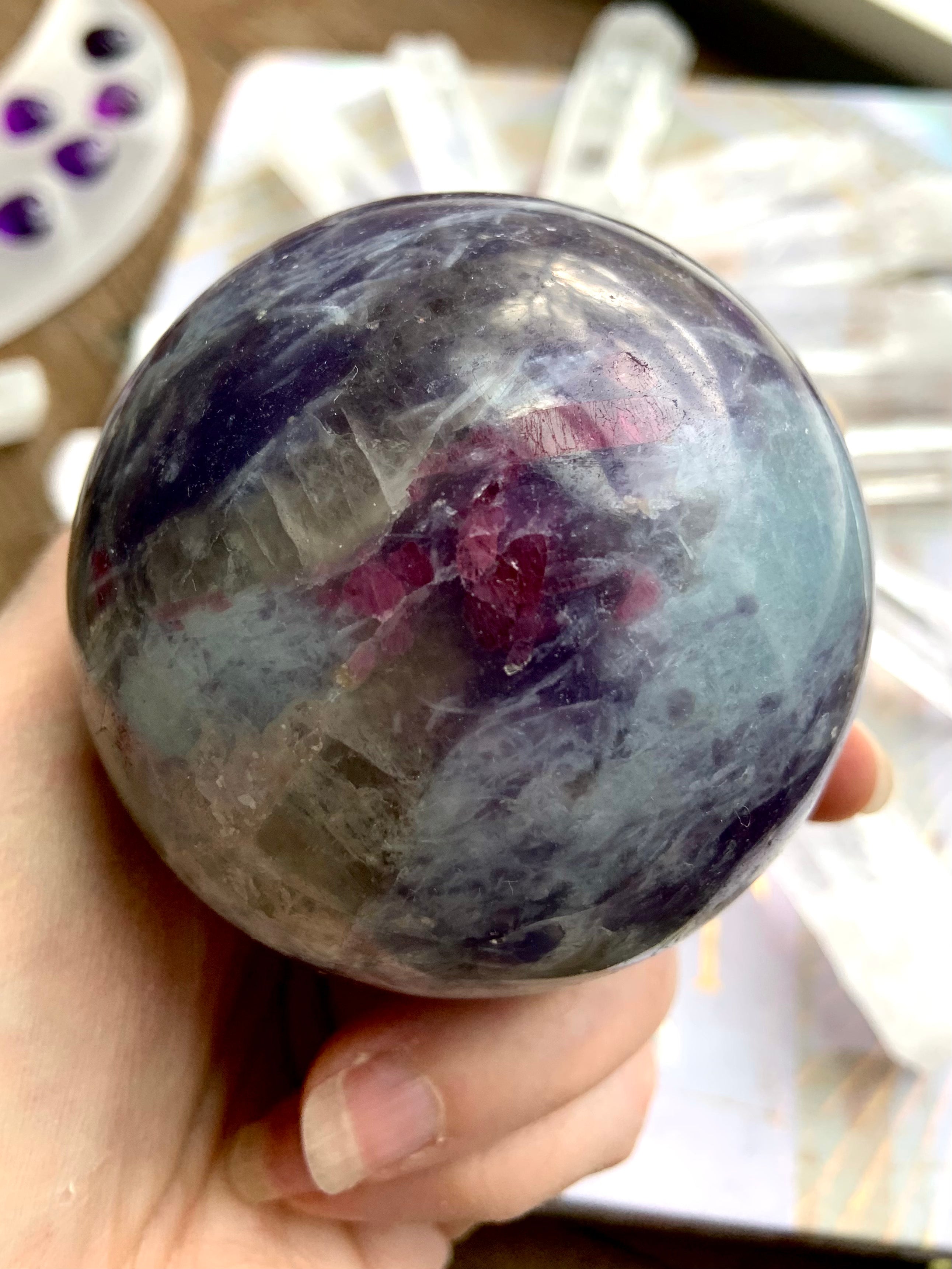 Unicorn Stone is a naturally occurring igneous pegmatite composed of Pink Tourmaline, Purple Lepidolite, Smokey Quartz, and Cleavelandite—each contributing to its nurturing, healing energy and gentle metaphysical benefits.