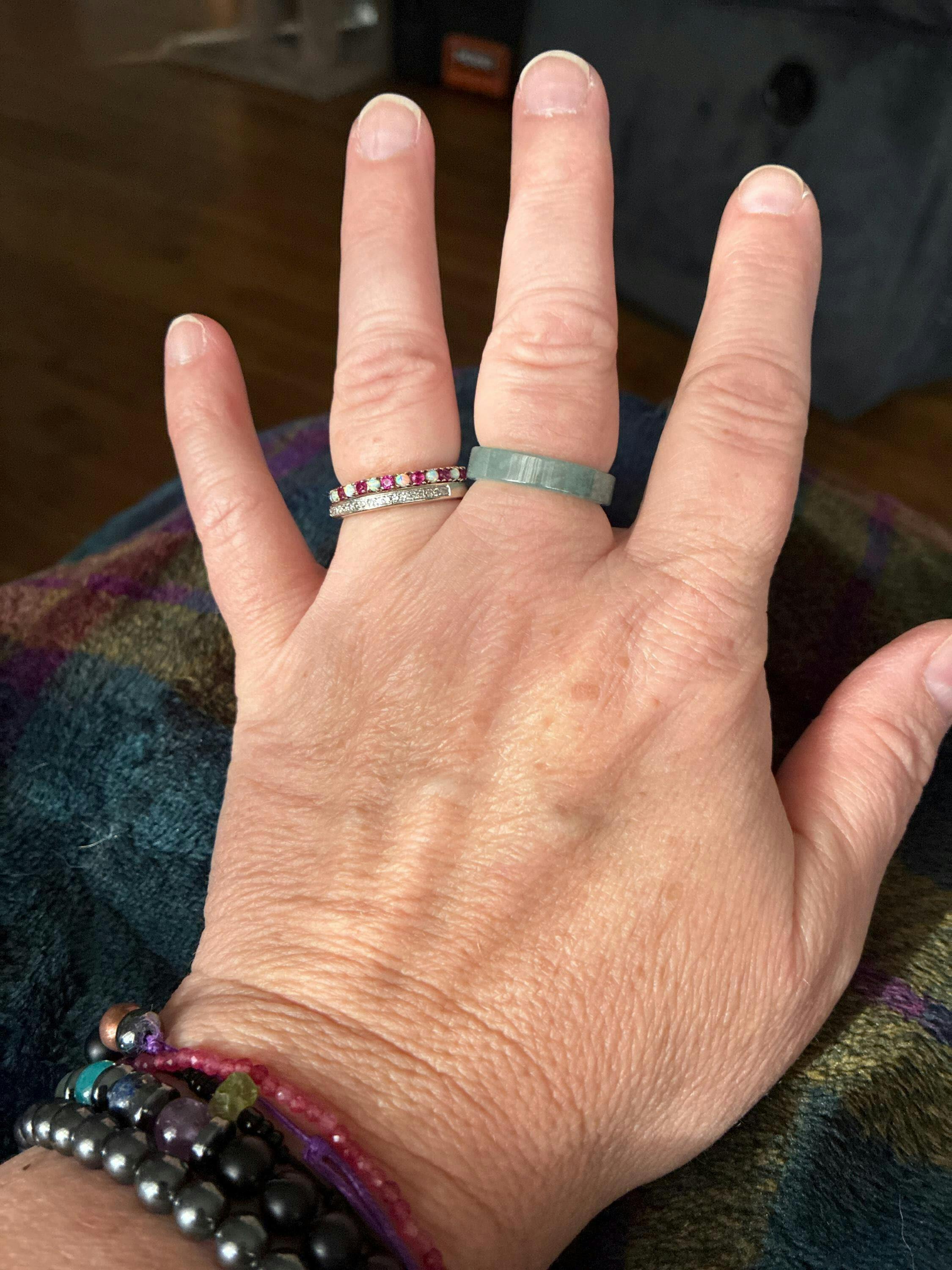 • Each ring is one of a kind with unique variations in color hue, clarity + pattern