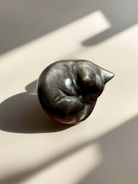 These tiny Silver Sheen Obsidian Cat Carvings are carved from natural sheen obsidian + polished to a glossy shine to highlight the silver flash. Now offered in 2 miniature sizes.