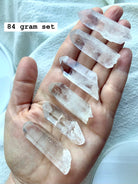 The quartz points are sorted into cohesive sets of 6 based on size/shape, then sorted by their collective weight, so each set is unique. Bulk is a 1 oz random assortment of sizes + shapes. Some points are raw + imperfect, others are semi-polished, but the sets would be one or the other. Some are longer, thinner, some are chunkier nuggets + everywhere in between.