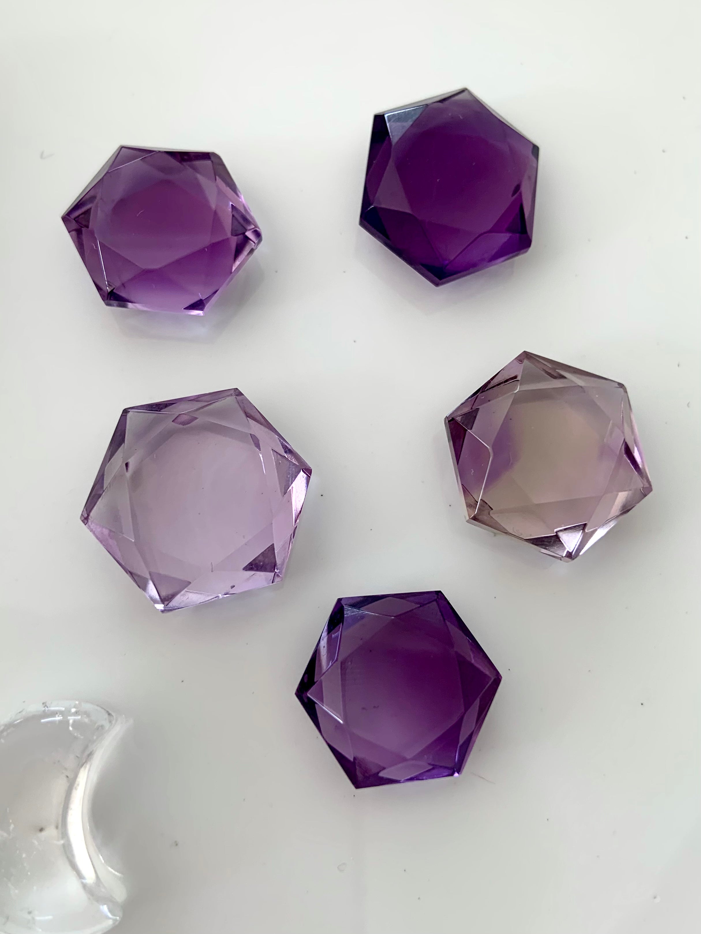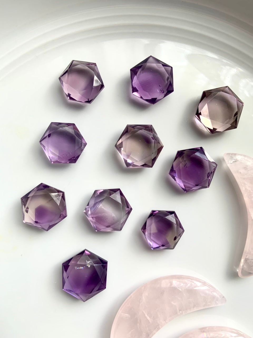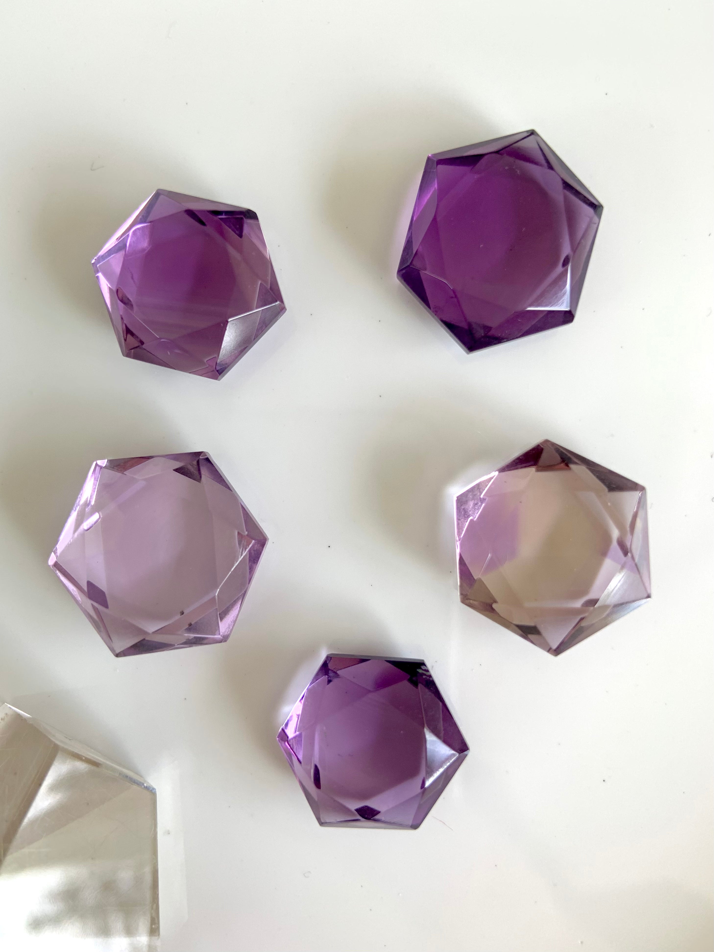 These Amethyst Hexagons, Amethyst Star of David, faceted gem shapes are just so beautiful + captivating to hold + play with their gem cut angles in the light.