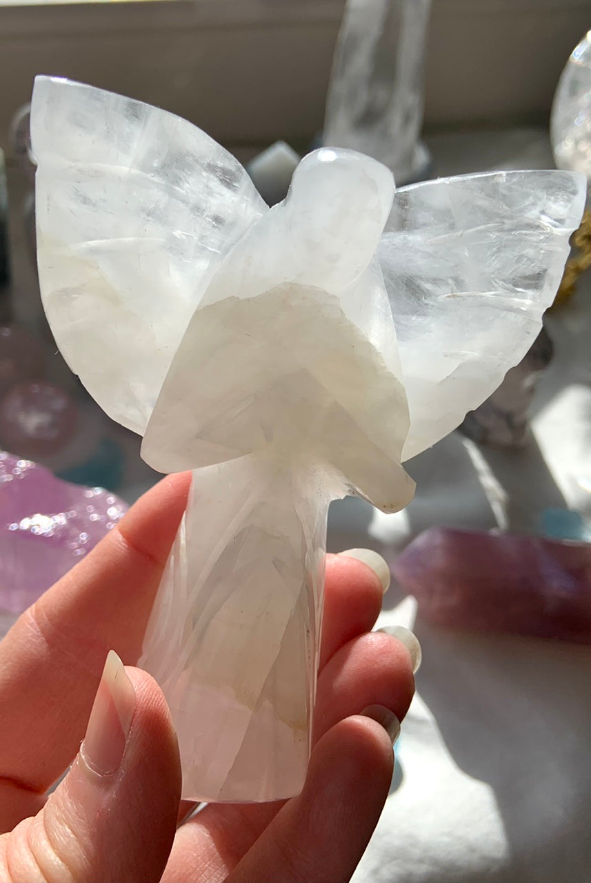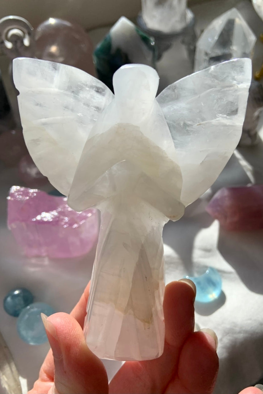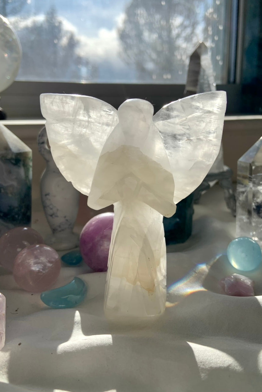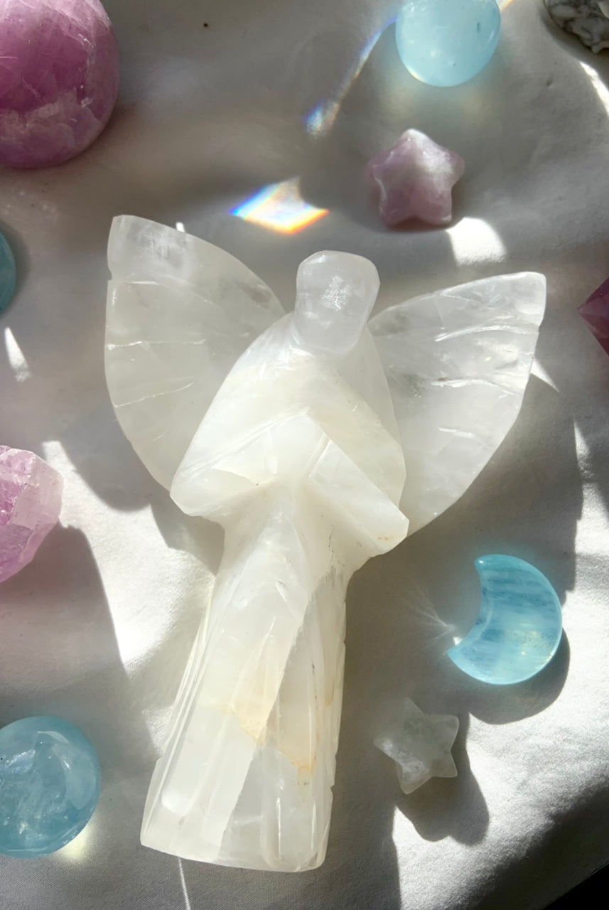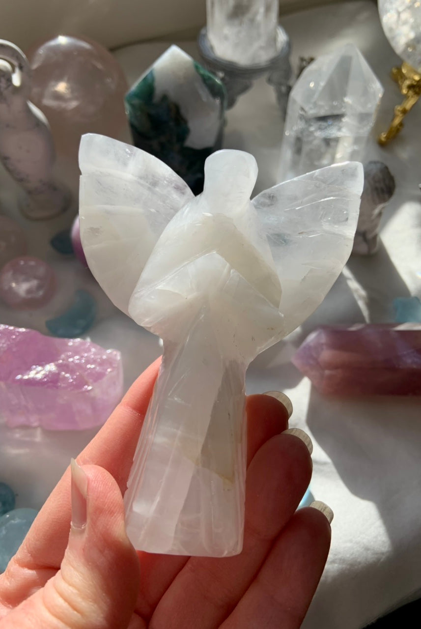 This curated collection includes pocket-size companions, meditation stones, altar guardians, and one-of-a-kind statement pieces. Whether gifted as a spiritual keepsake or used in ritual and remembrance, crystal angels offer comfort, presence, and a connection to the celestial realms.