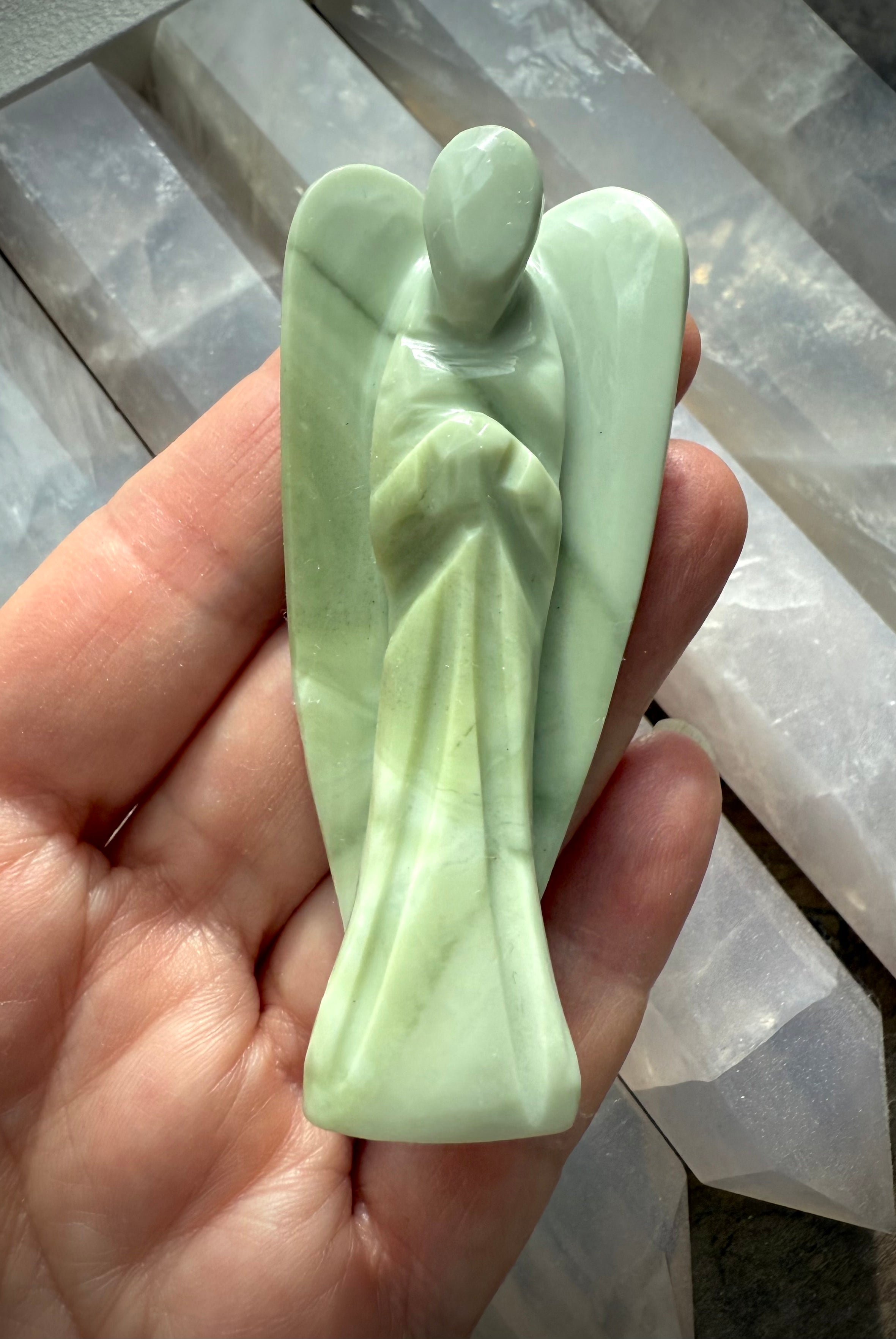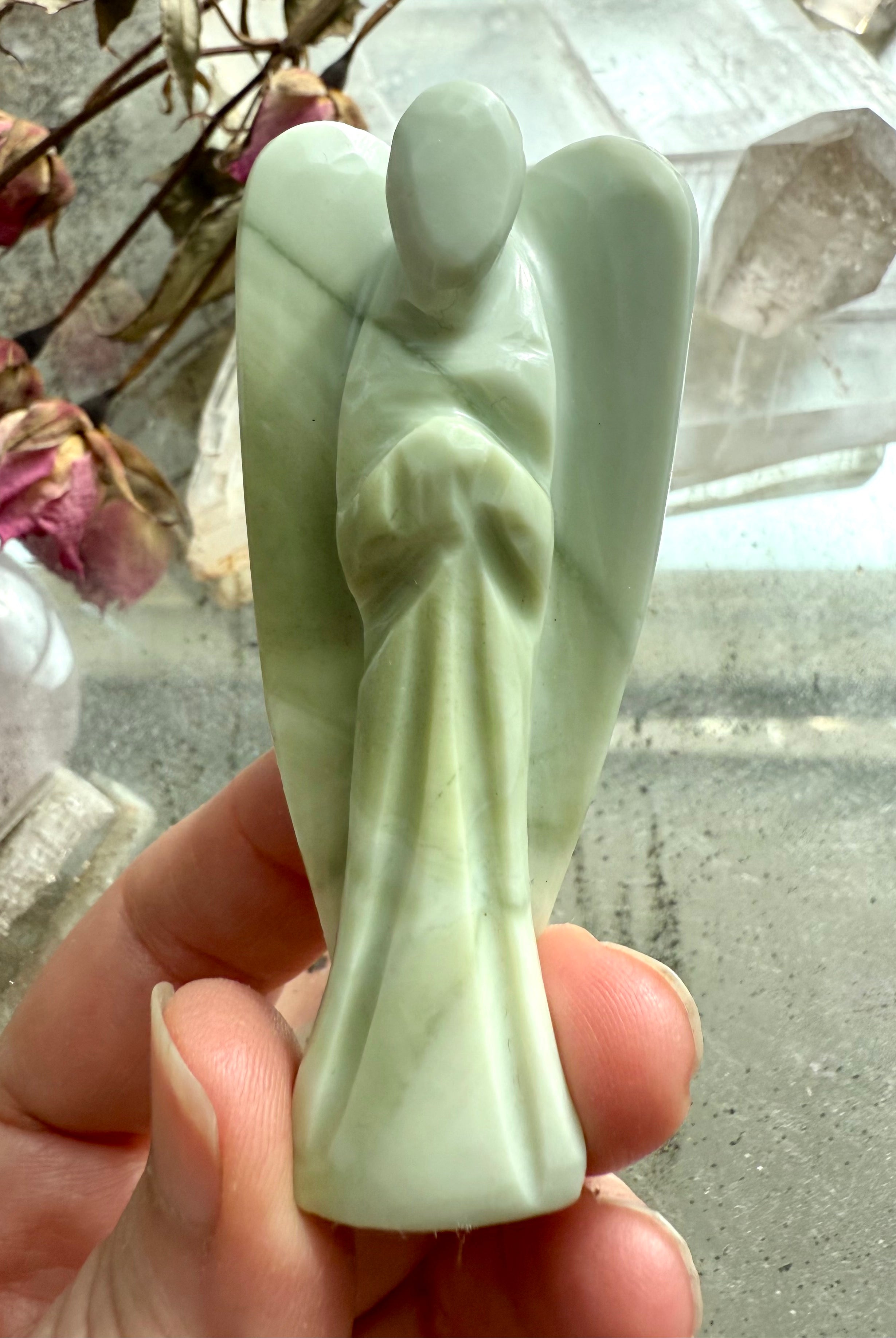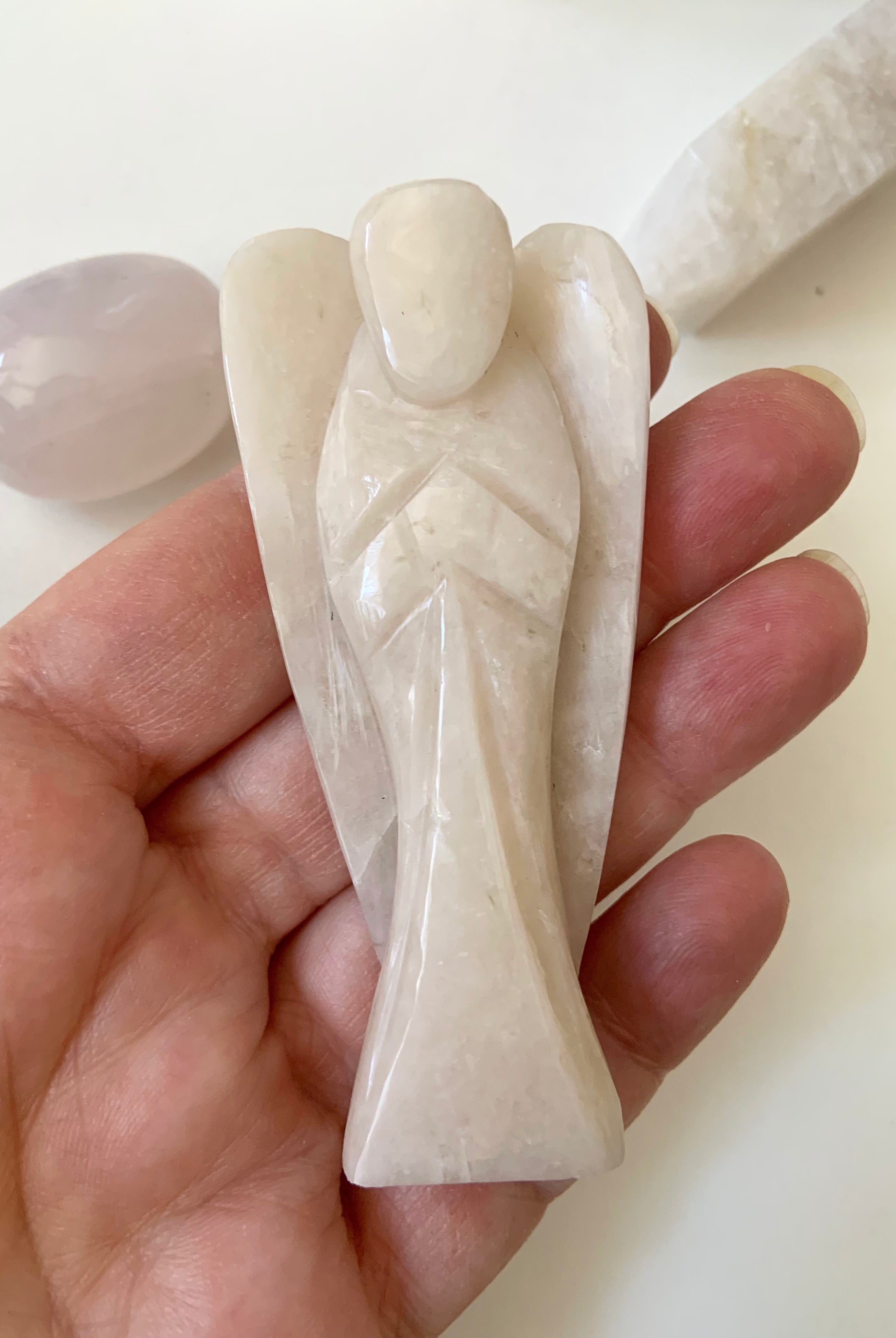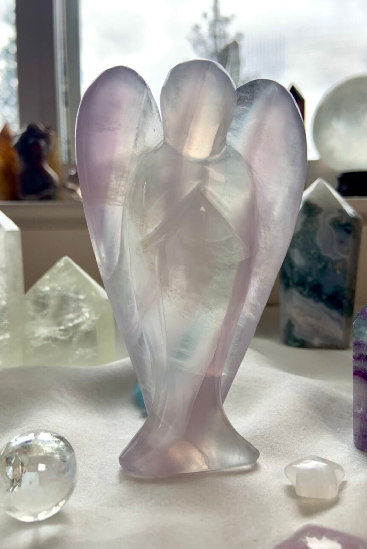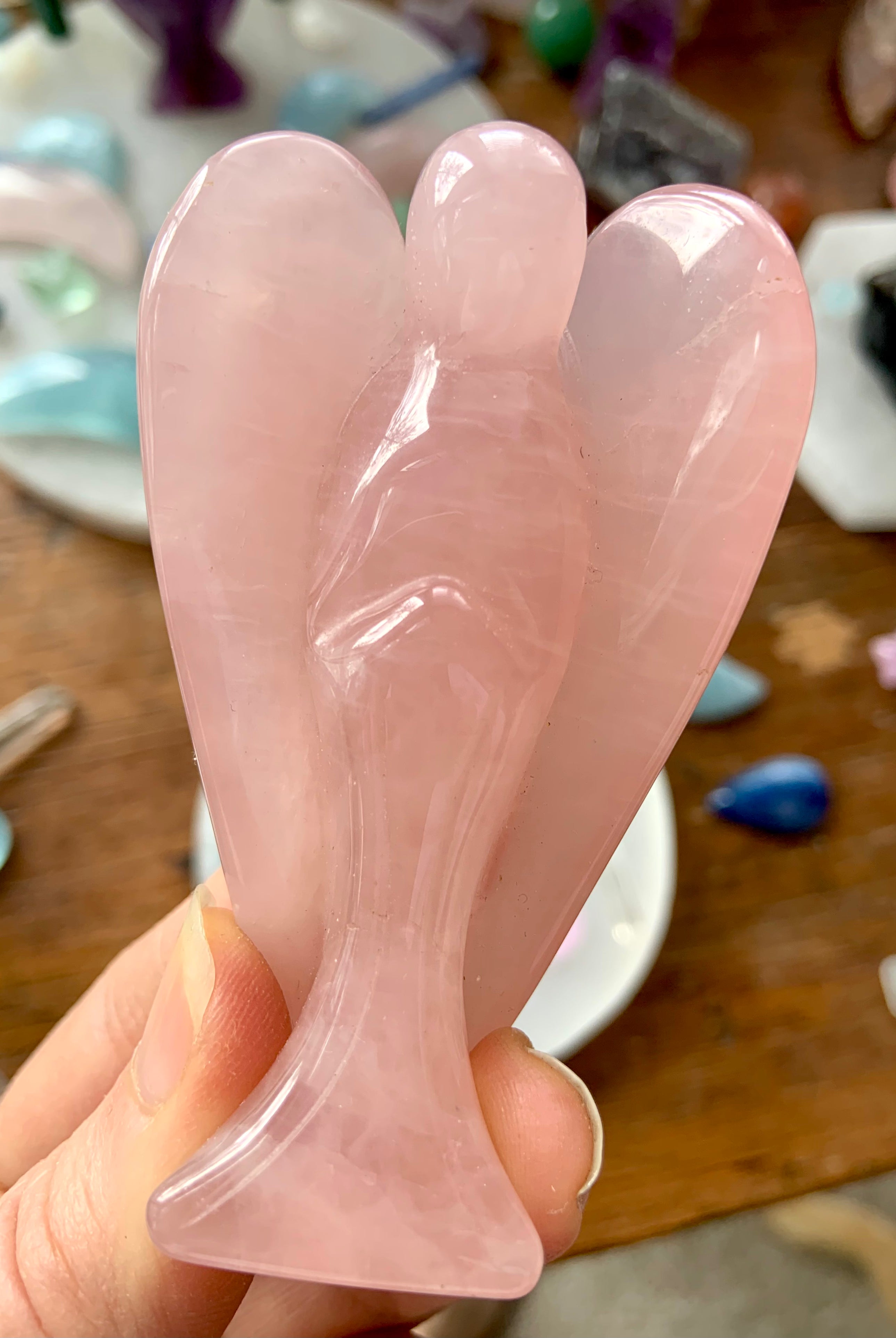 This curated collection includes pocket-size companions, meditation stones, altar guardians, and one-of-a-kind statement pieces. Whether gifted as a spiritual keepsake or used in ritual and remembrance, crystal angels offer comfort, presence, and a connection to the celestial realms.