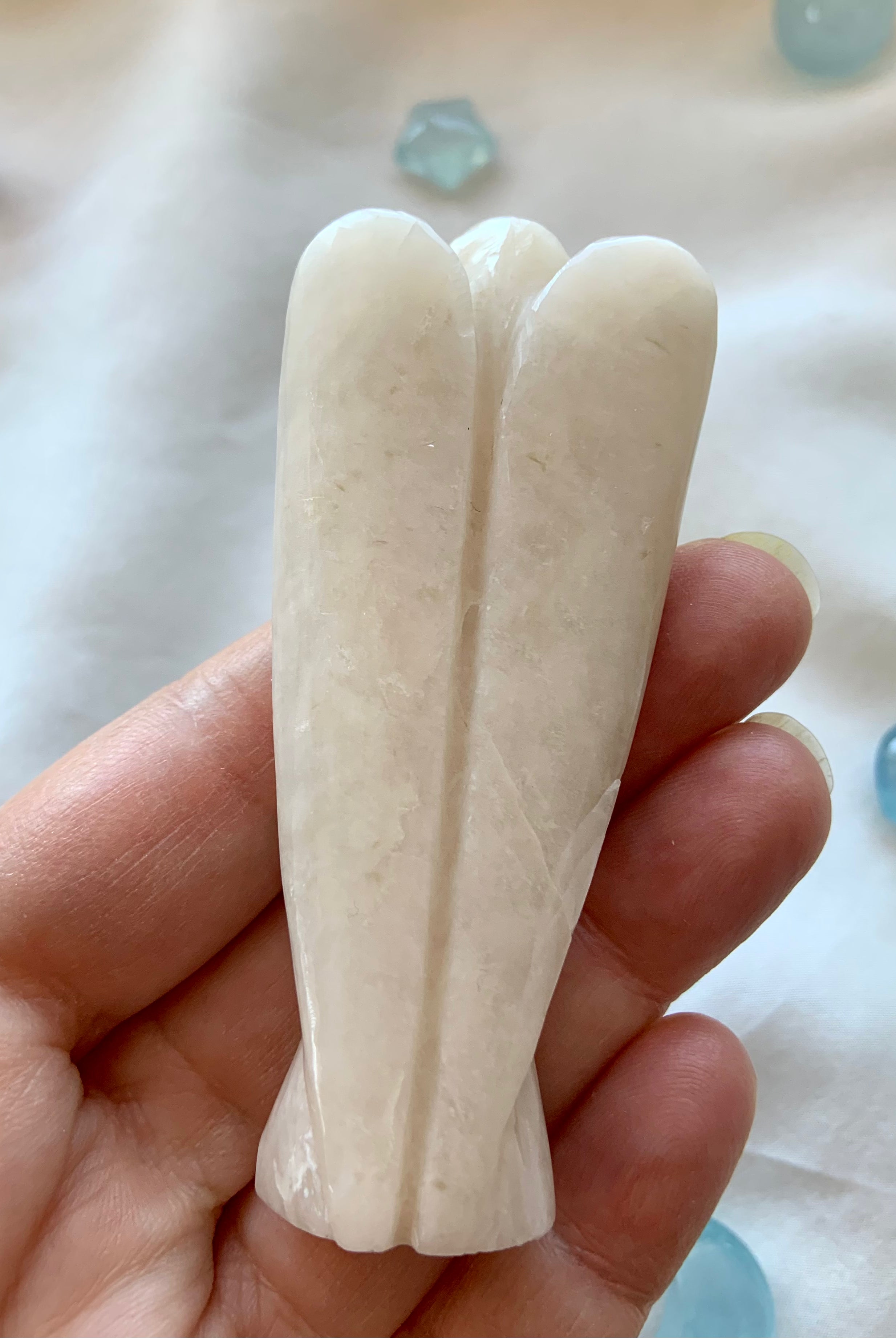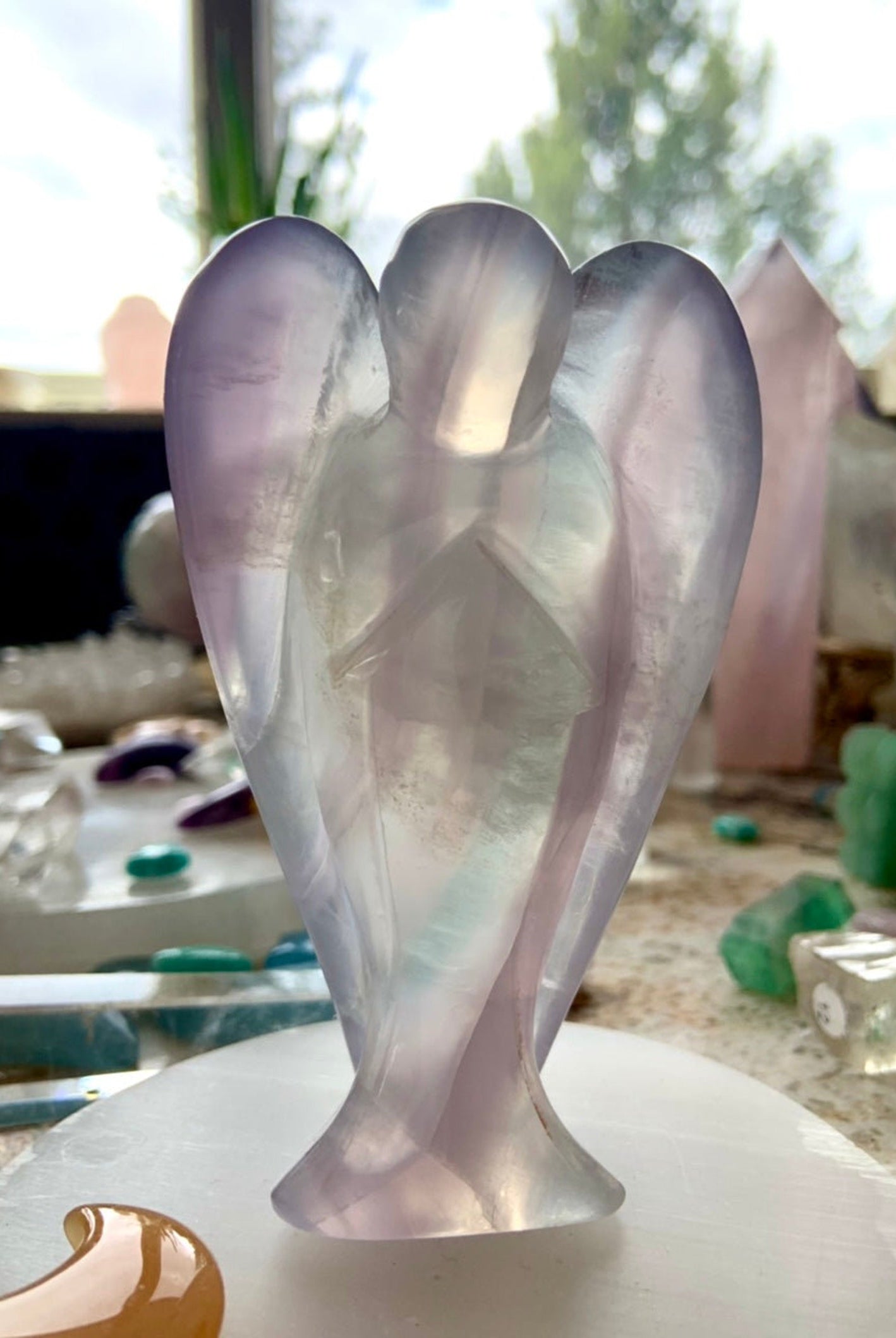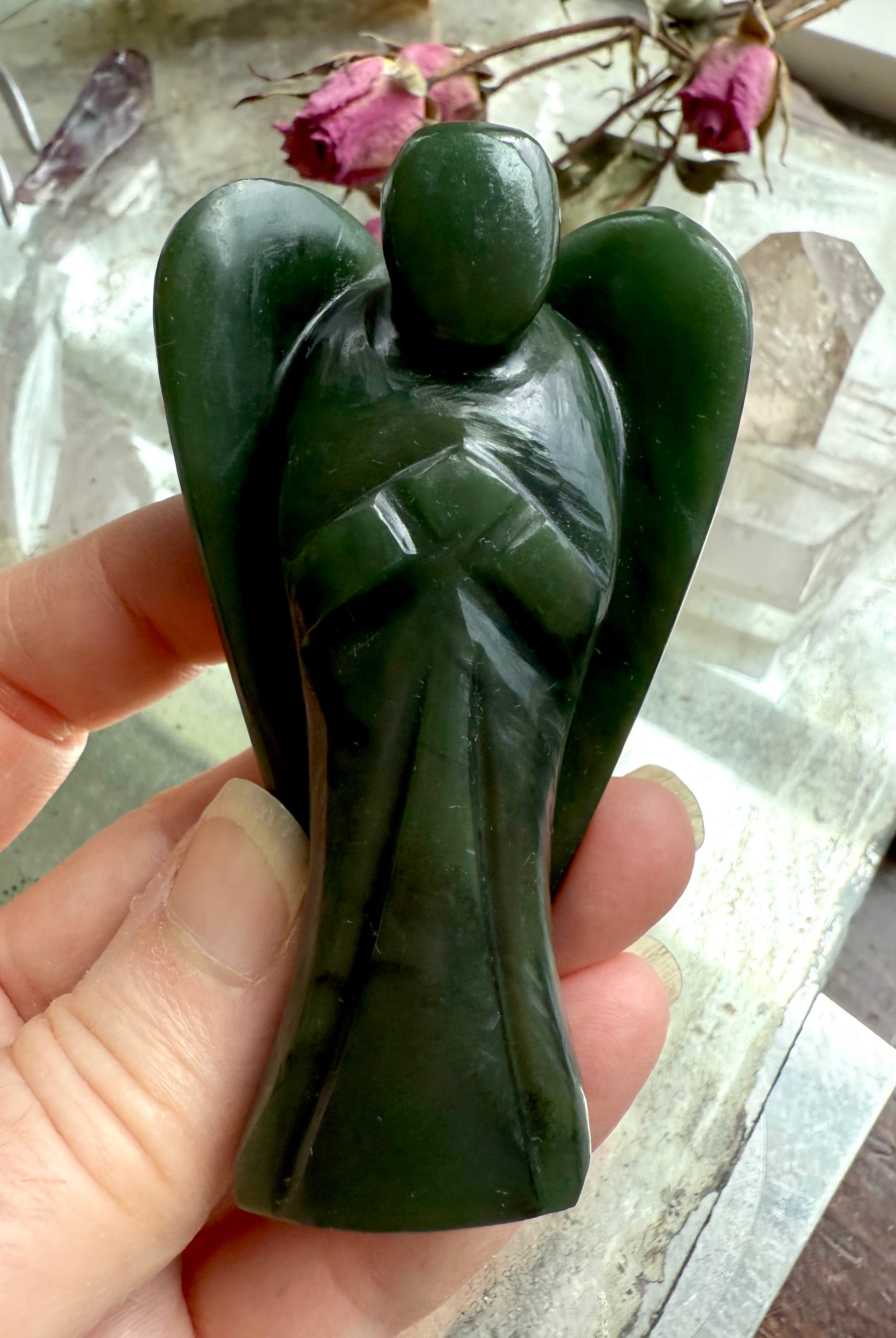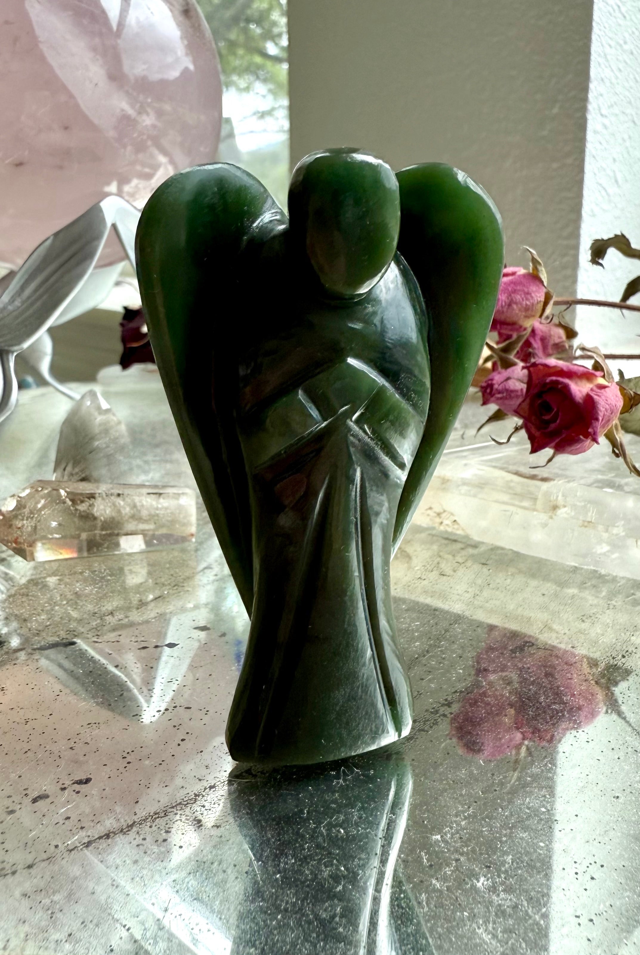 This curated collection includes pocket-size companions, meditation stones, altar guardians, and one-of-a-kind statement pieces. Whether gifted as a spiritual keepsake or used in ritual and remembrance, crystal angels offer comfort, presence, and a connection to the celestial realms.