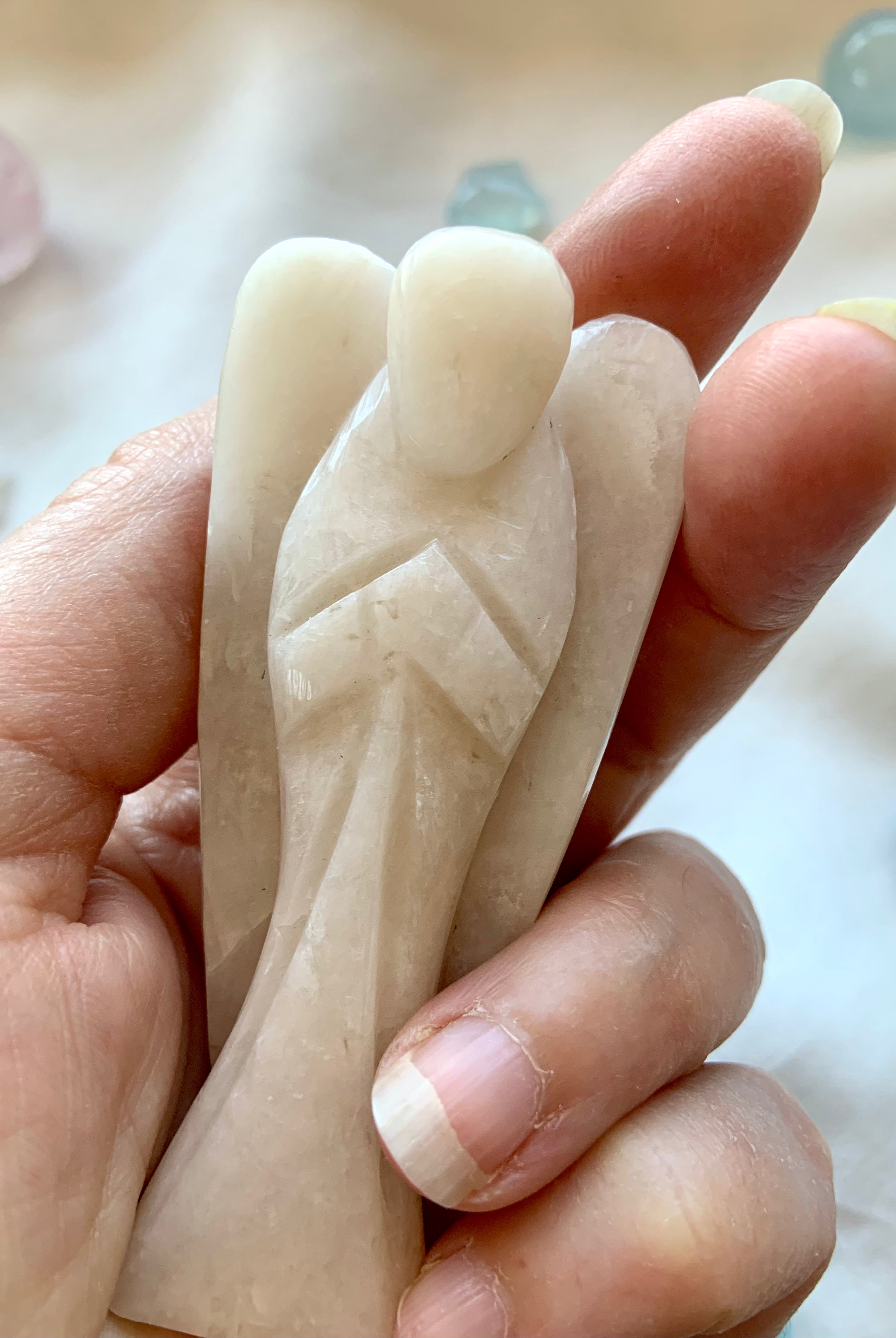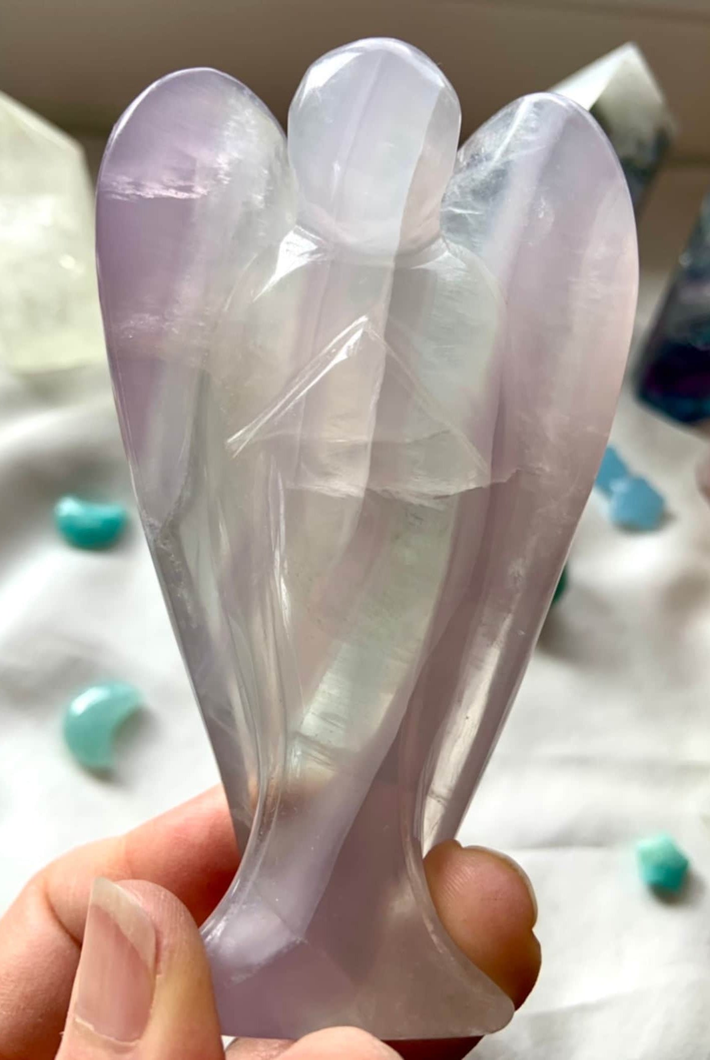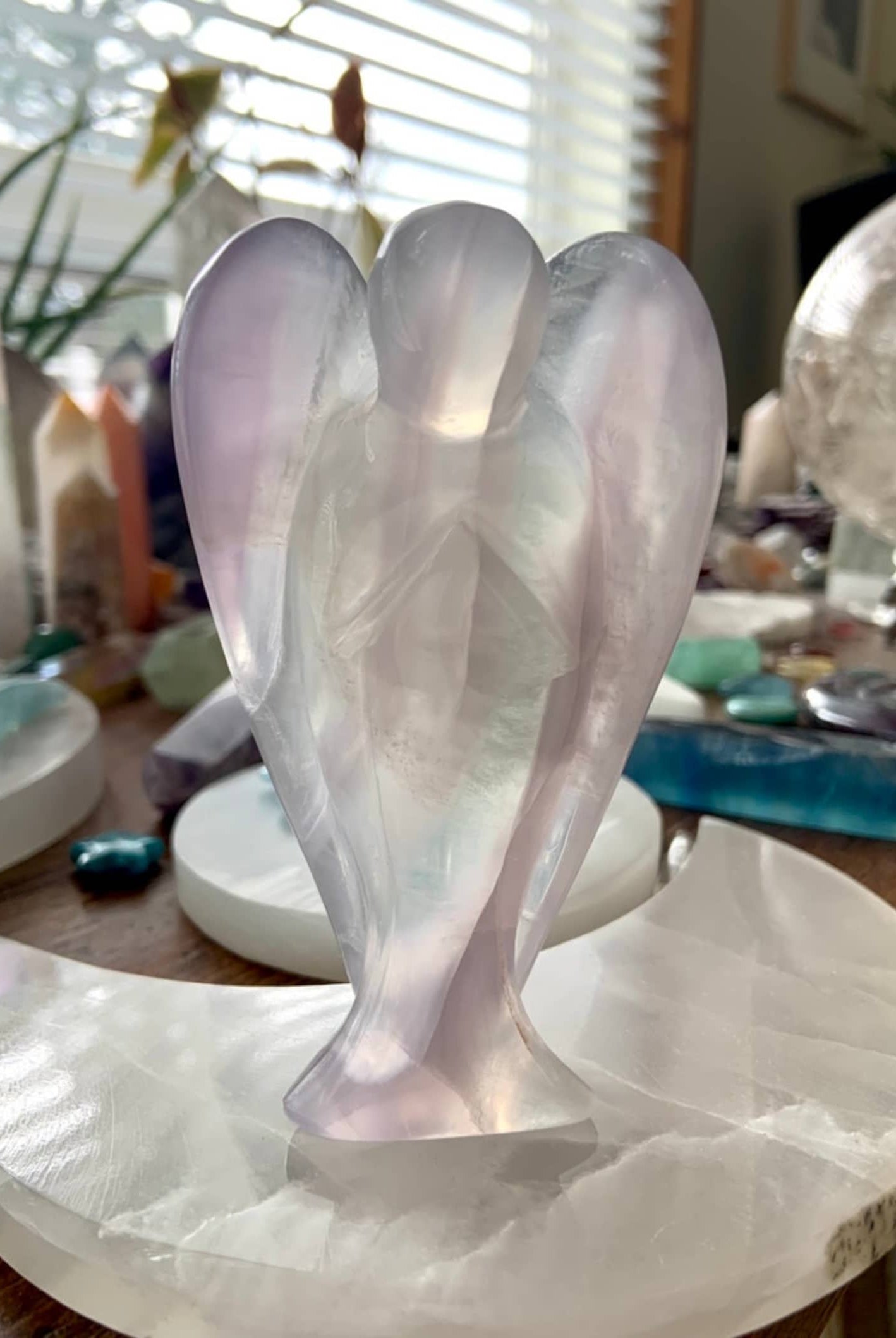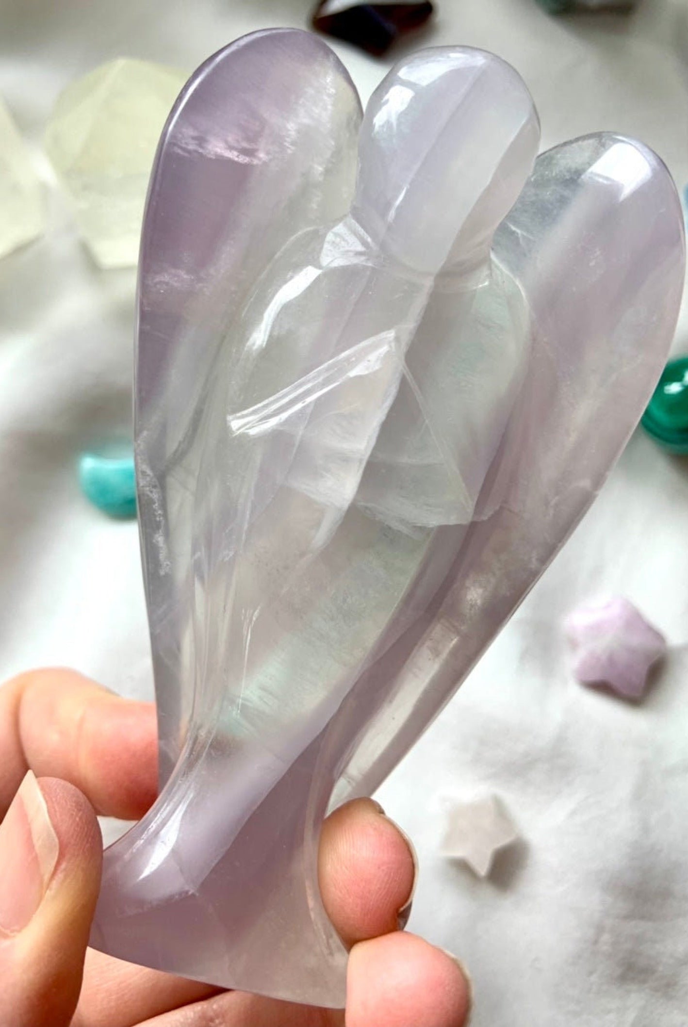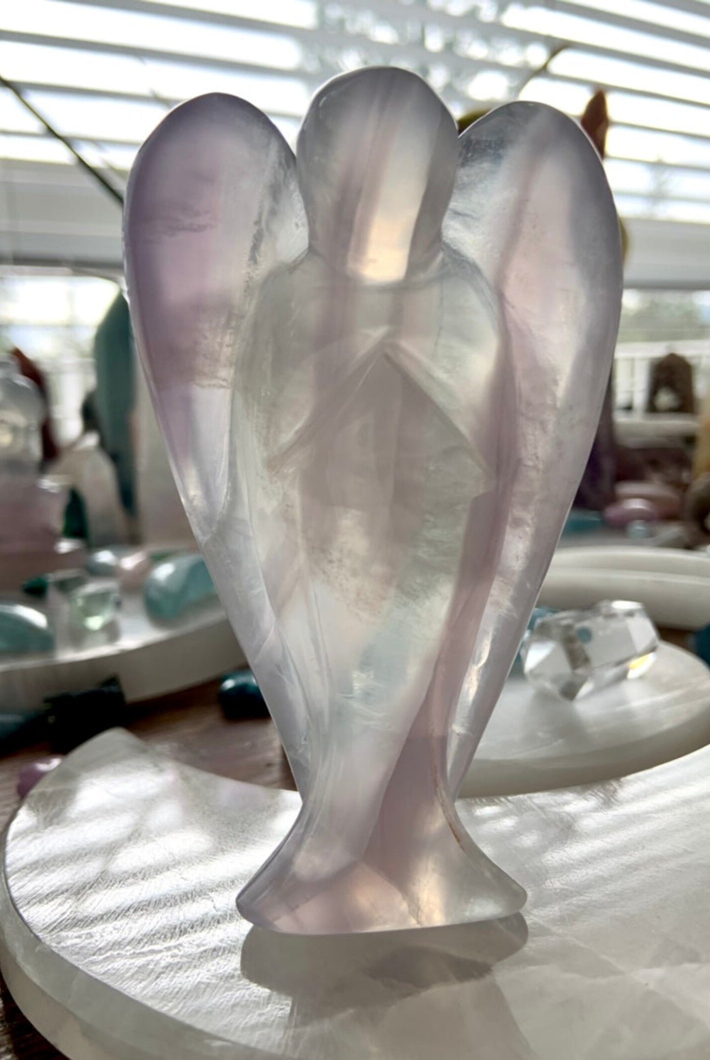 This curated collection includes pocket-size companions, meditation stones, altar guardians, and one-of-a-kind statement pieces. Whether gifted as a spiritual keepsake or used in ritual and remembrance, crystal angels offer comfort, presence, and a connection to the celestial realms.