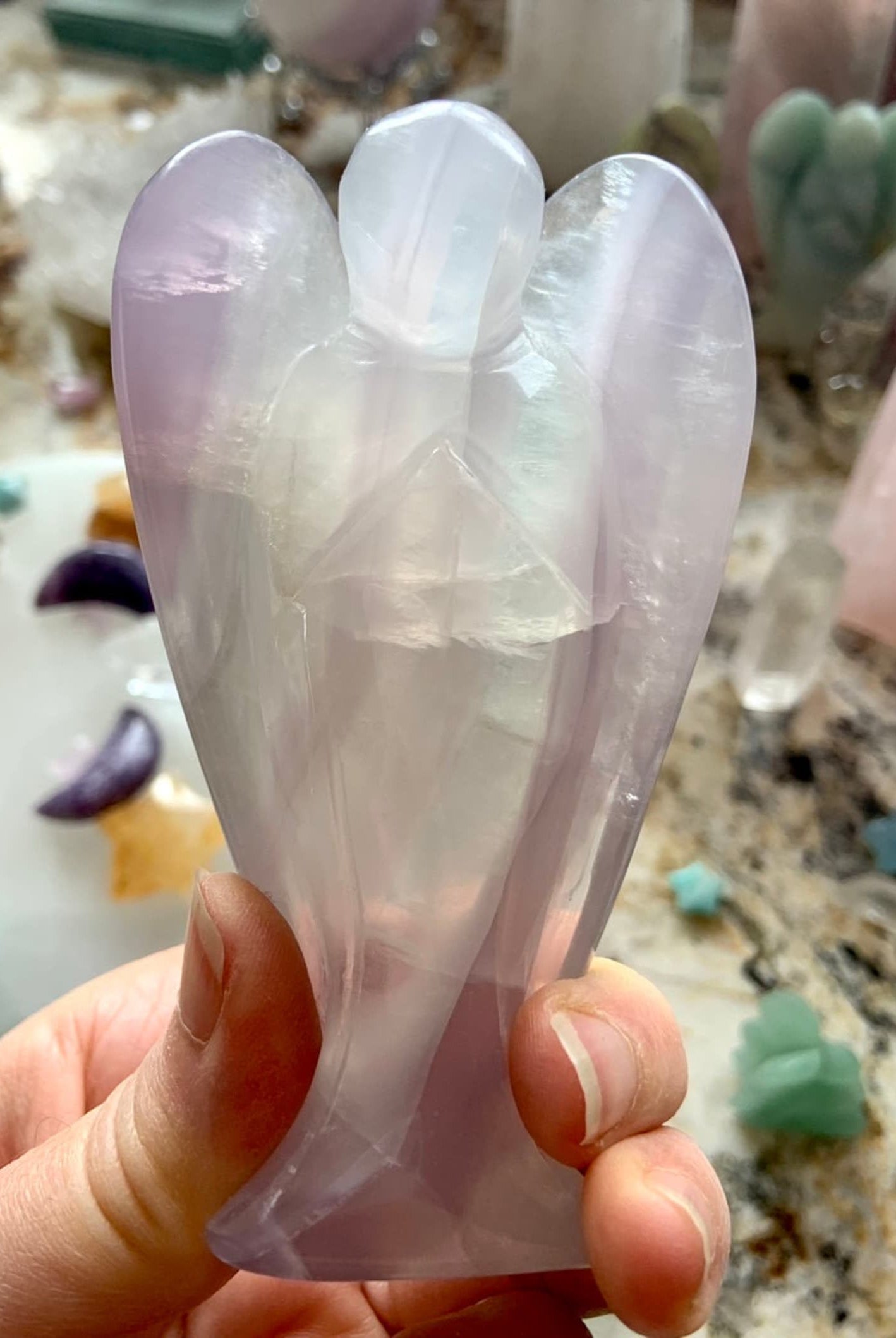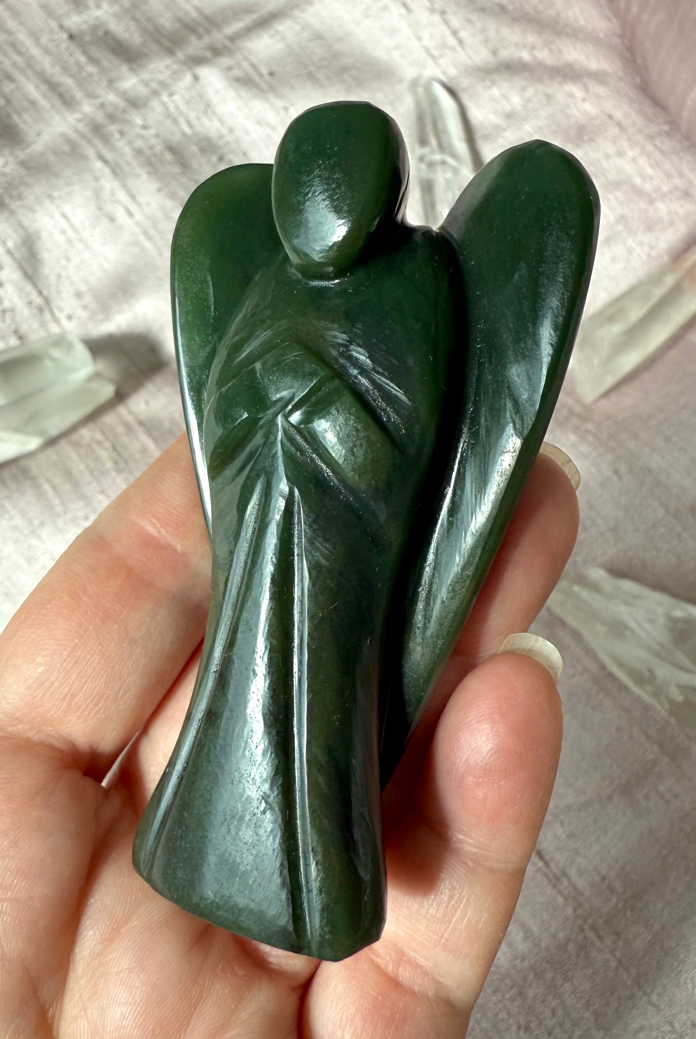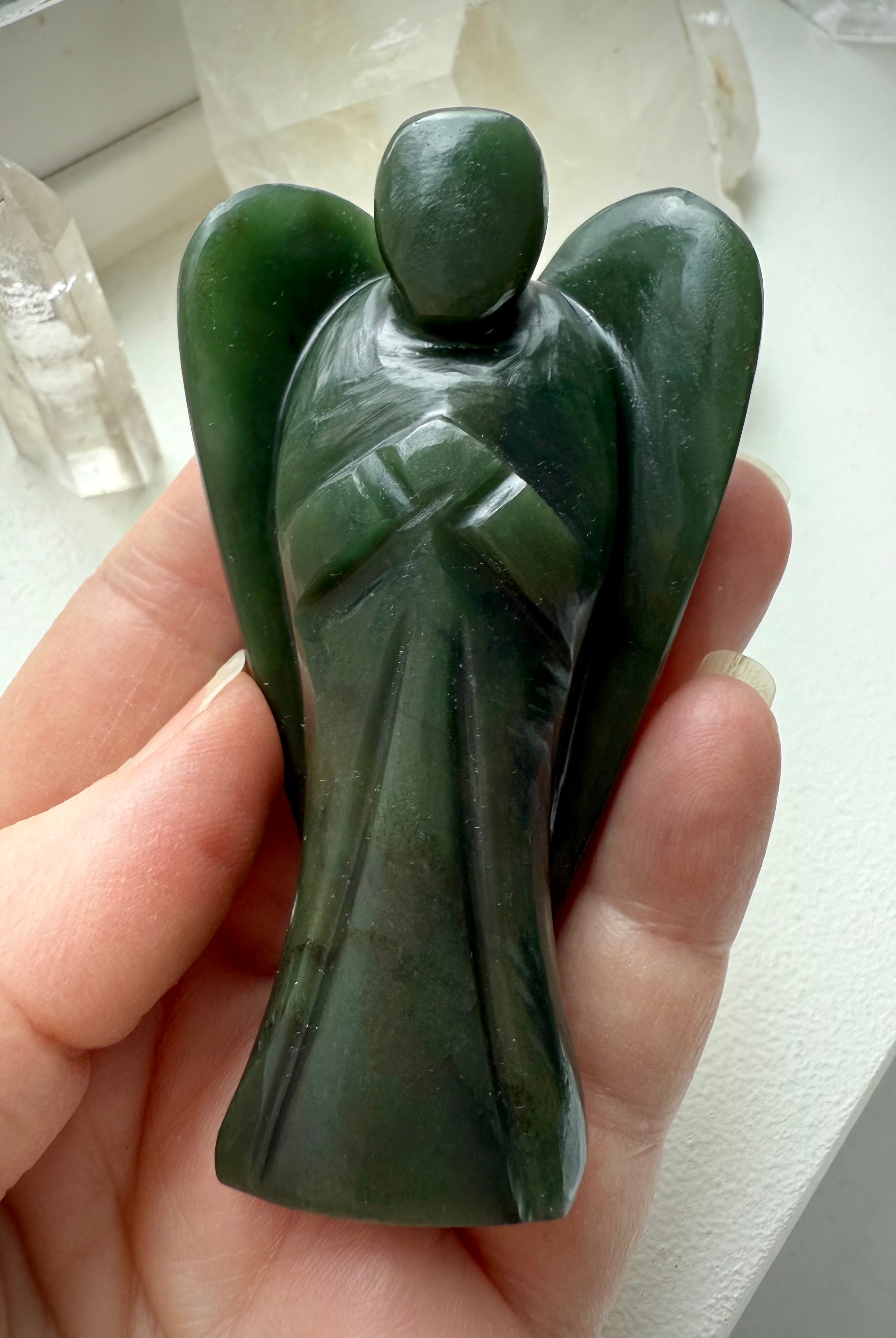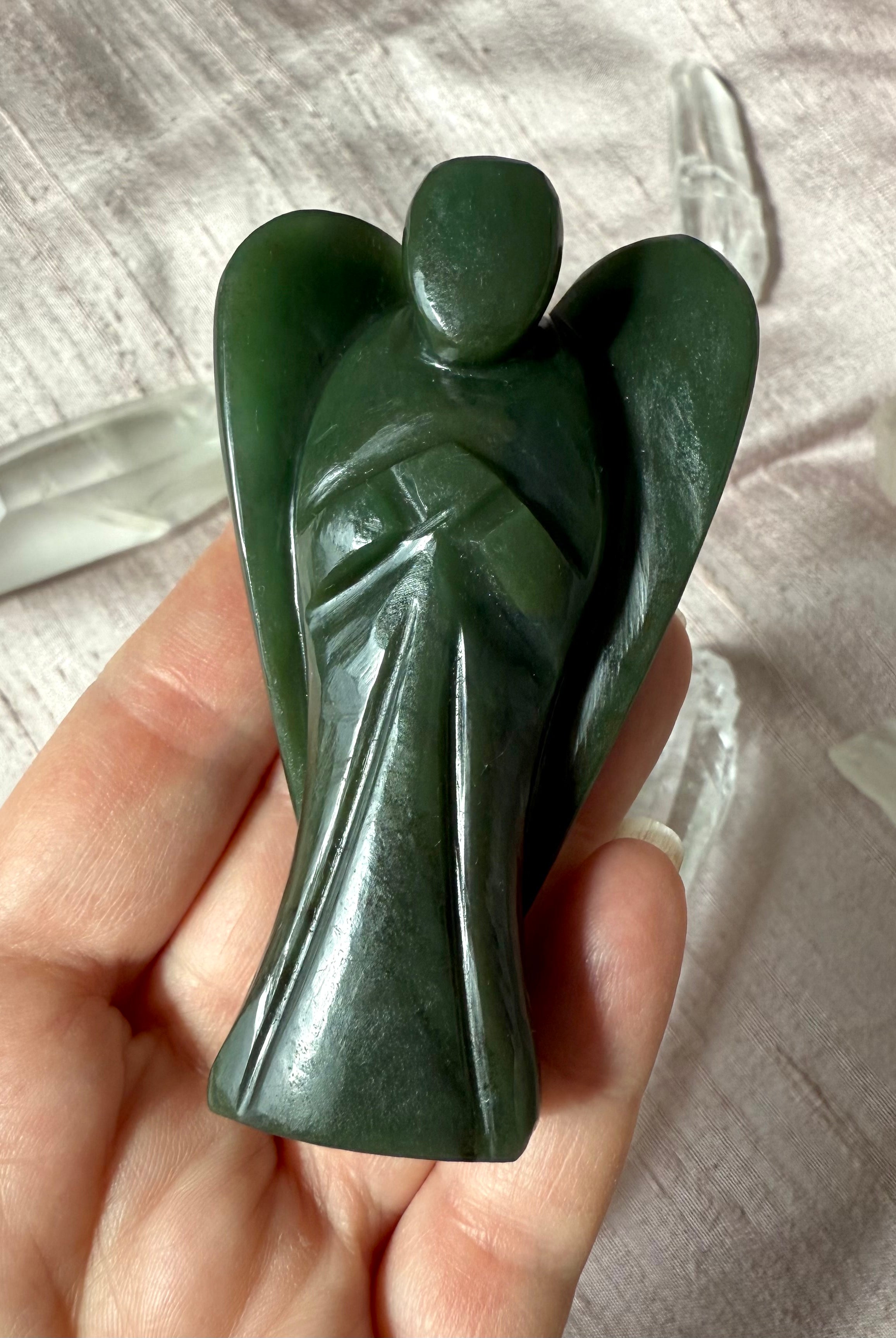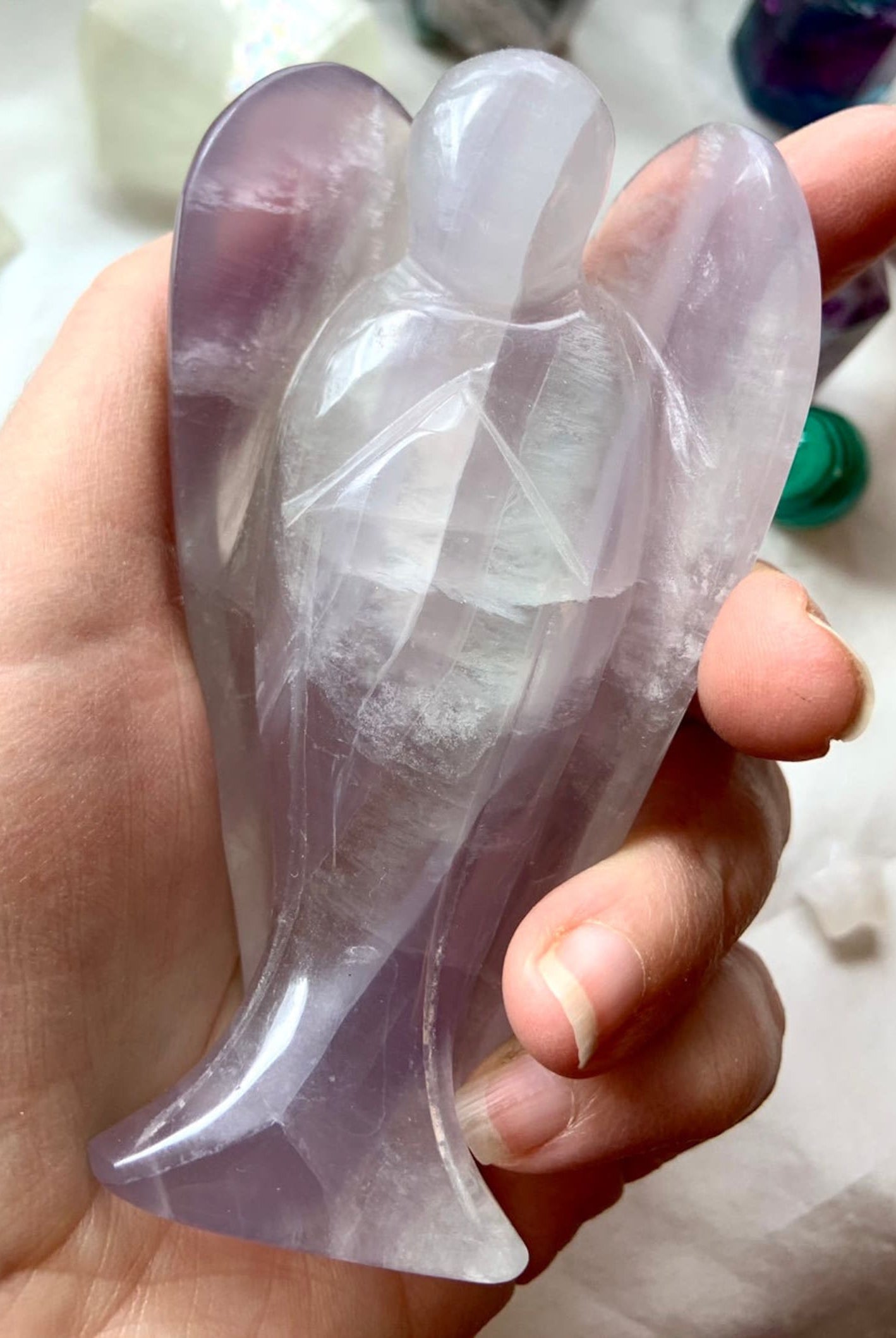 This curated collection includes pocket-size companions, meditation stones, altar guardians, and one-of-a-kind statement pieces. Whether gifted as a spiritual keepsake or used in ritual and remembrance, crystal angels offer comfort, presence, and a connection to the celestial realms.