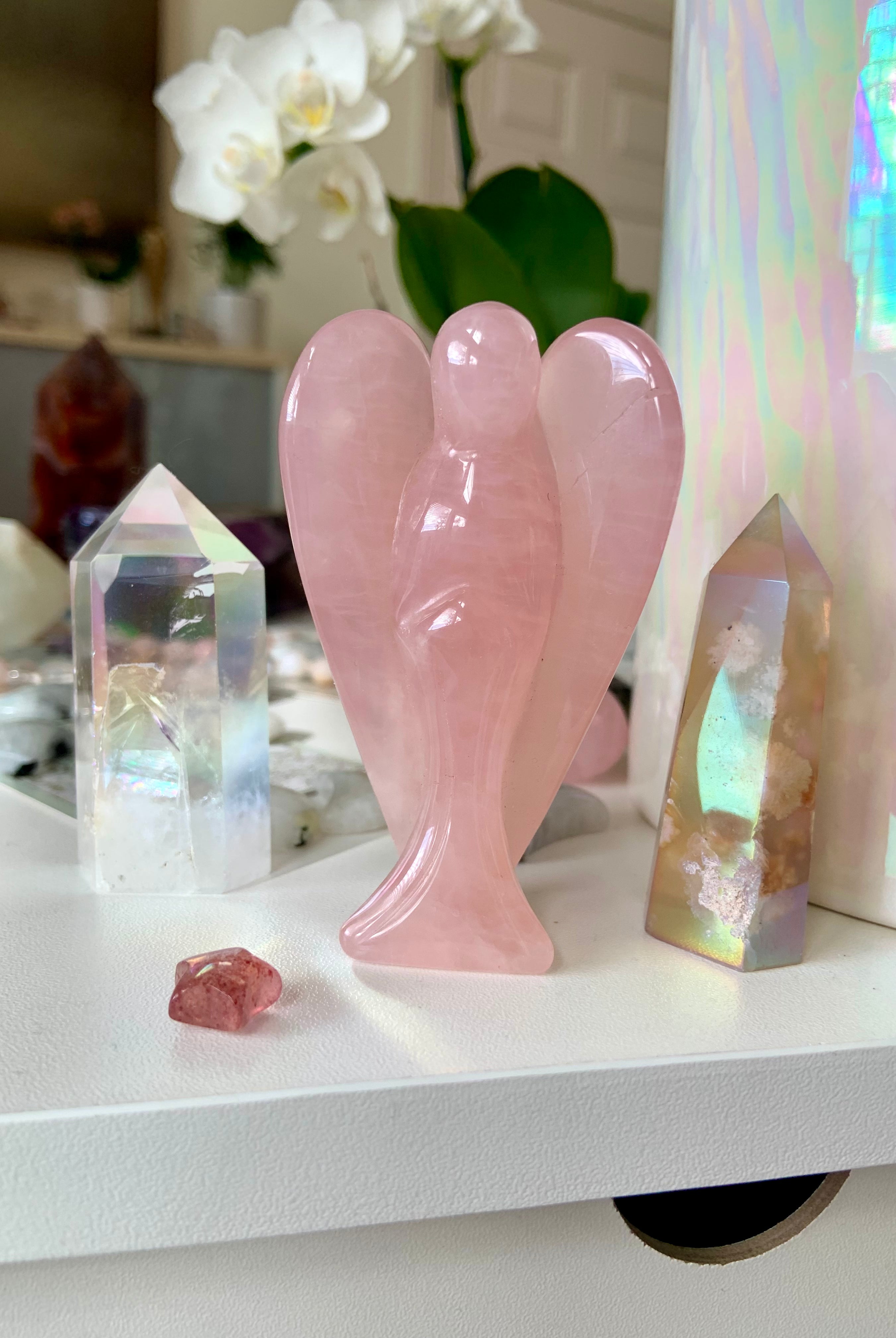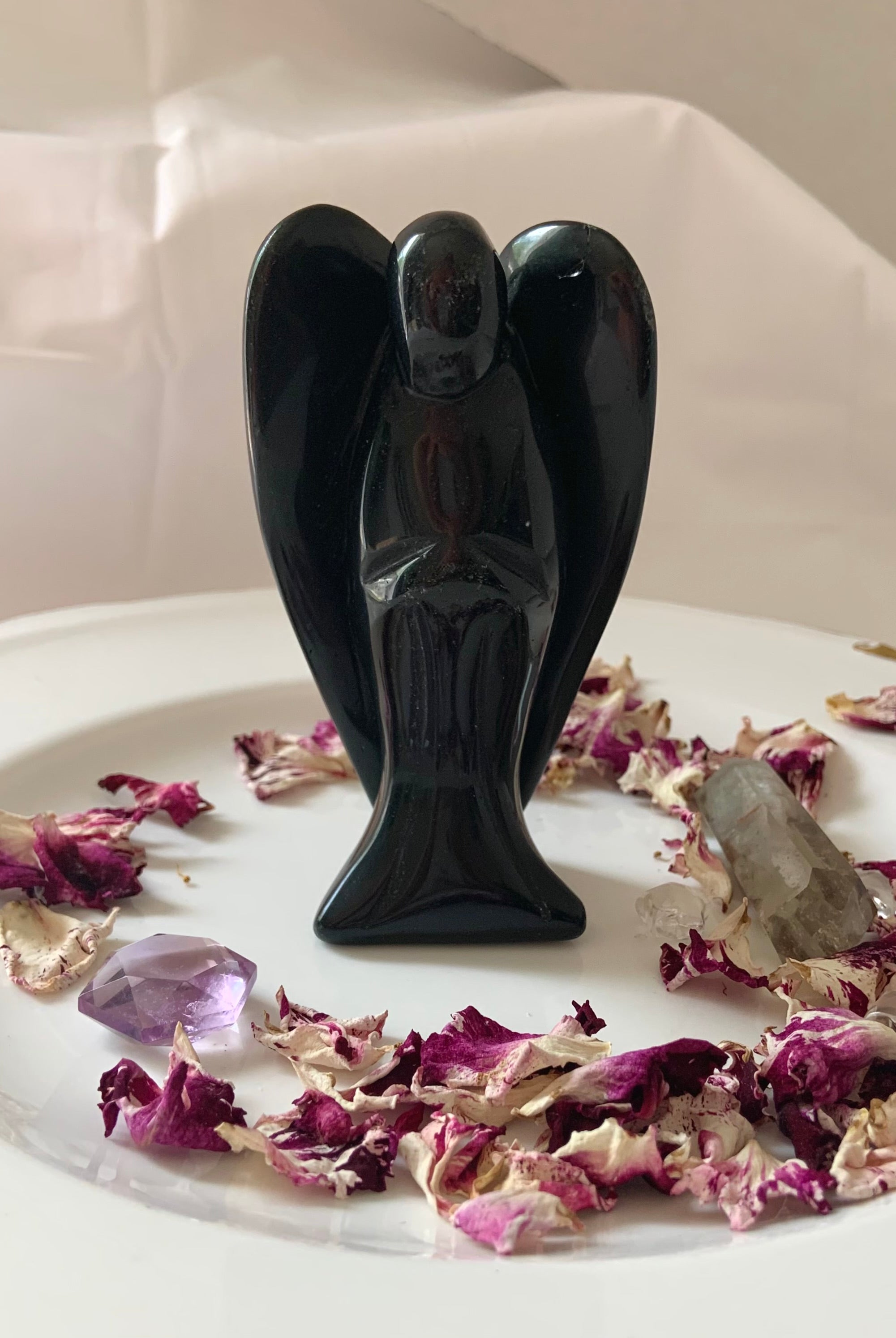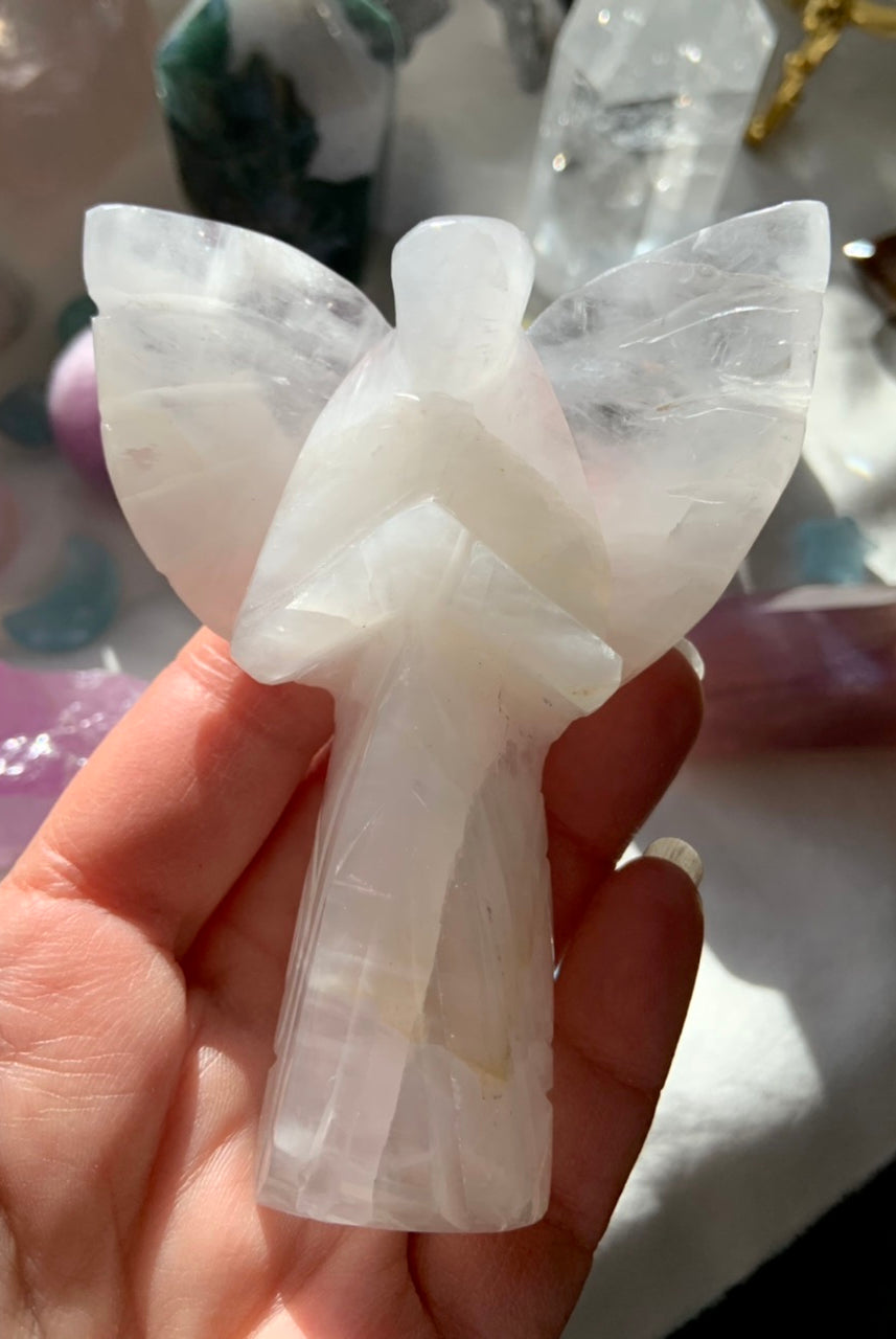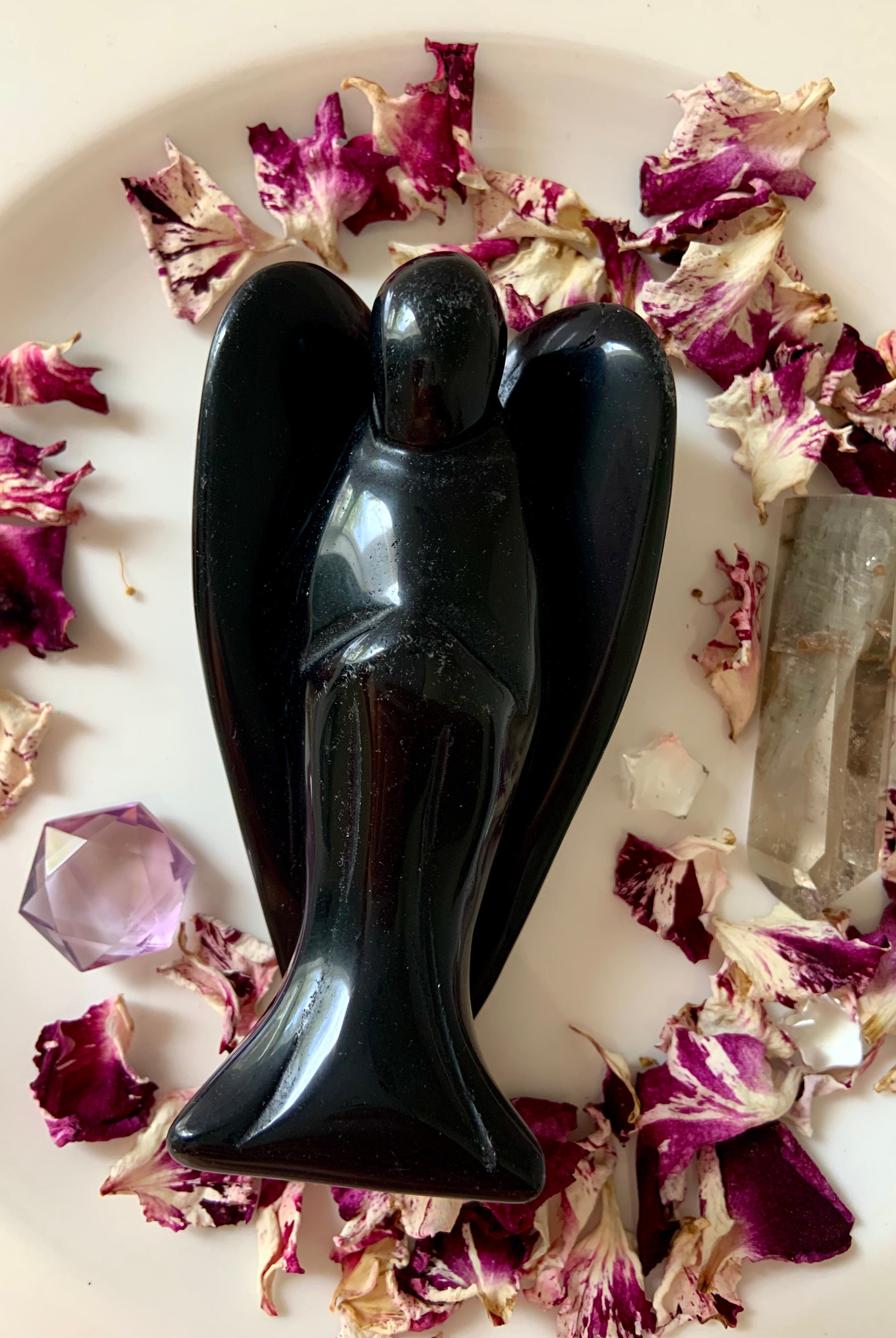 Call in divine support with our Crystal Angel carvings — sacred symbols of healing, protection, and spiritual light. These ethereal figures are carved from high-vibrational stones like Rose Quartz, Amethyst, Moonstone, Clear Quartz, and Black Obsidian, each radiating gentle guidance and peace.