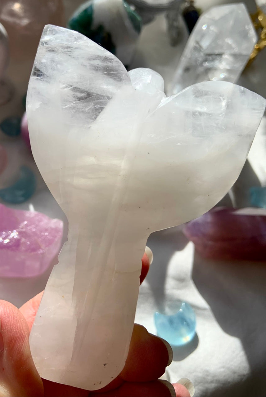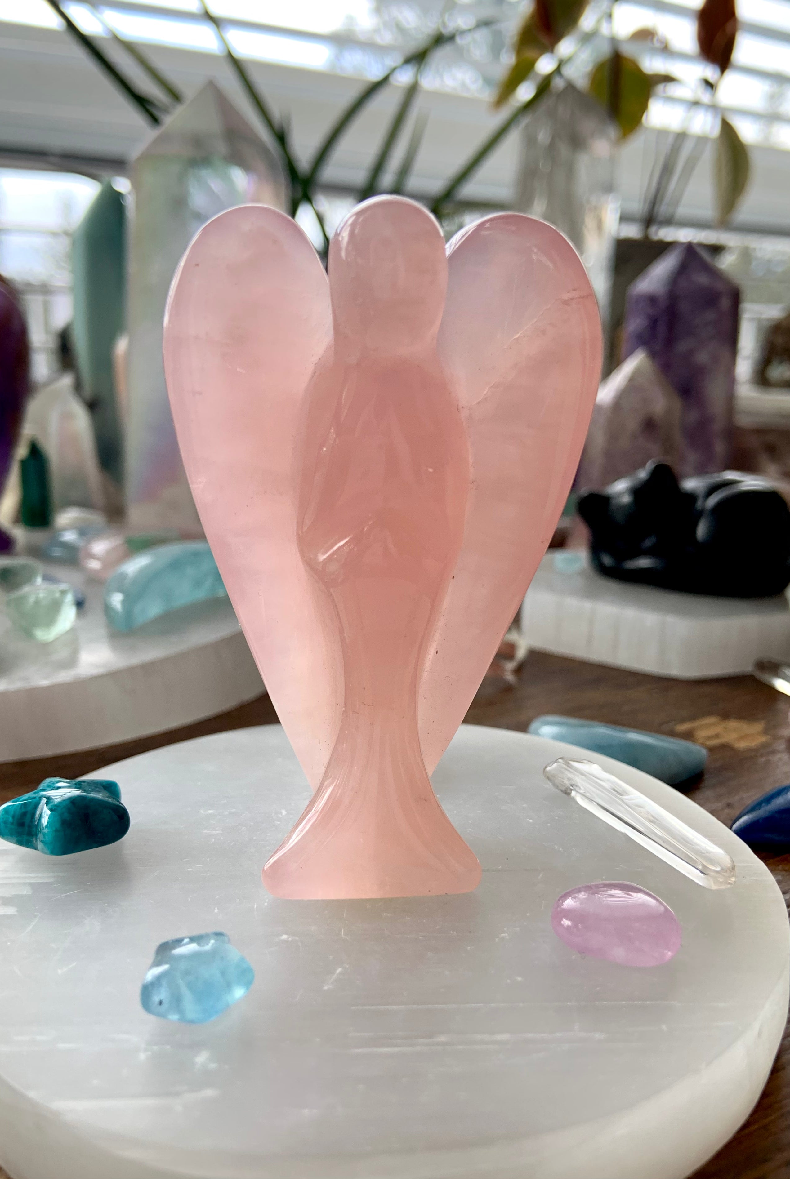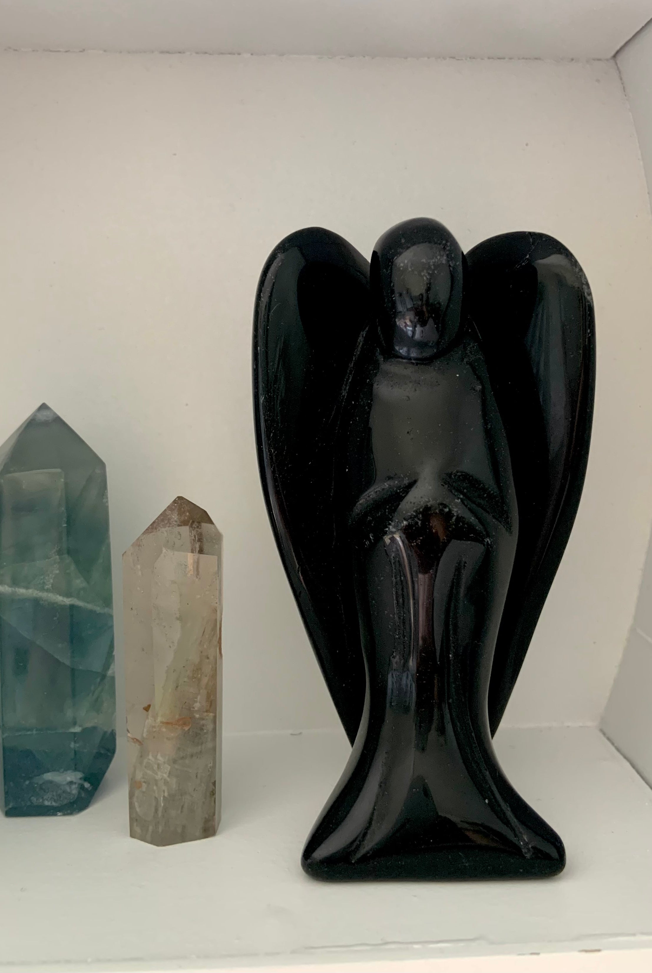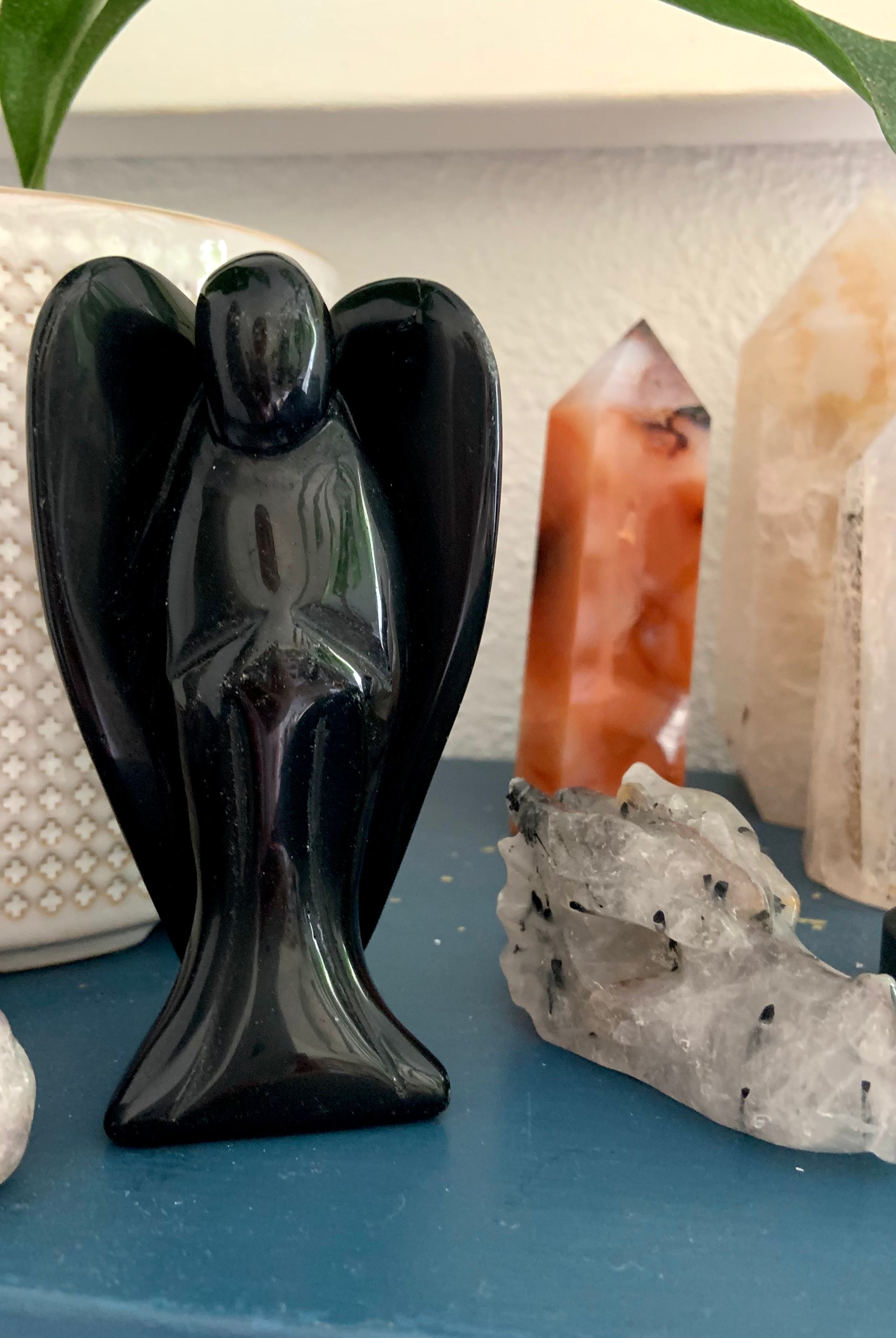 Call in divine support with our Crystal Angel carvings — sacred symbols of healing, protection, and spiritual light. These ethereal figures are carved from high-vibrational stones like Rose Quartz, Amethyst, Moonstone, Clear Quartz, and Black Obsidian, each radiating gentle guidance and peace.