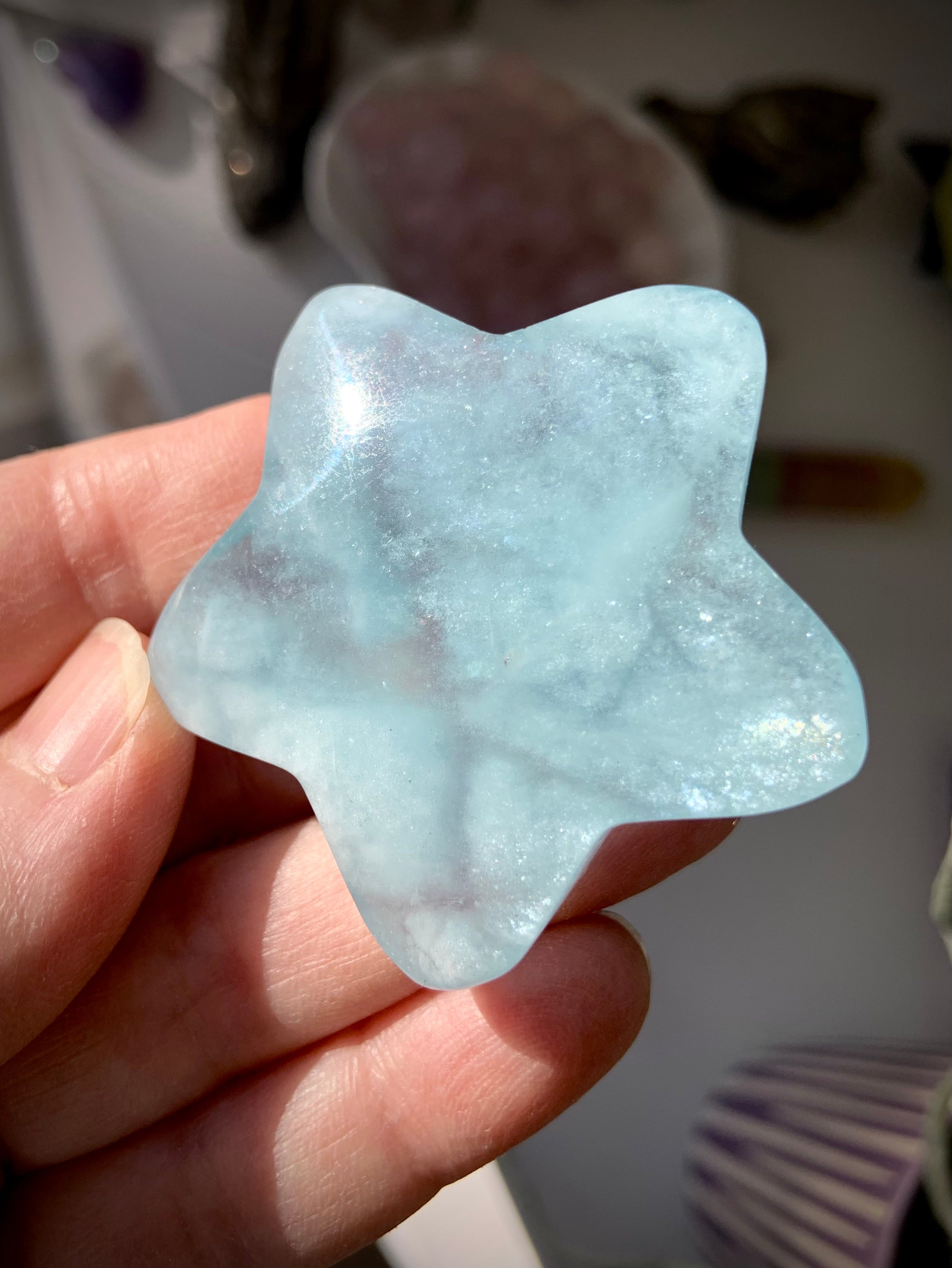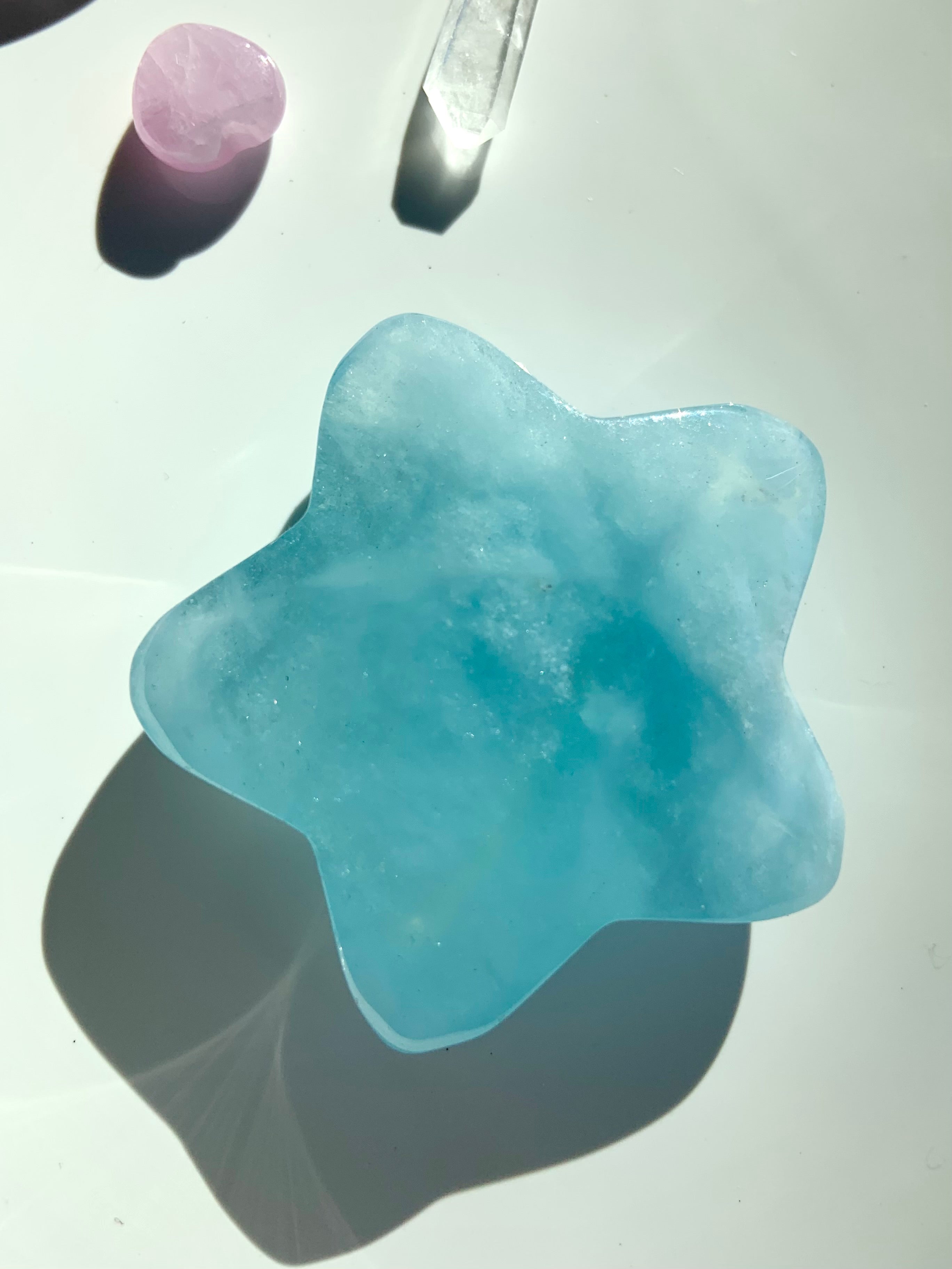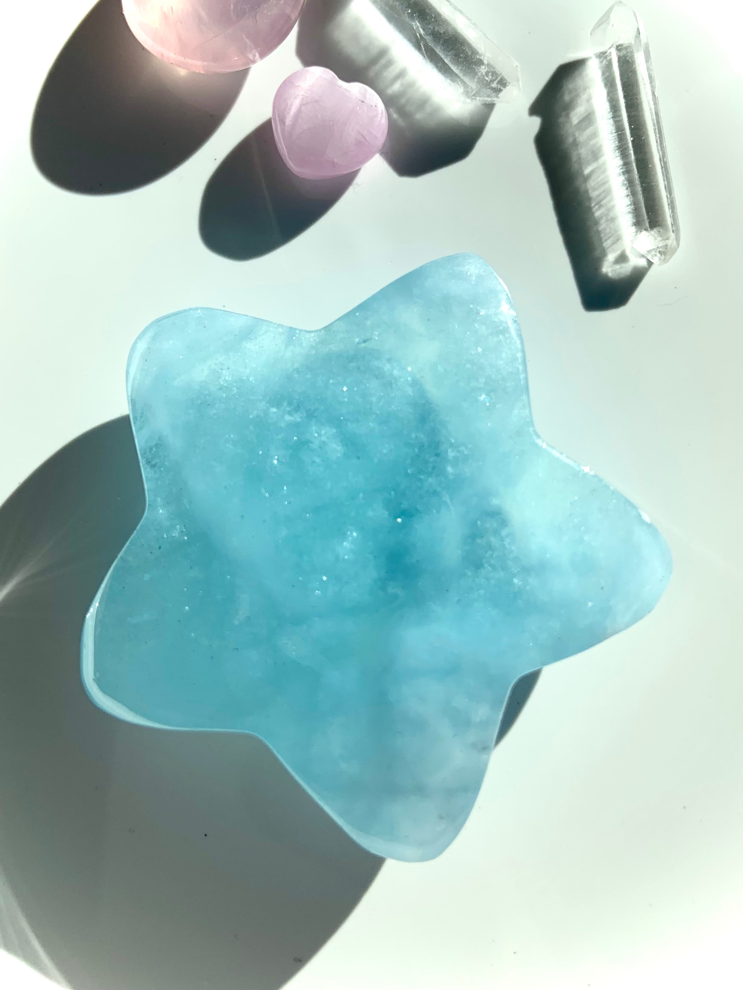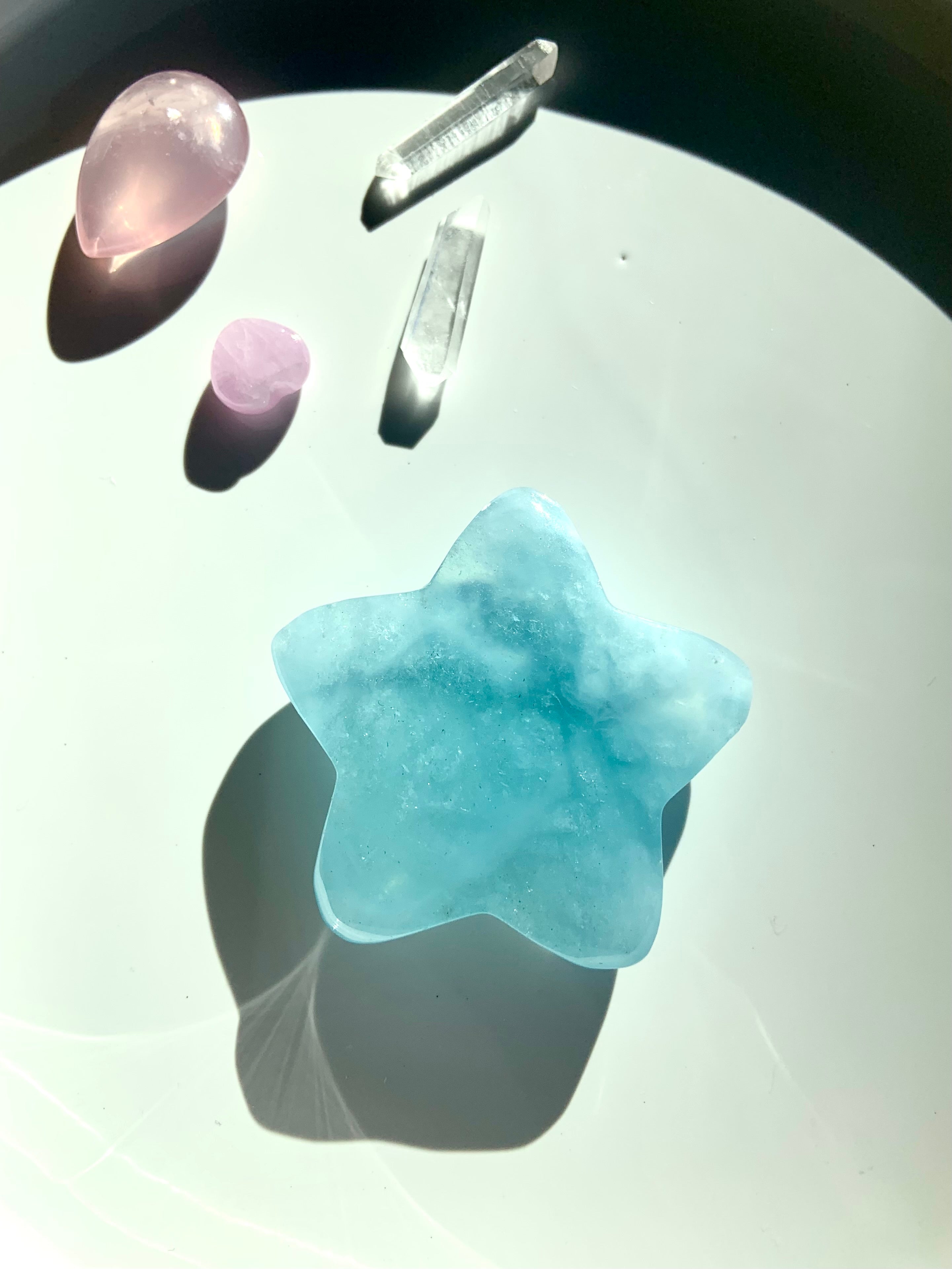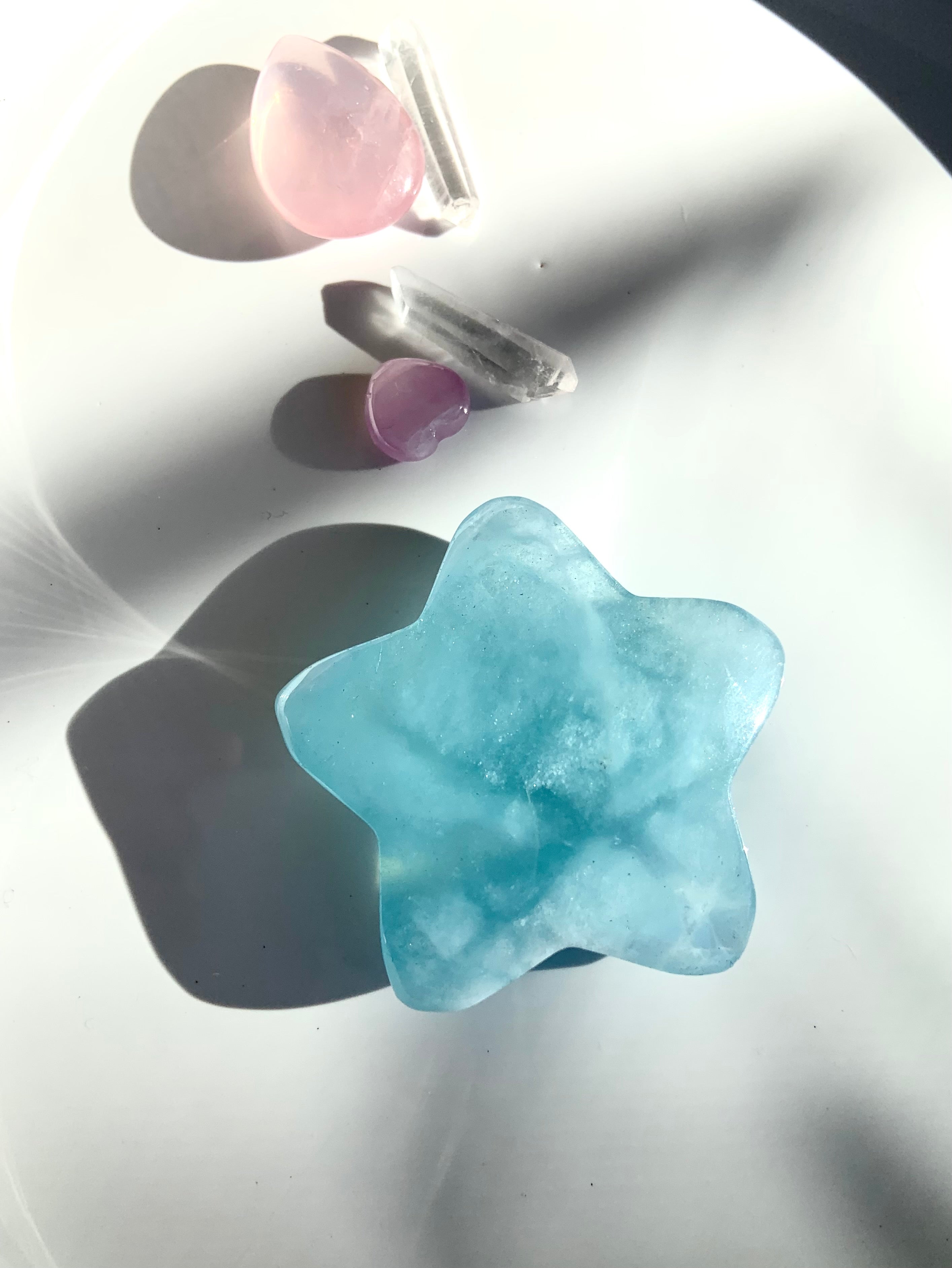 This luminous Aquamarine Star is a wonderful gemstone for meditation, as it sharpens intuition, opens clairvoyance + deepens meditative states. Crystal Stars are symbolic of divine guidance + protection, as well as imagination, wonder, dreams + magic.