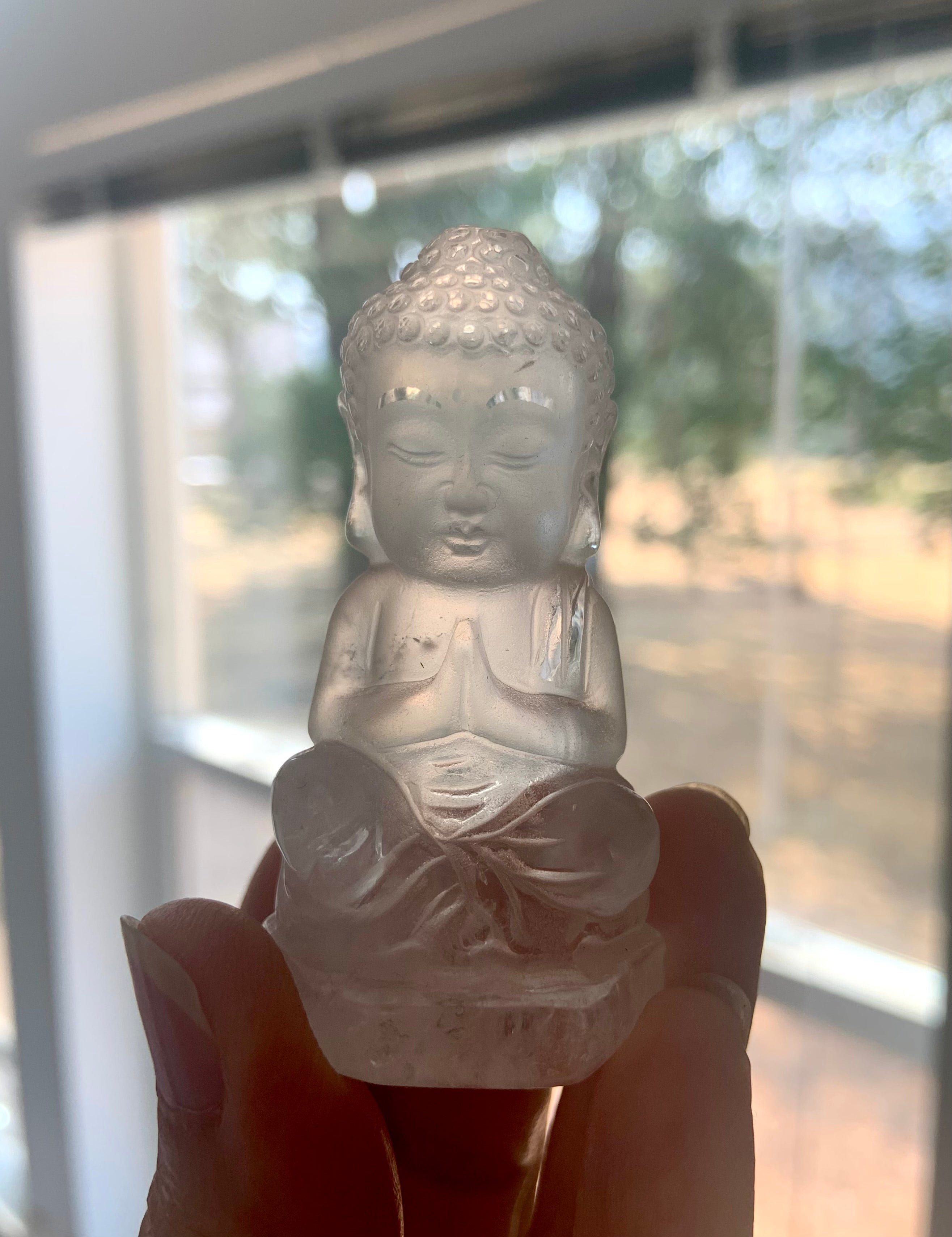 This one of a kind quartz Buddha statue is a stunning statement piece for your altar, Zen decor, meditation room, yoga studio, treatment room, home or office. Buddha means enlightened one.
