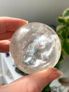 This gorgeous Clear Quartz Sphere is filled with a gigantic magical rainbow that fills the whole sphere + wildly beautiful interior dimensions, silvery flash + a small golden healer inclusion. Clear Quartz is the Master Healer of the crystal world, it's a stone of clarity, light, reflection + amplification.
