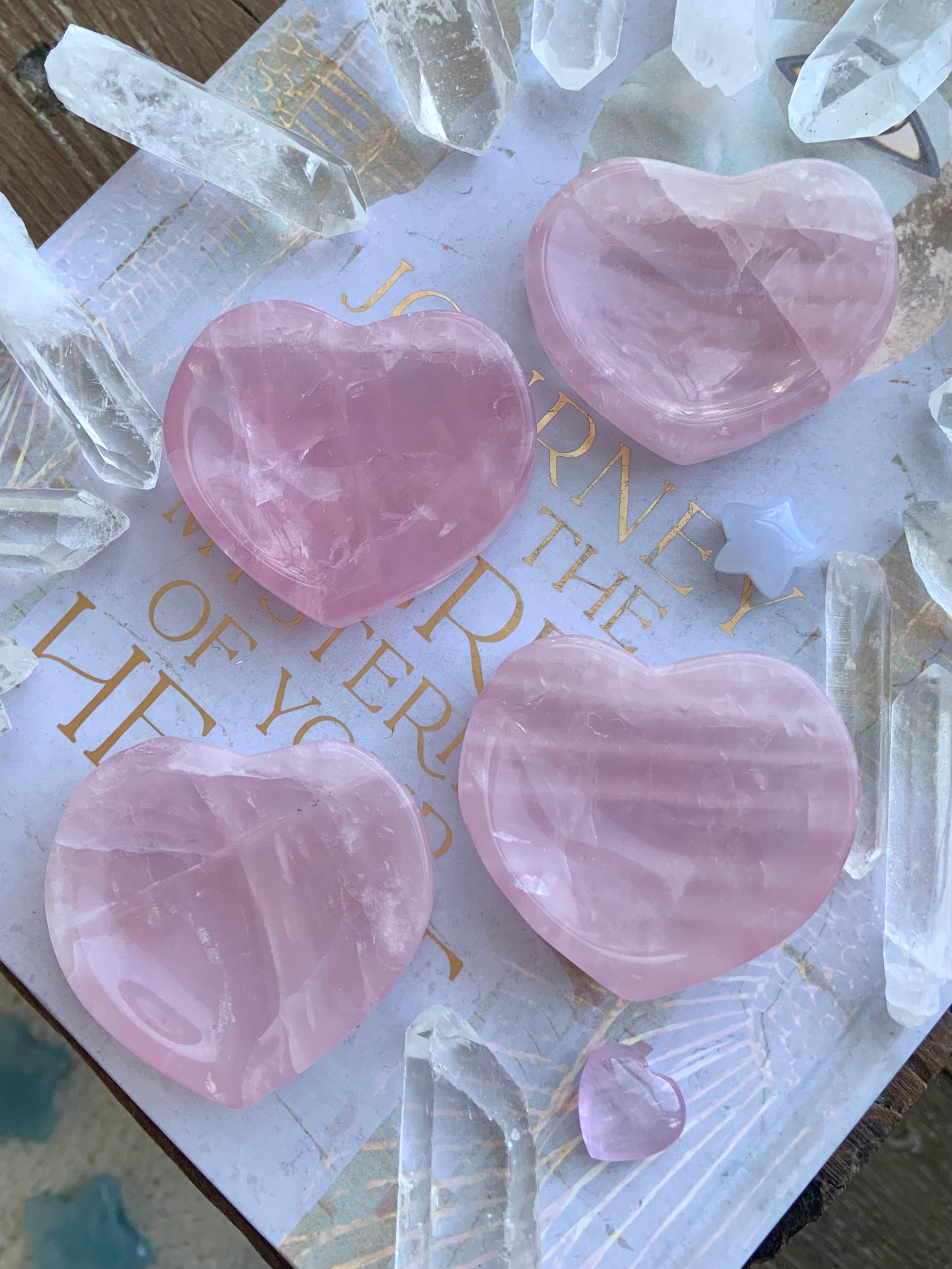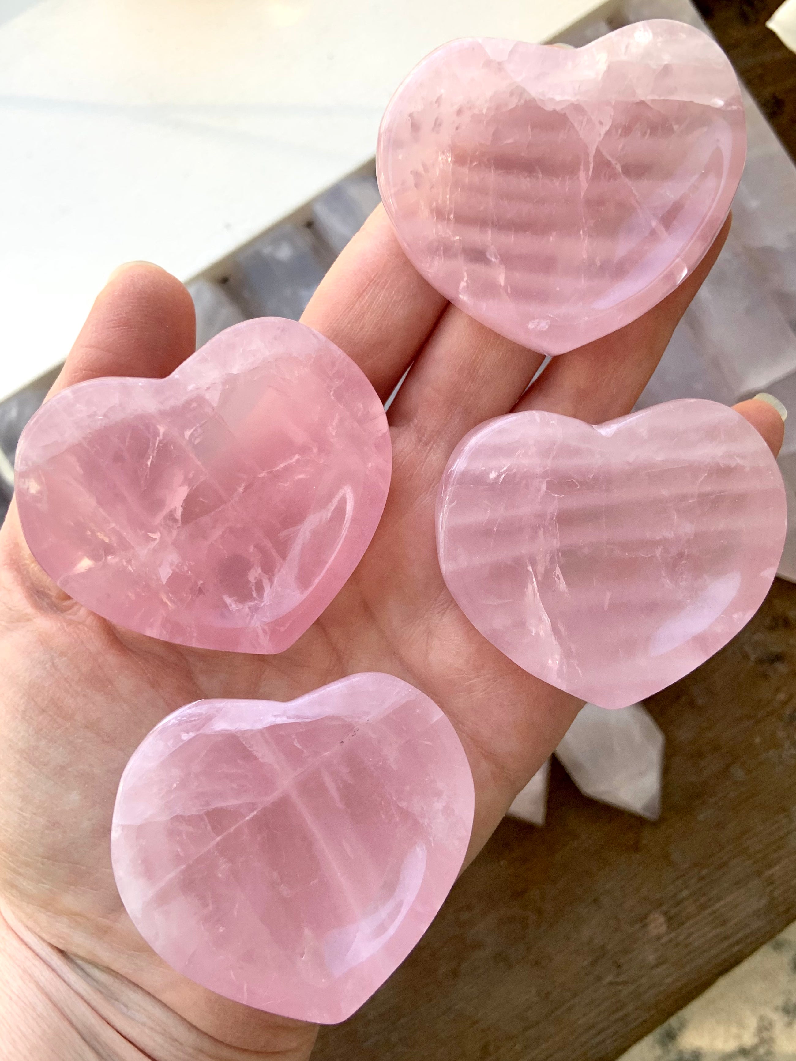 Rose Quartz Crystals gently connect you with your emotions + the wisdom of your heart to help you heal whatever needs healing. Rose Quartz is known to diffuse toxic emotions + blockages with compassion. Rose quartz is a essential part of your crystal healing toolkit + a true ally on your healing journey.