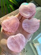 These small heart-shaped crystal bowls are carved from a beautiful pink crystal called Rose Quartz. They're little, gemmy + a gorgeous shade of pink! This dainty rose quartz bowl is the perfect size for a ring dish or as the centerpiece of your crystal grids, hold mini crystals + decorate your sacred space.