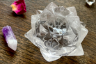 Clear Quartz is a master healer in the crystal world. It's a stone of clarity, light, reflection + amplification. Hold your clear quartz crystal in meditation to clear + balance all of your chakras, imagining each chakra opening up like a lotus flower, filled with divine love + light.