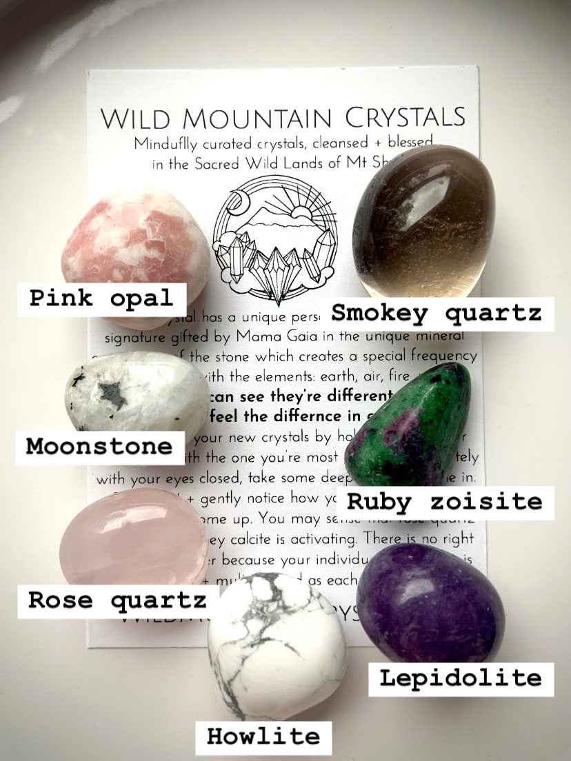 - Seven high-quality tumbled stones selected for emotional healing and resilience: