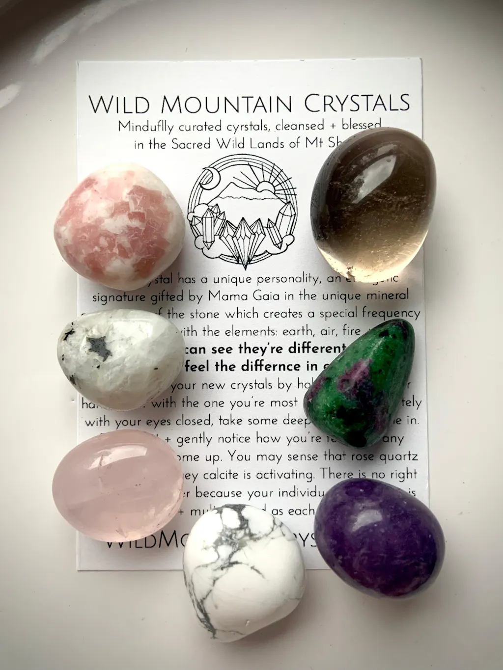 Each stone is genuine, natural, and ethically sourced from trusted suppliers around the world. We hand-inspect every piece and only include those that meet our high standards for energy, quality, and beauty. Flawed or broken stones are never included — only those that feel good in the hand and heart.
