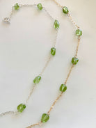 A dainty Peridot Satellite Bracelet in your choice of Sterling Silver of Gold Filled chain makes such a sweet + thoughtful gift for yourself or someone special. Pure sparkling green Peridot is the August Birthstone + wearing peridot jewelry opens the heart, encourages creativity, increases positivity + brings good luck.