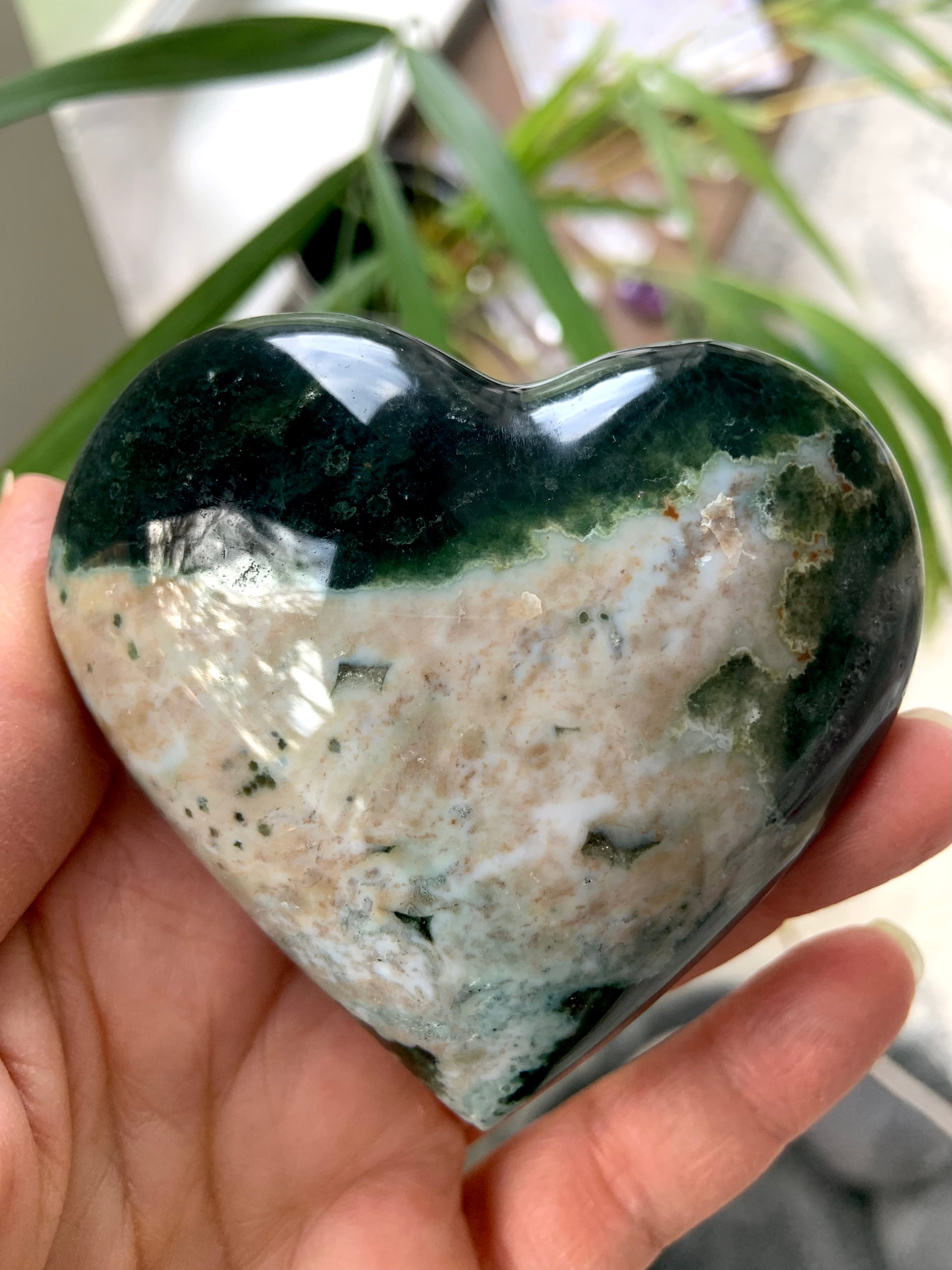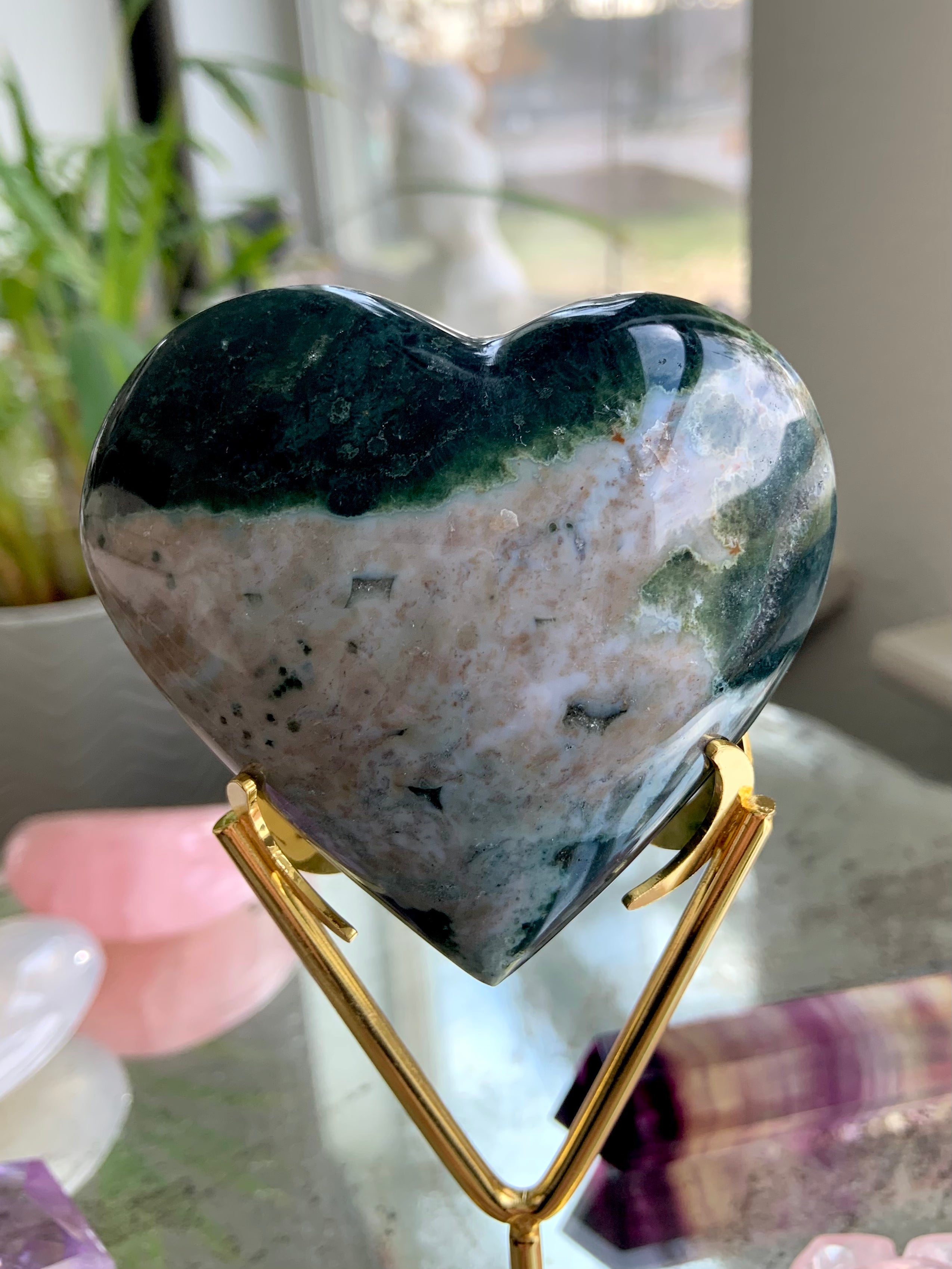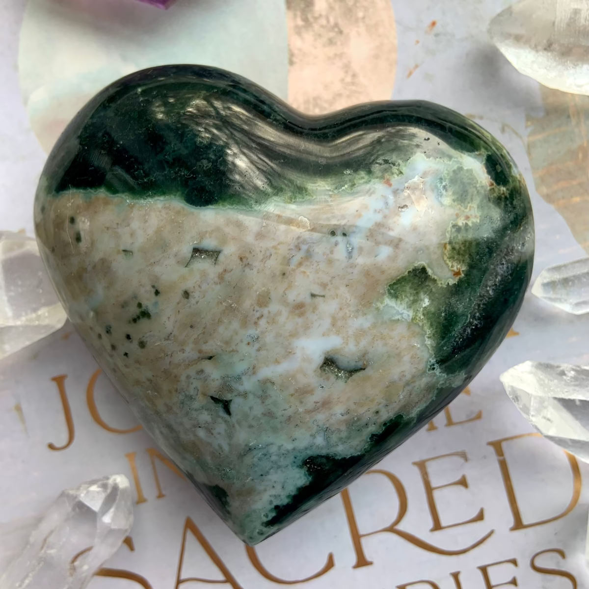 Meditate with this Ocean Jasper Crystal Heart to awaken your inner wisdom. Ocean Jasper supports your exploration, expanding your awareness of the unseen energies + etheric realms, facilitating a deeper awareness of those mythical, magical places beyond the veil.
