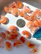 These little hand carved moons are intuitively chosen for you in the size you select, but if you want a more clear, red, or orange one please write that in your order notes. I'm happy to accommodate if I can. The moons available are the moons in these pics.