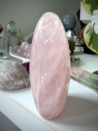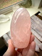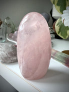 Pink, gemmy + translucent Rose Quartz Crystal from Madagascar in a beautiful polished freeform is an absolute thing of beauty. This Rose Quartz free standing display piece feels so good to hold + will make a powerful meditation crystal + a cherished specimen to display in your crystal collection.