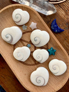 This unique swirling shell is actually the protective door at the opening of an Operculum Snail shell, which naturally detaches at the end of the snail's life. They're made of calcium carbonate + can be found on the beaches of India, Thailand + Australia. These natural shells have been hand-shaped into a heart.